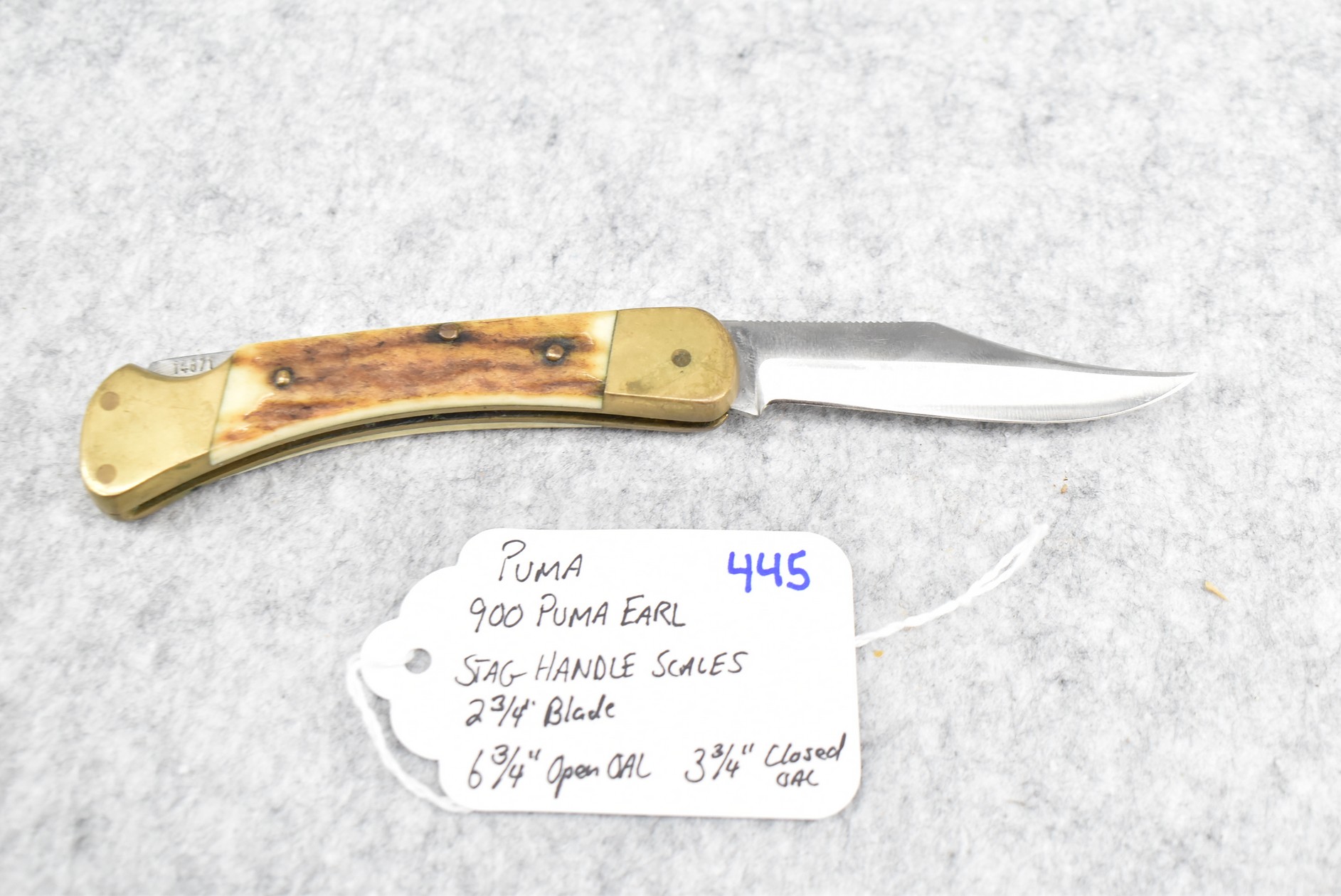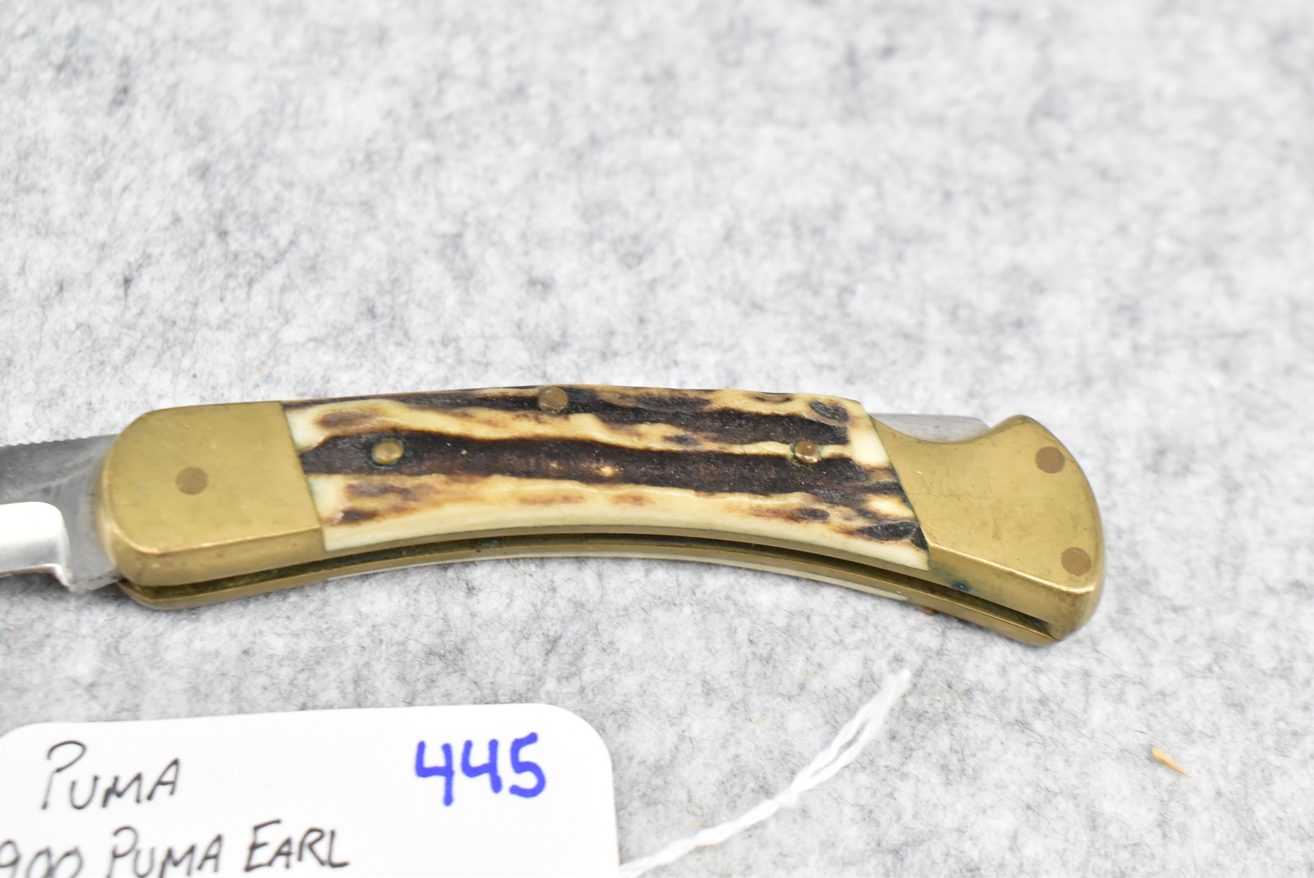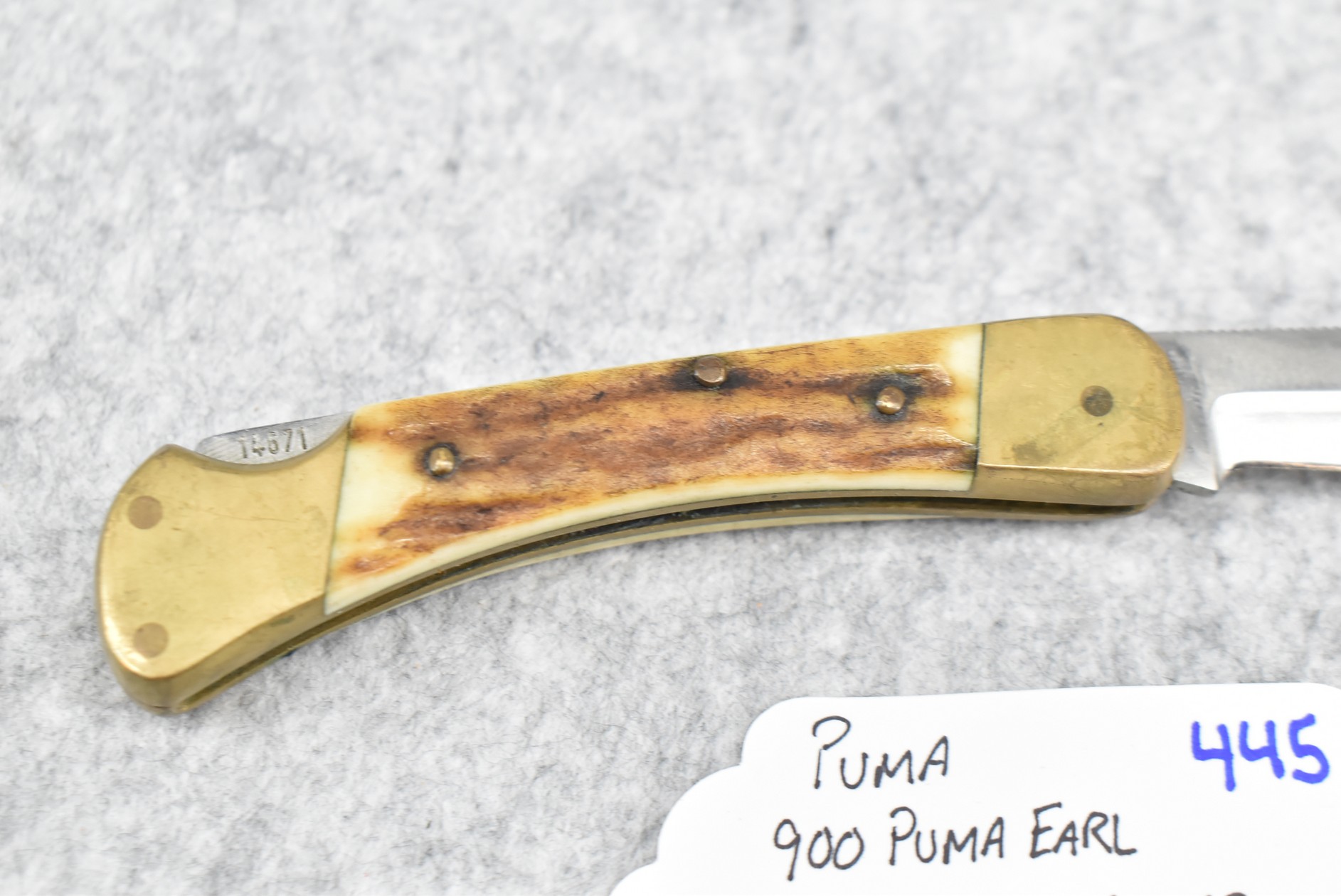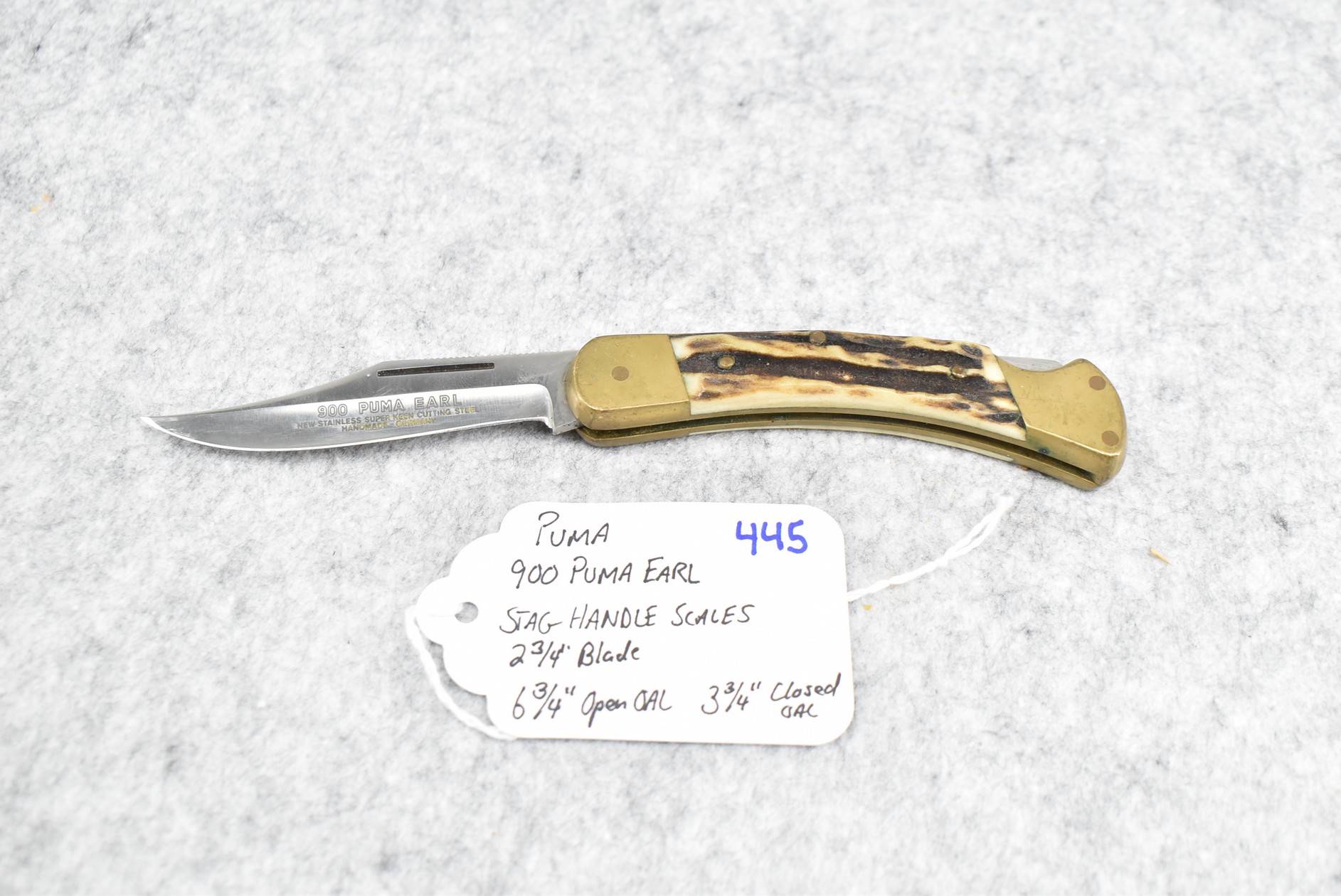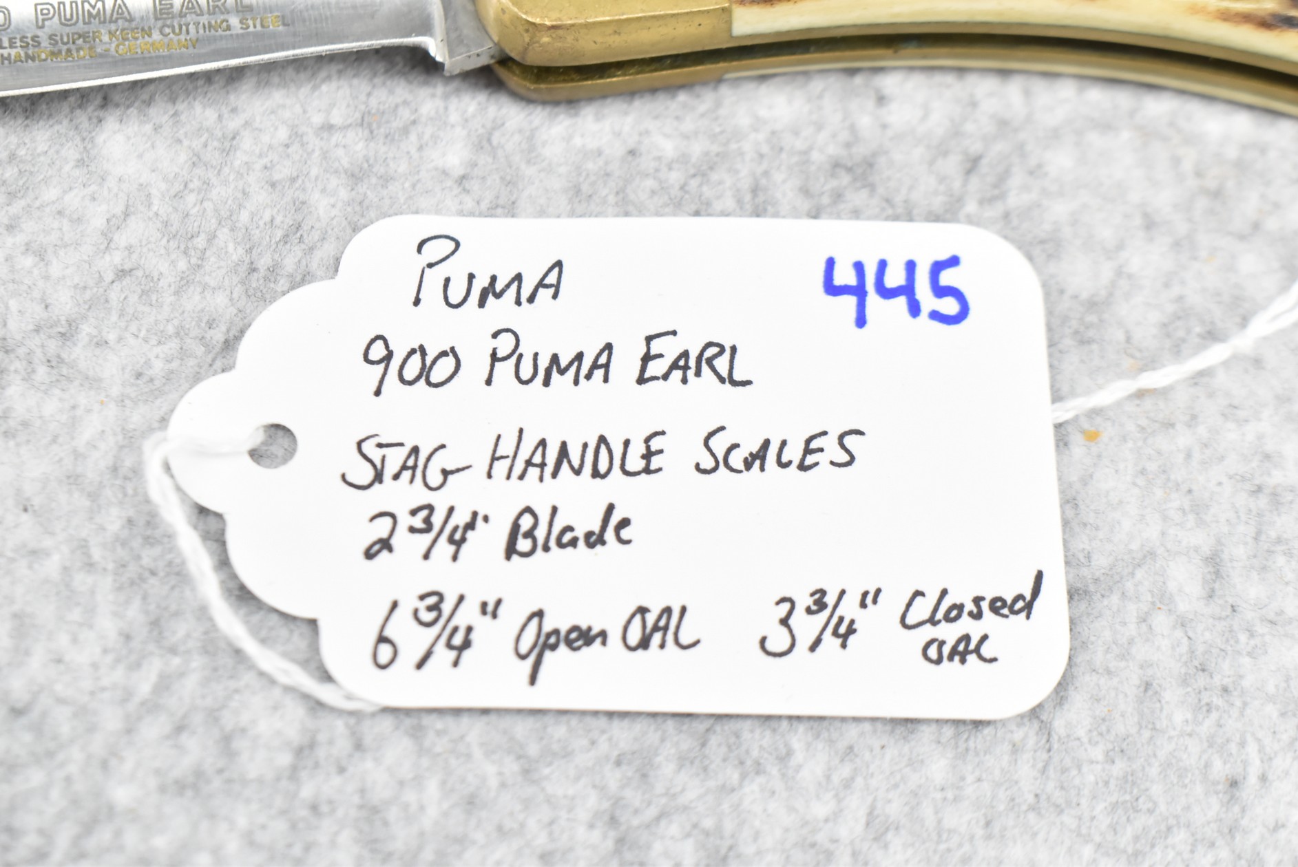 445. Puma – #900 Puma Earl Folding Knife – w/2 ¾” Blade – 6 ¾” Overall Length – 3 ¾” Closed Length – w/Stag Handles