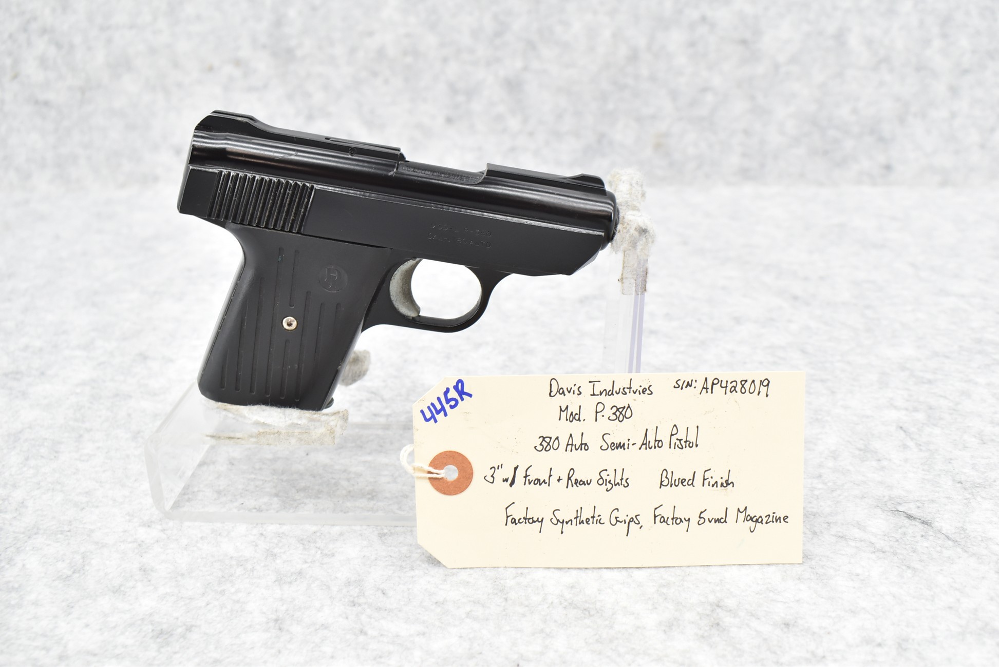 445R. Davis Industries – Mod. P380 – 380 Auto Cal. Semi-Auto Pistol – w/3” Barrel w/Front & Rear Sights – Blued Finish – w/Factory Synthetic Grips – w/Factory 5Rd Magazine