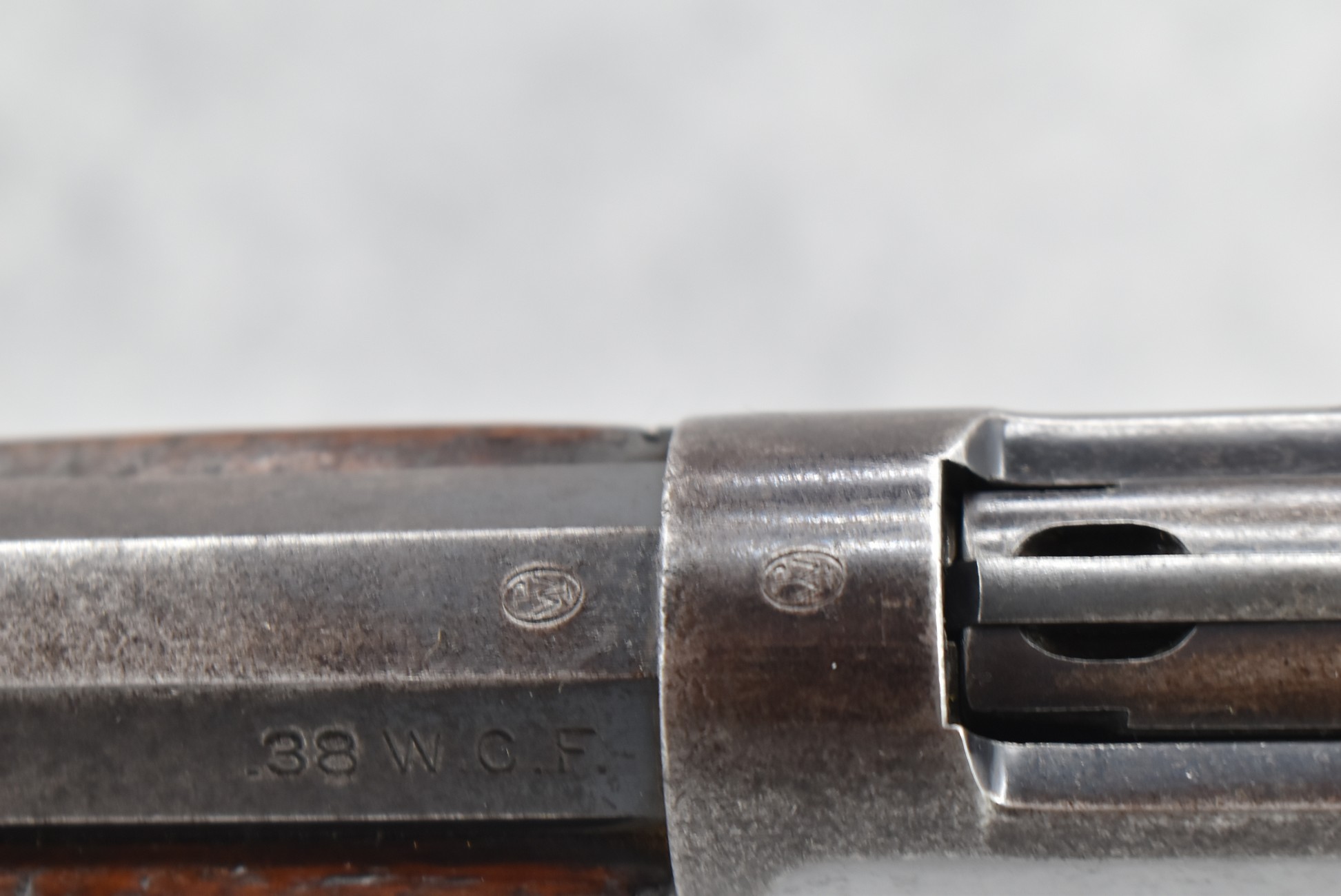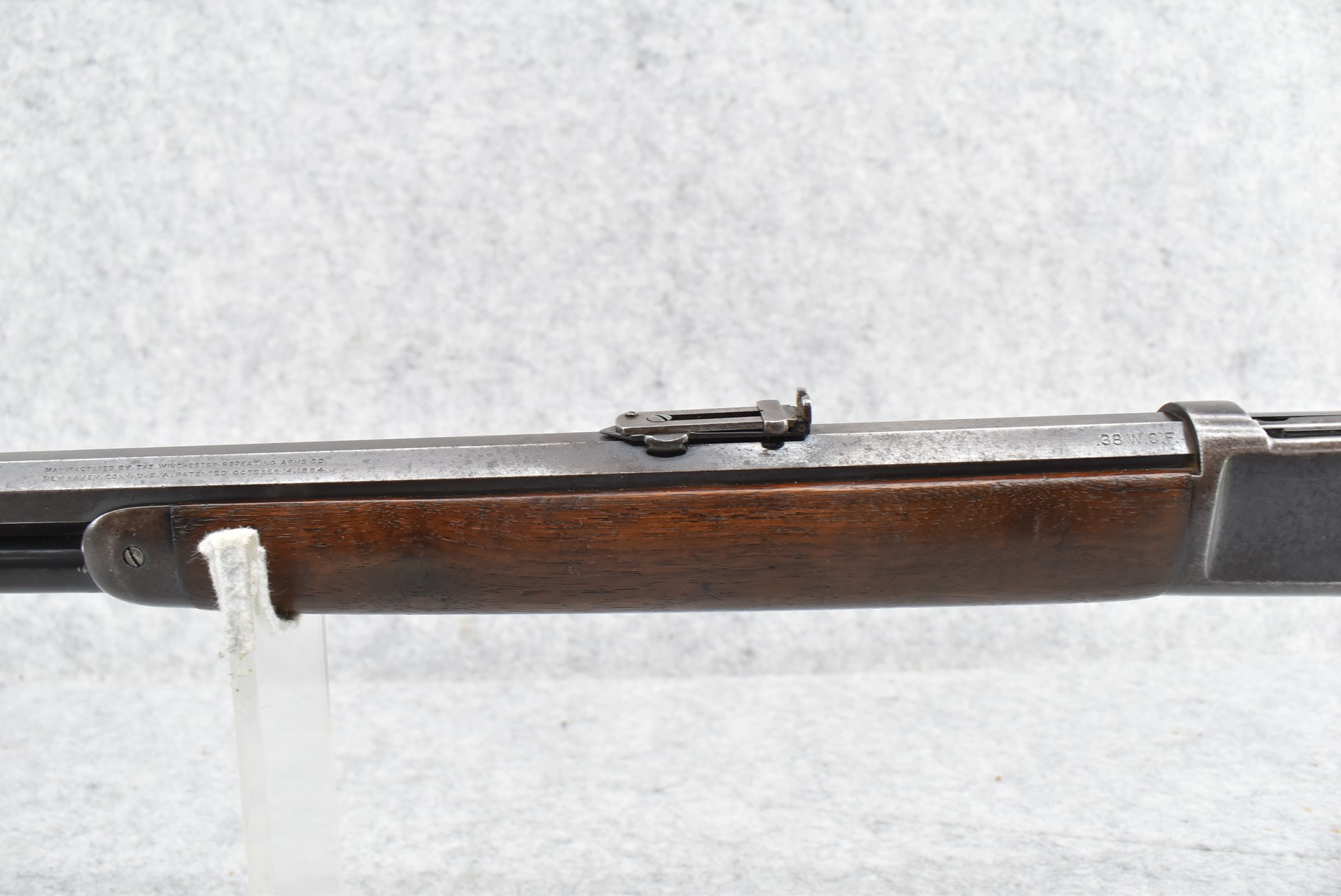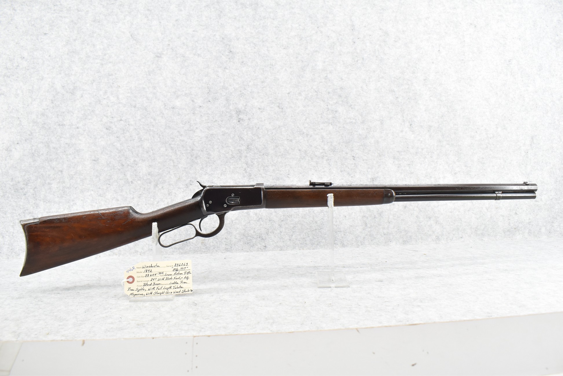 446R. Winchester – Mod. 1892 – 38 WCF (38-40) Cal. Lever Action Rifle – w/24” Barrel w/Blade Front and Adjustable Rear Ladder Sights – Blued/Brown Finish – w/Straight Grip Wood Stock and Capped Forearm w/Crescent Metal Butt Plate – w/Full Length Tubular Magazine – Manufactured 1917