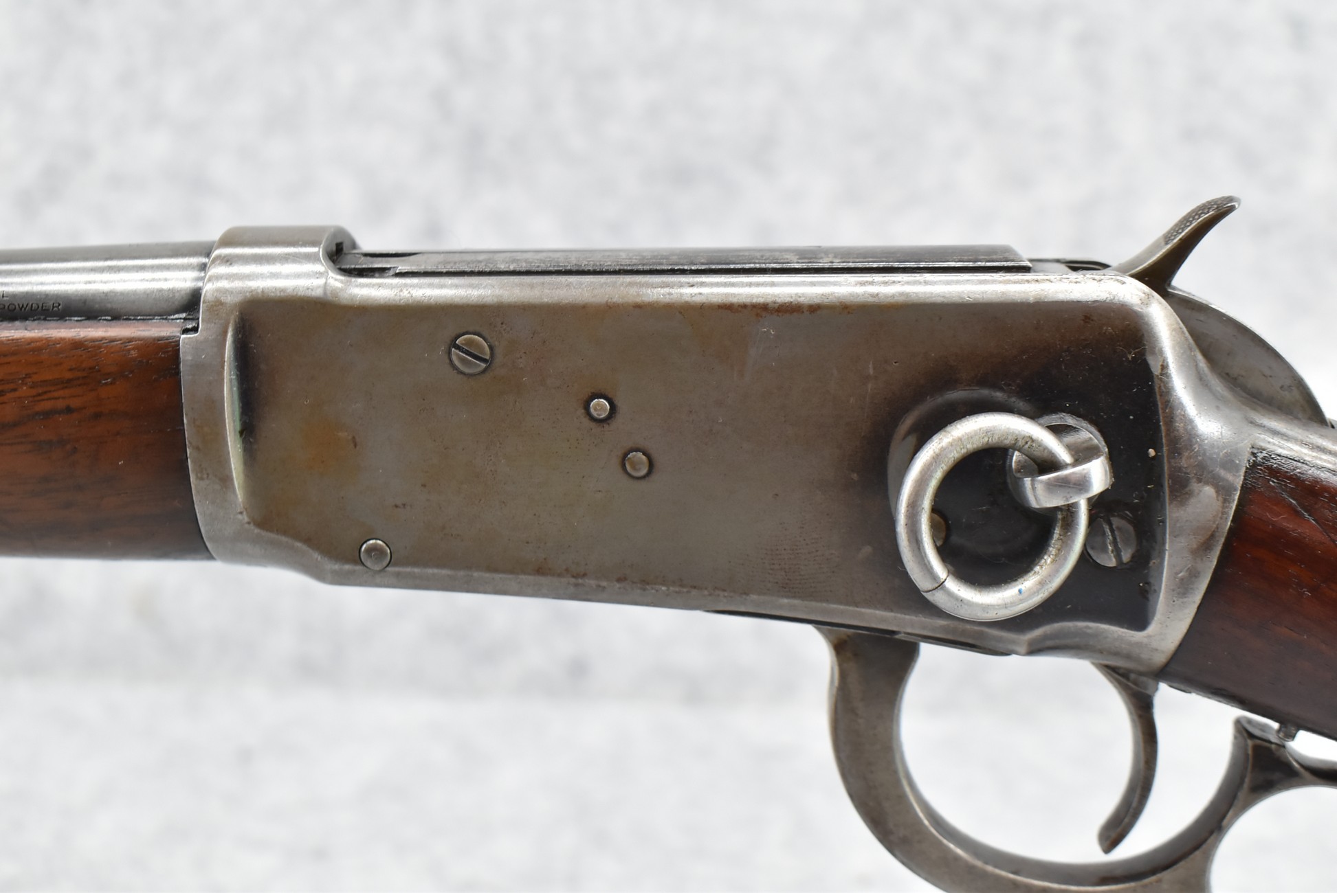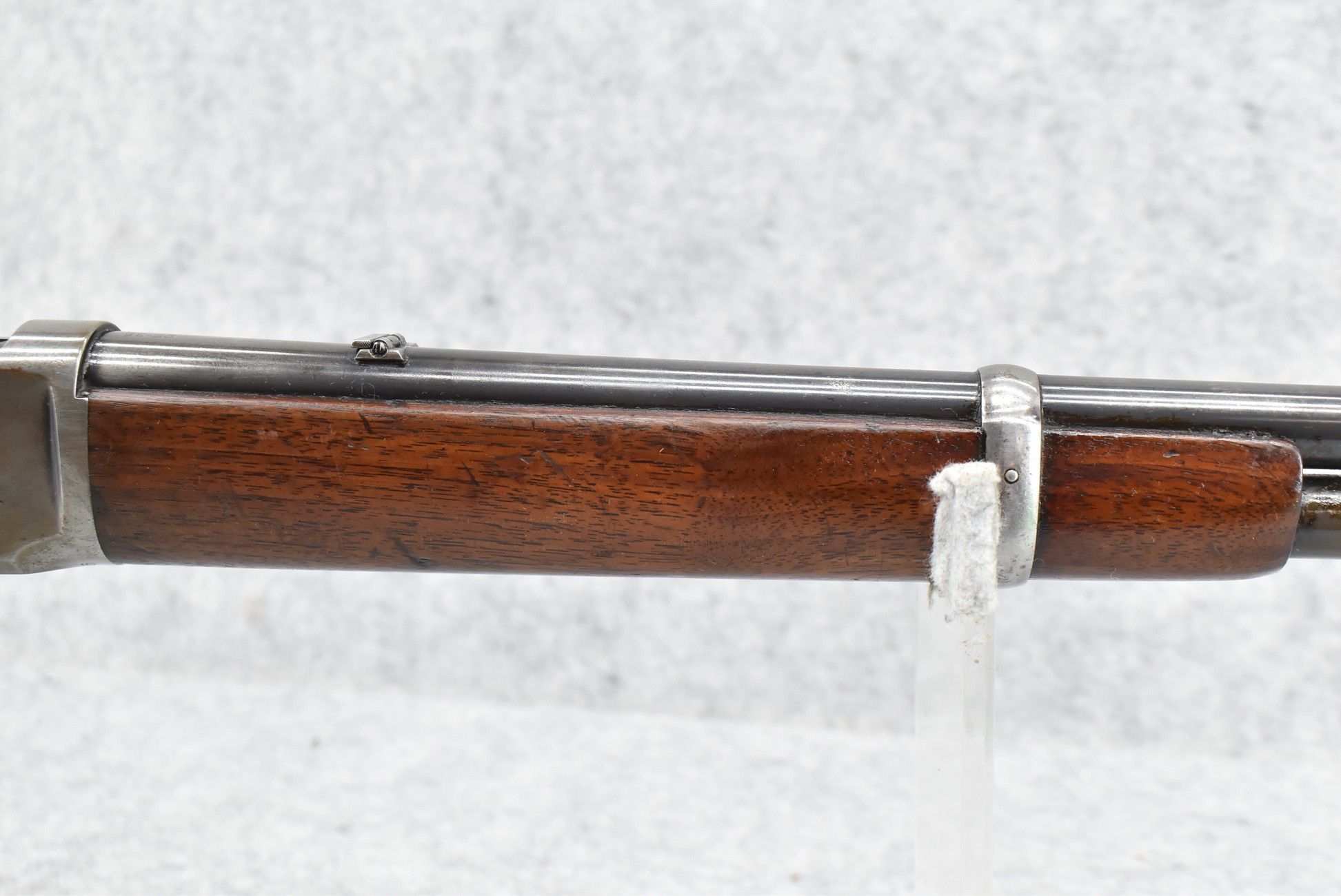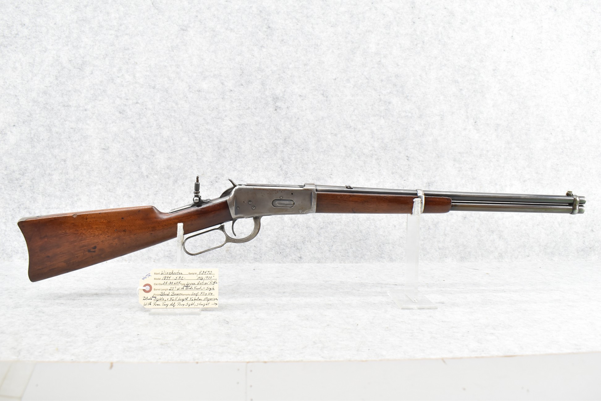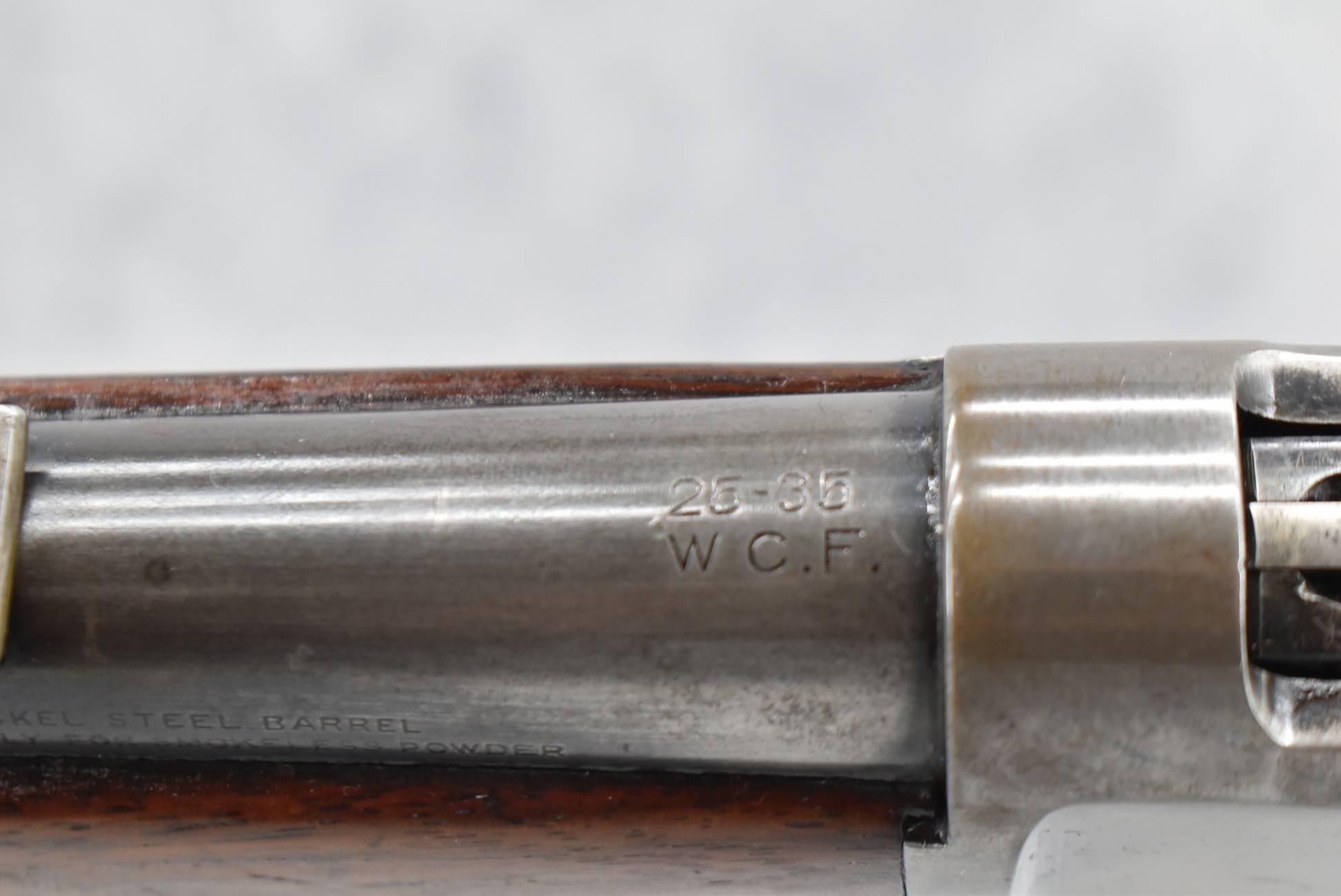 447R. Winchester – Mod. 1894 SRC – 25-35 WCF Cal. Lever Action Rifle – w/20” Barrel w/Carbine Blade Front and Single Leaf Flip-Up Blade Rear Sights – Blued/Brown Finish – w/Straight Grip Wood Stocks w/Metal Carbine Butt Plate – w/Full Length Tubular Magazine – w/Rear Tang Adjustable Peep Sight – Manufactured 1900