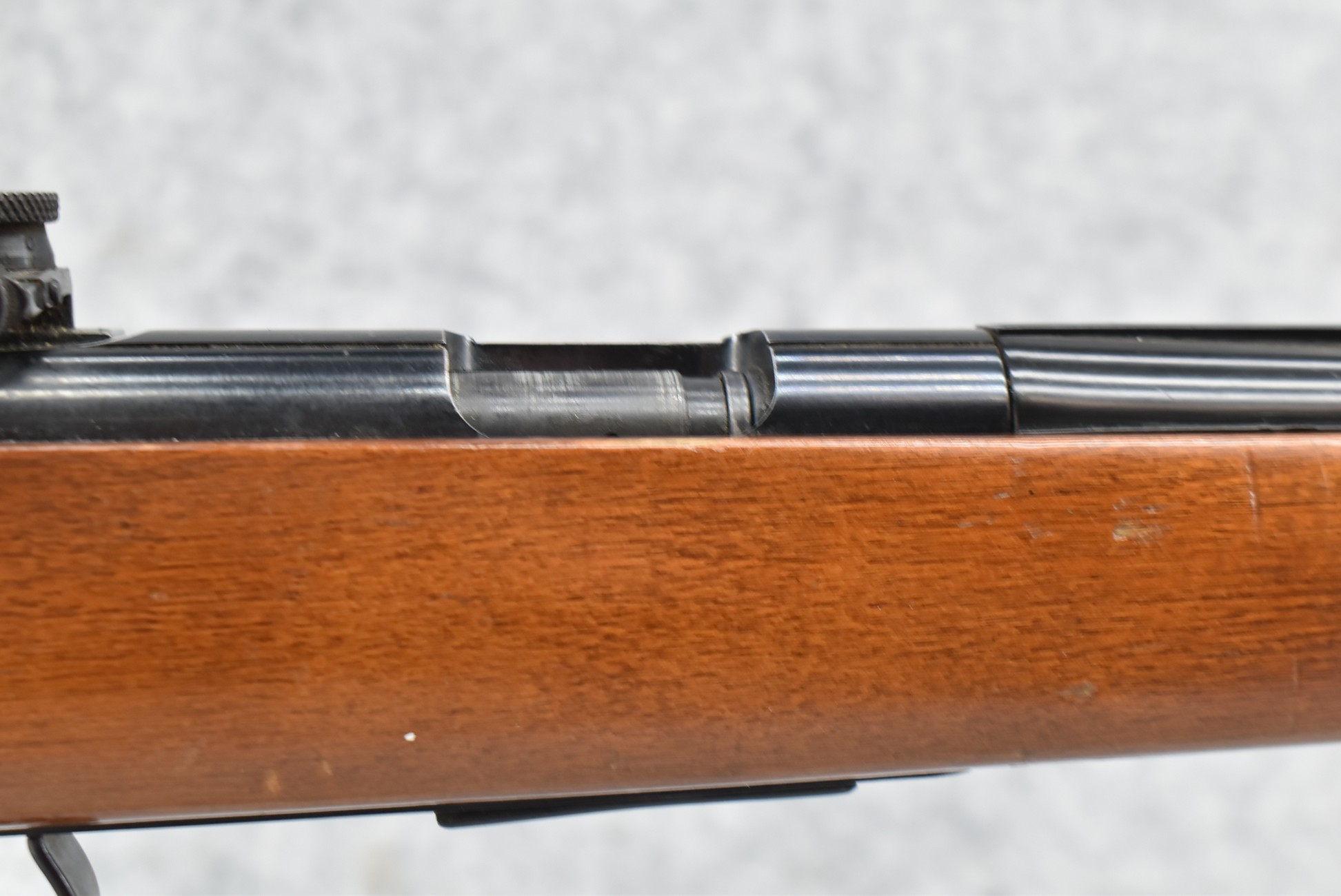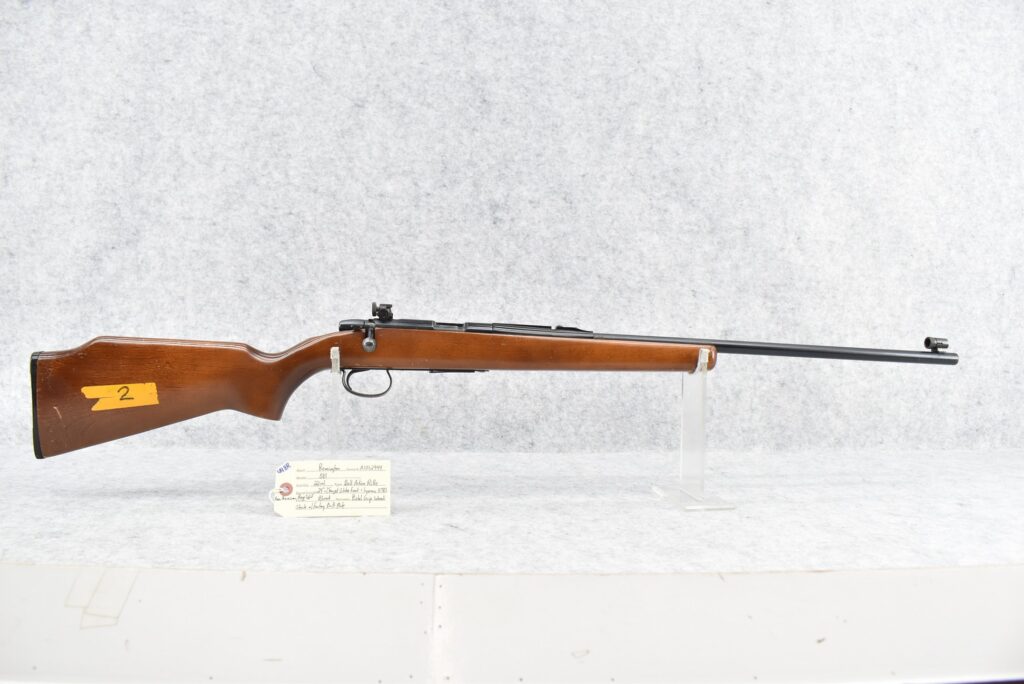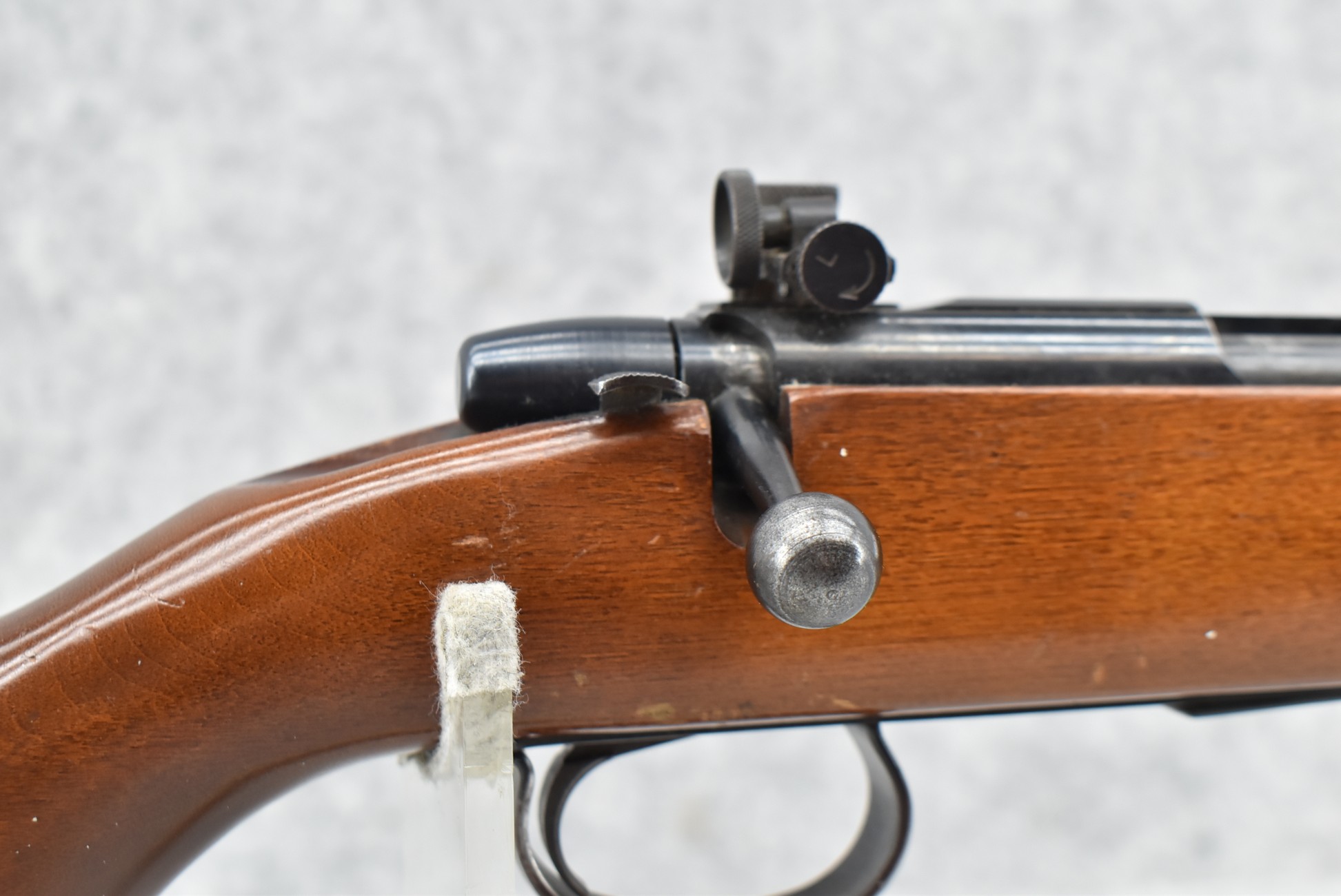 448R. Remington – Mod. 581 – 22 Cal. Bolt Action Rifle – w/24” Barrel w/Target Globe Front & Lyman 57RS Rear Receiver Peep Sights – Blued Finish – w/Pistol Grip Wood Stock w/Factory Butt Plate