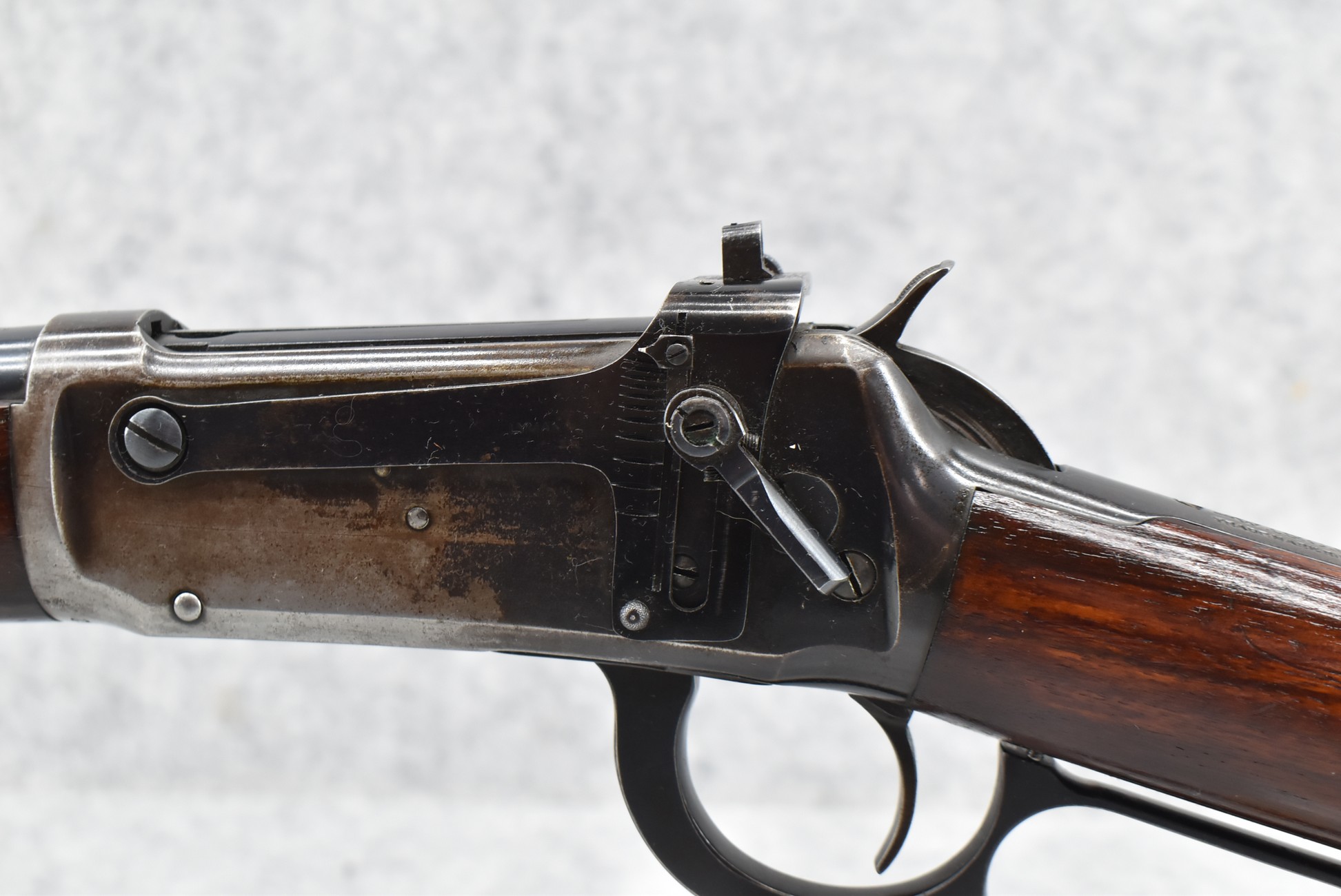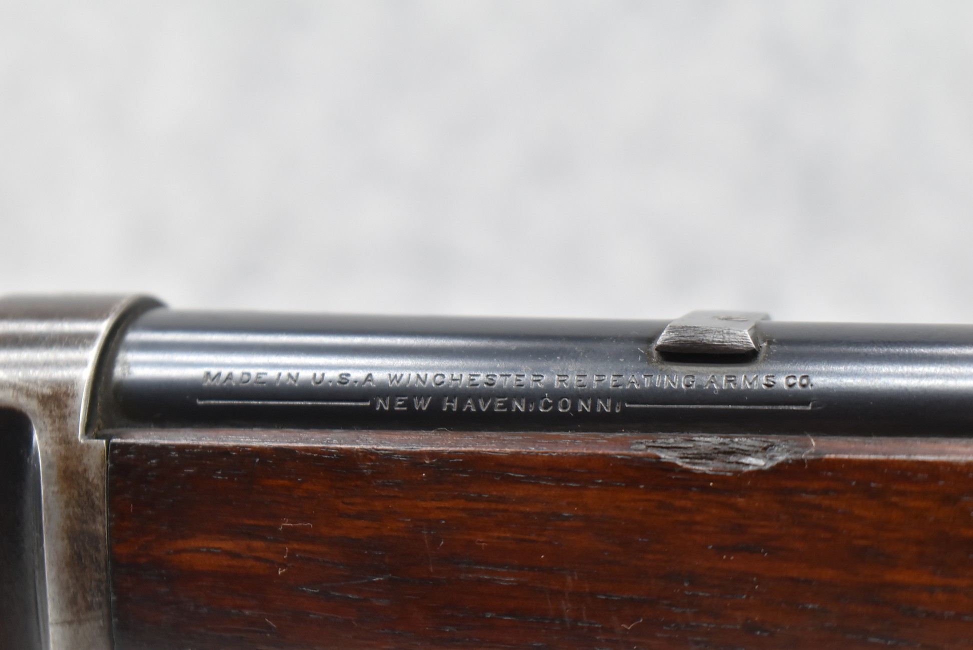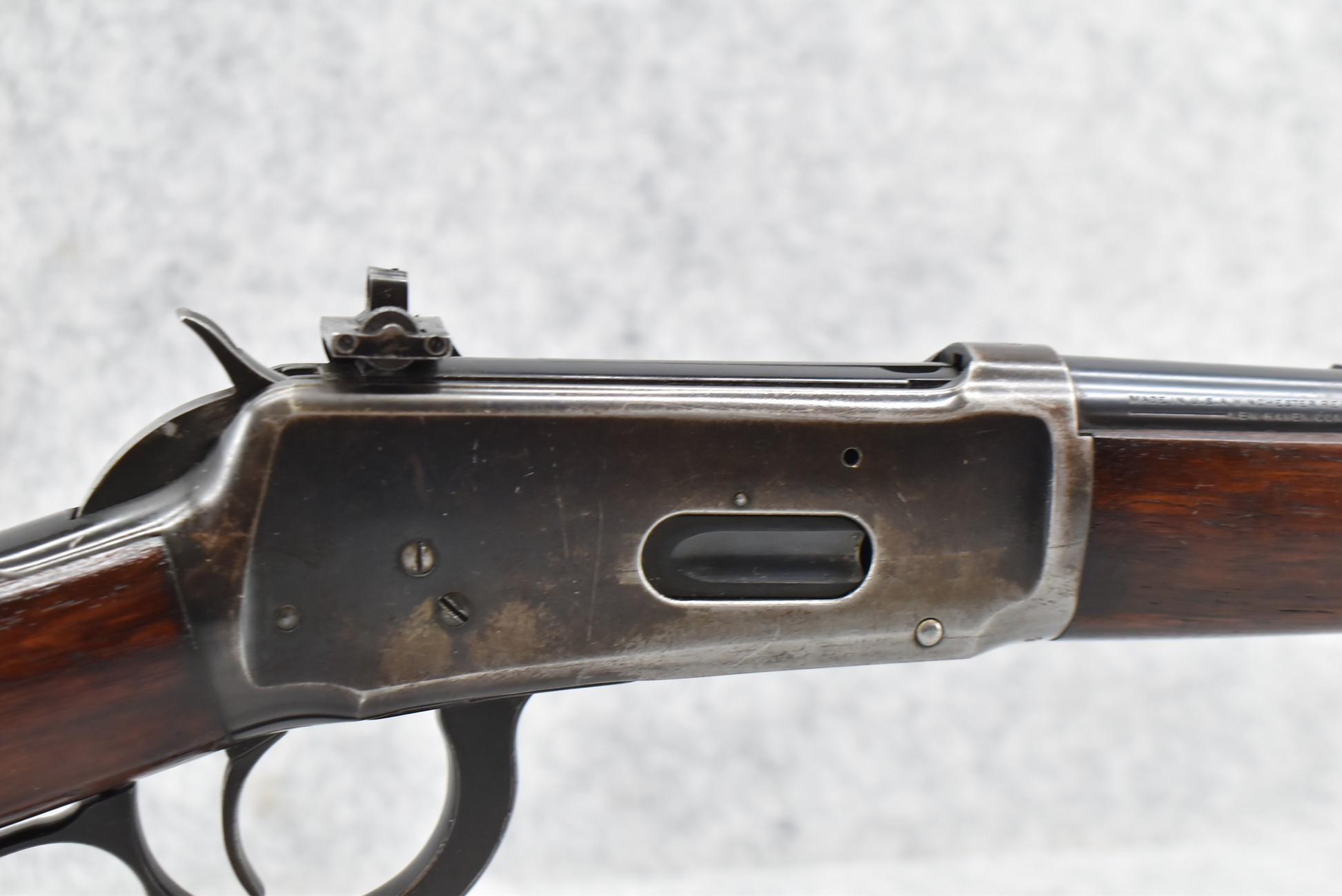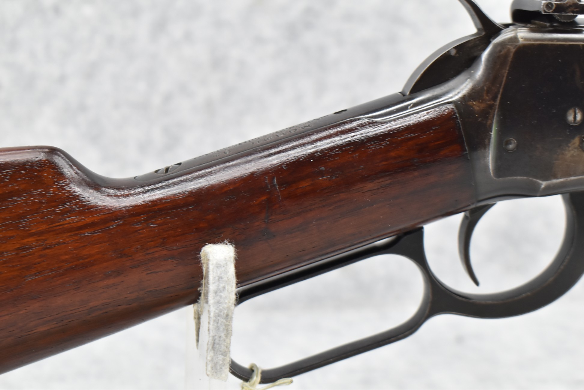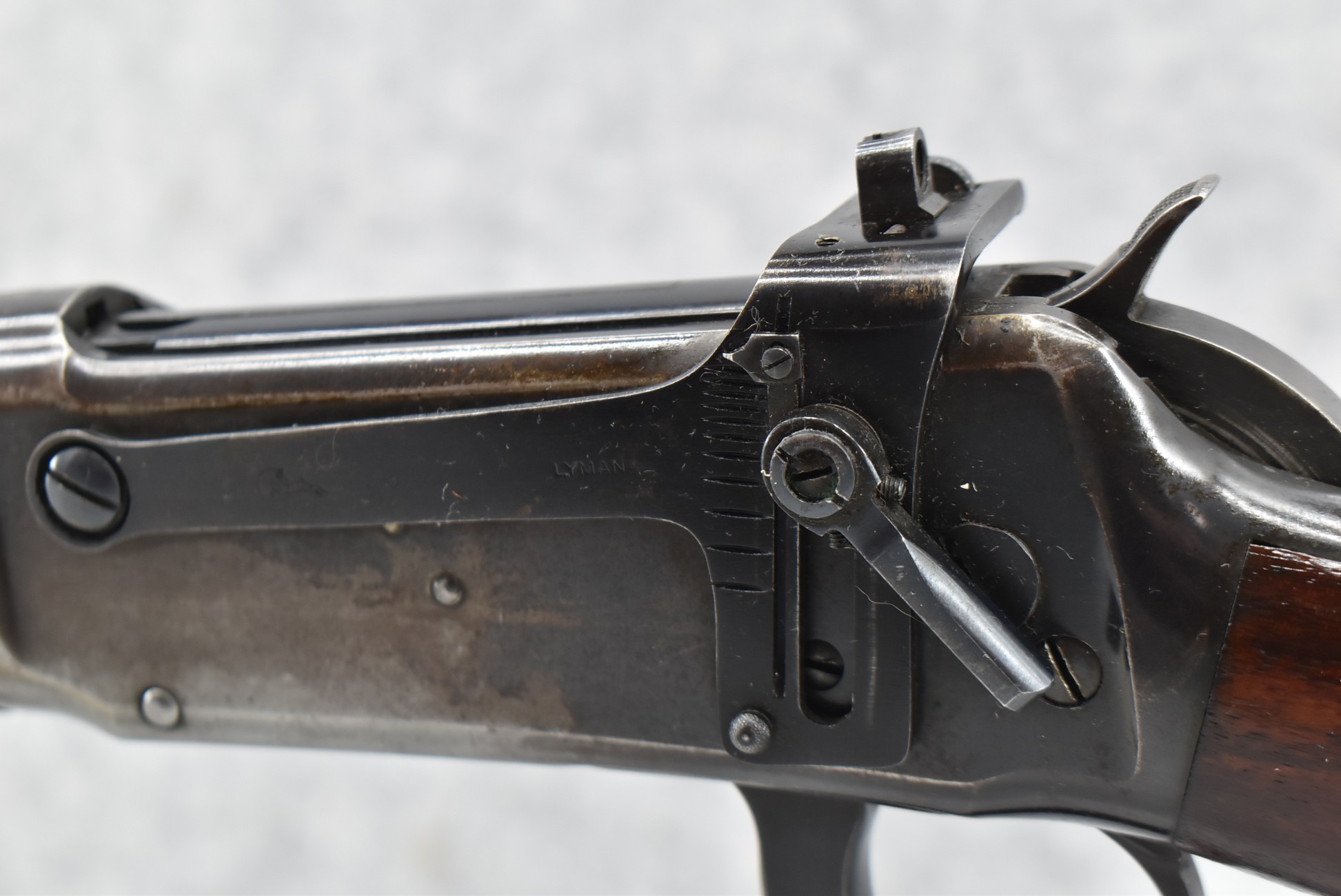448R. Winchester – Mod. 94 Carbine – 30 WCF (30-30) Cal. Lever Action Rifle – w/20” Barrel w/Beaded Front and Rear Dovetail Blank Sights – Blued Finish – w/Straight Grip Wood Stocks w/Carbine Metal Butt Plate – w/Full Magazine – w/Lyman No. 21 “Climbin Lyman” Rear Receiver Peep Sight