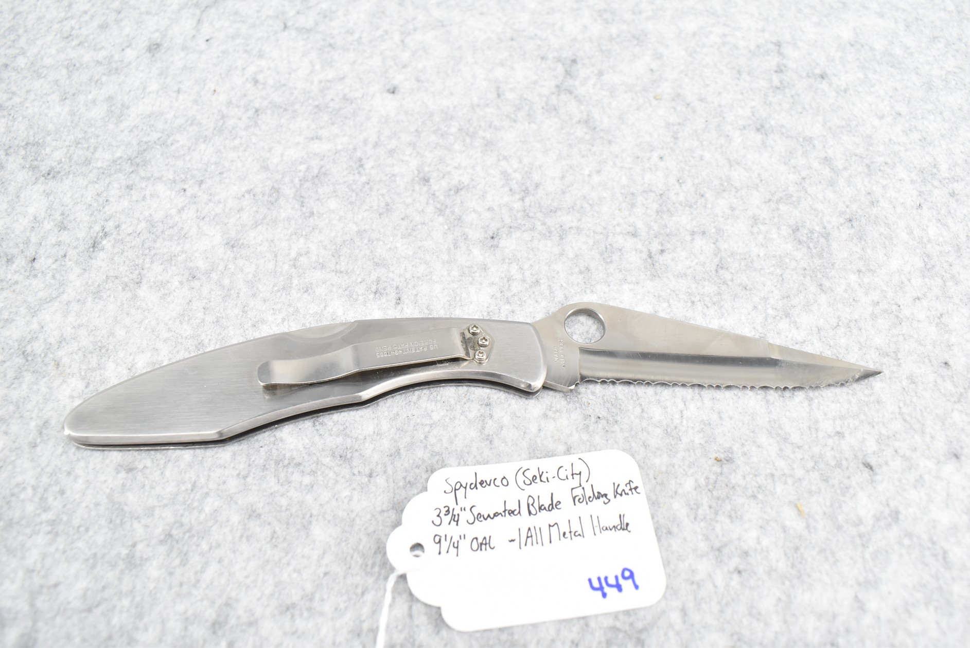 449. Spyderco (Seki-City) – Folding Knife – w/3 ¾” Serrated Blade – 9 ¼” Overall Length – w/All Metal Handle