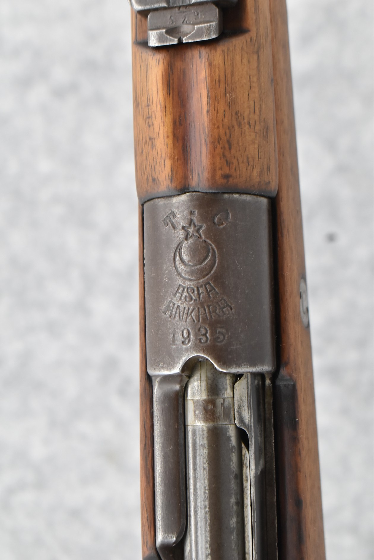 451R. Turkish – Mod. 1903 – 7.65 Converted to 8mm Cal. Bolt Action Rifle – w/29” Barrel w/Fixed Front & 2,000 Meter Adj. Rear Sights – Military Finish – w/Full Length Full Wood Military Stock – Import Marked