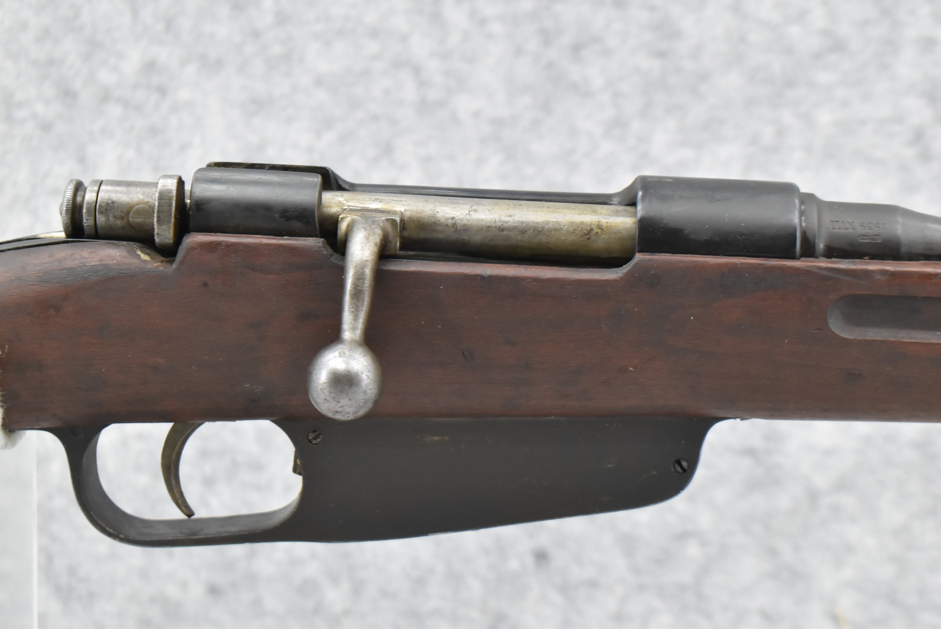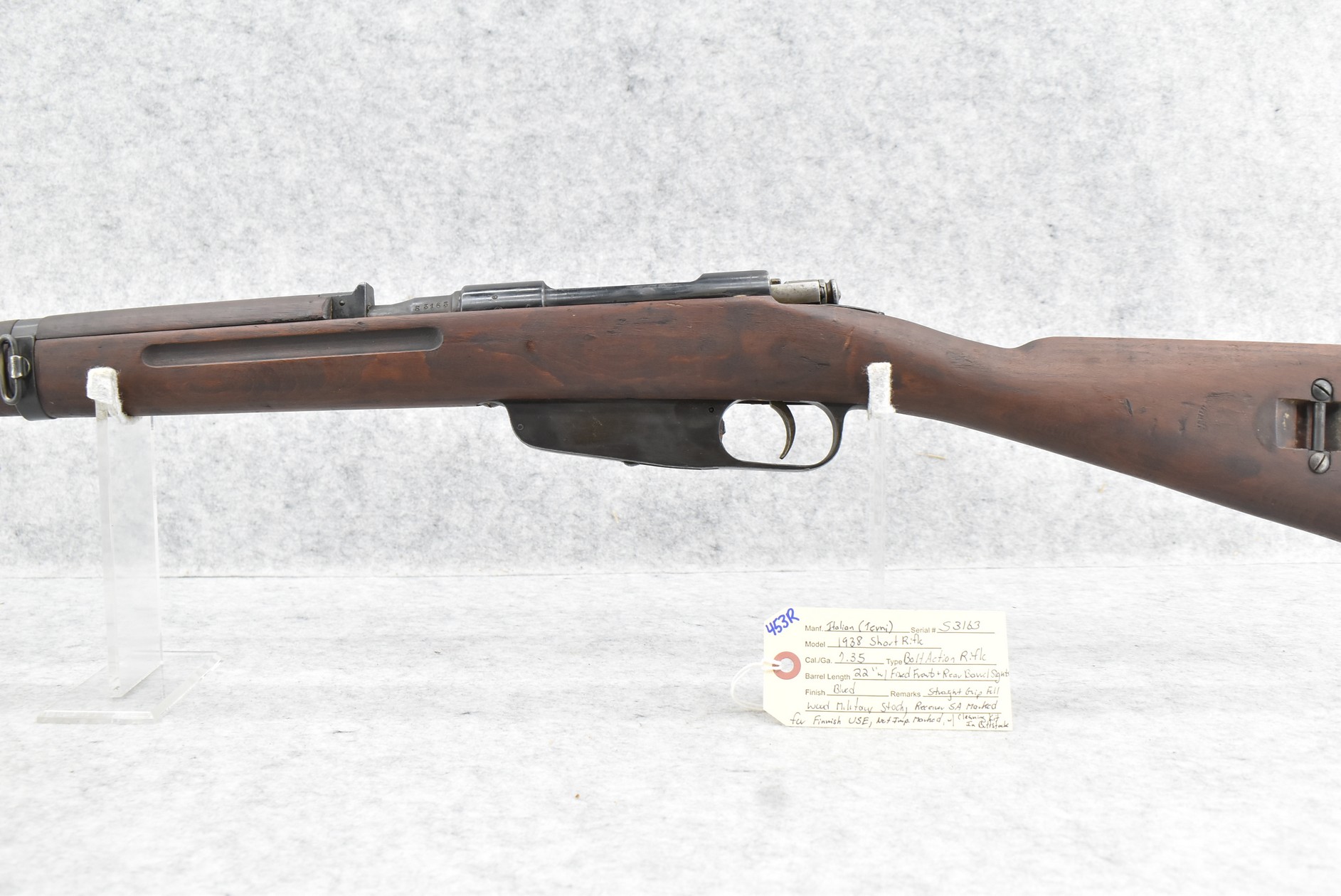 453R. Terni (Italian) – Mod. 1938 Short Rifle – 7.35 Cal. Bolt Action Rifle – w/22” Barrel w/Fixed Front & Rear Barrel Sights – Blued Finish – w/Straight Grip Full Wood Military Stock w/Cleaning Kit in Butt Stock – Receiver SA Marked for Finnish Use – Not Import Marked