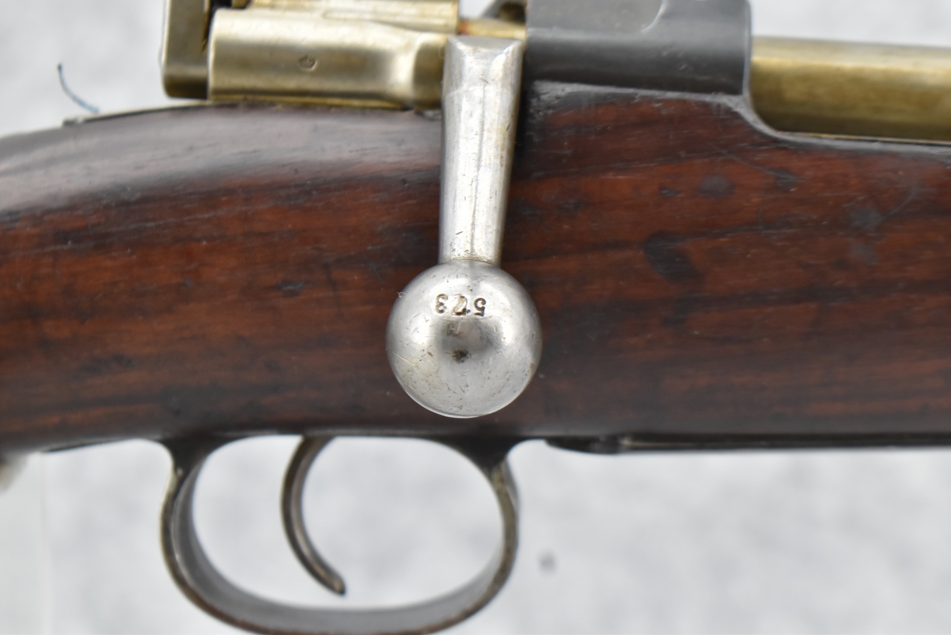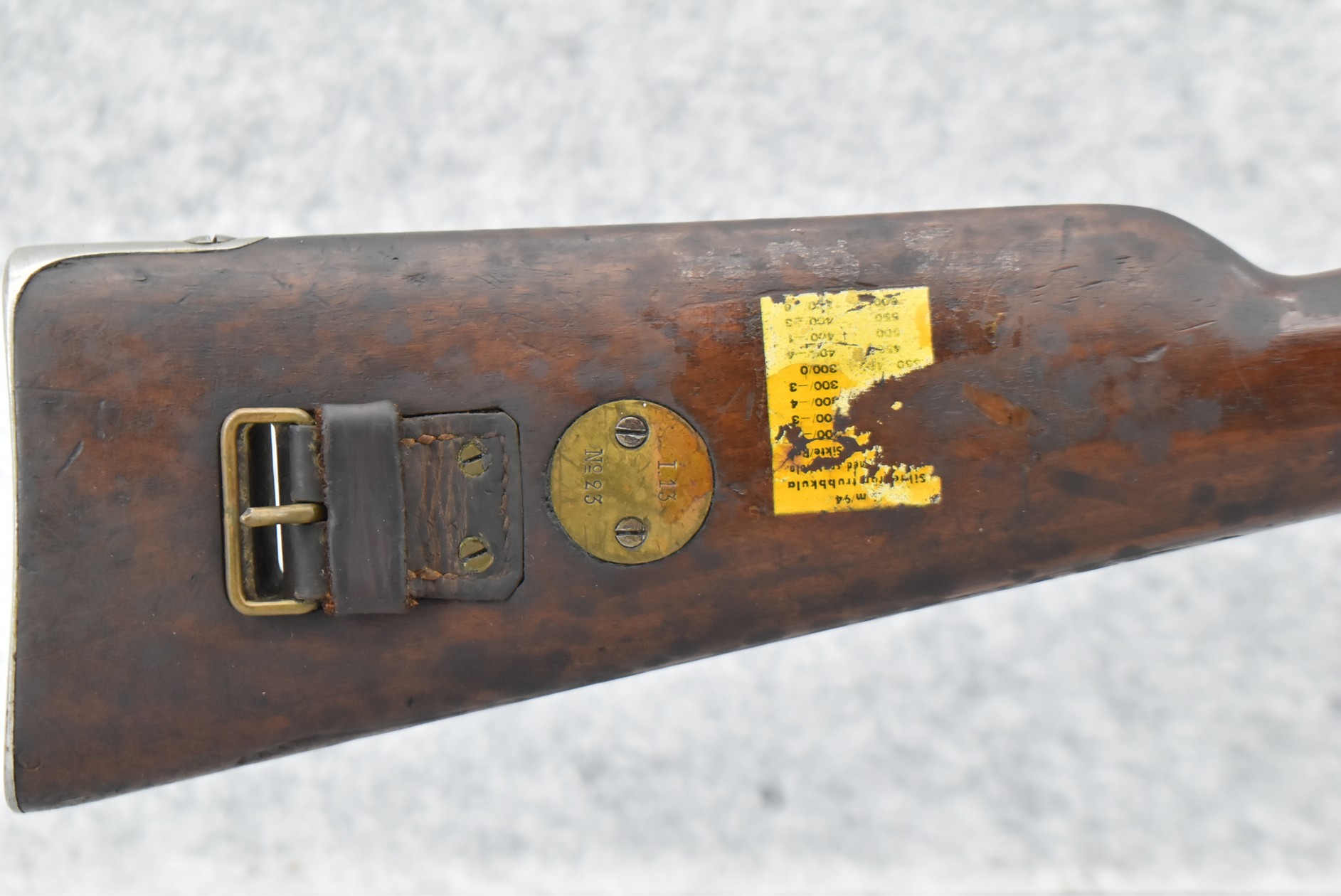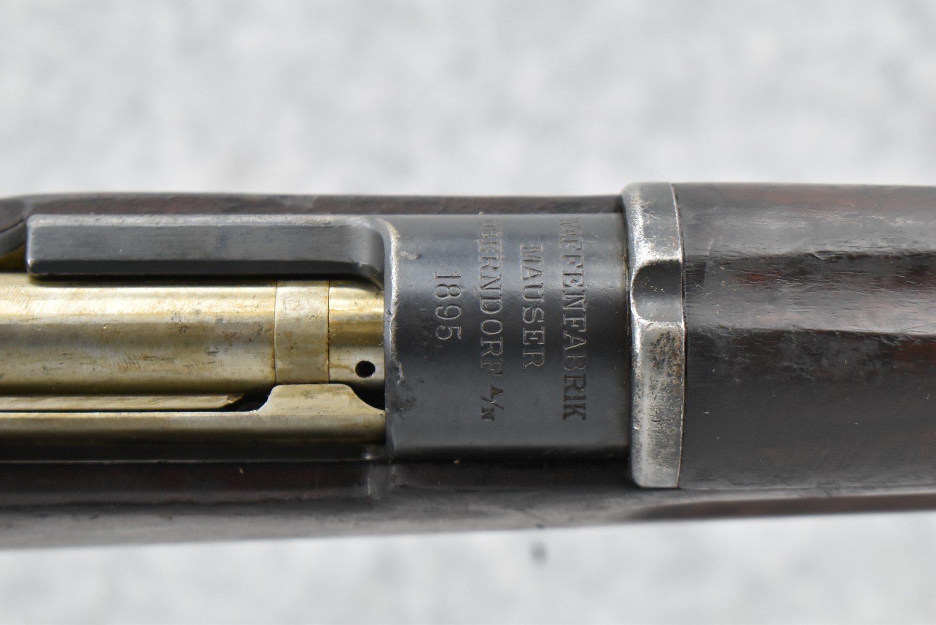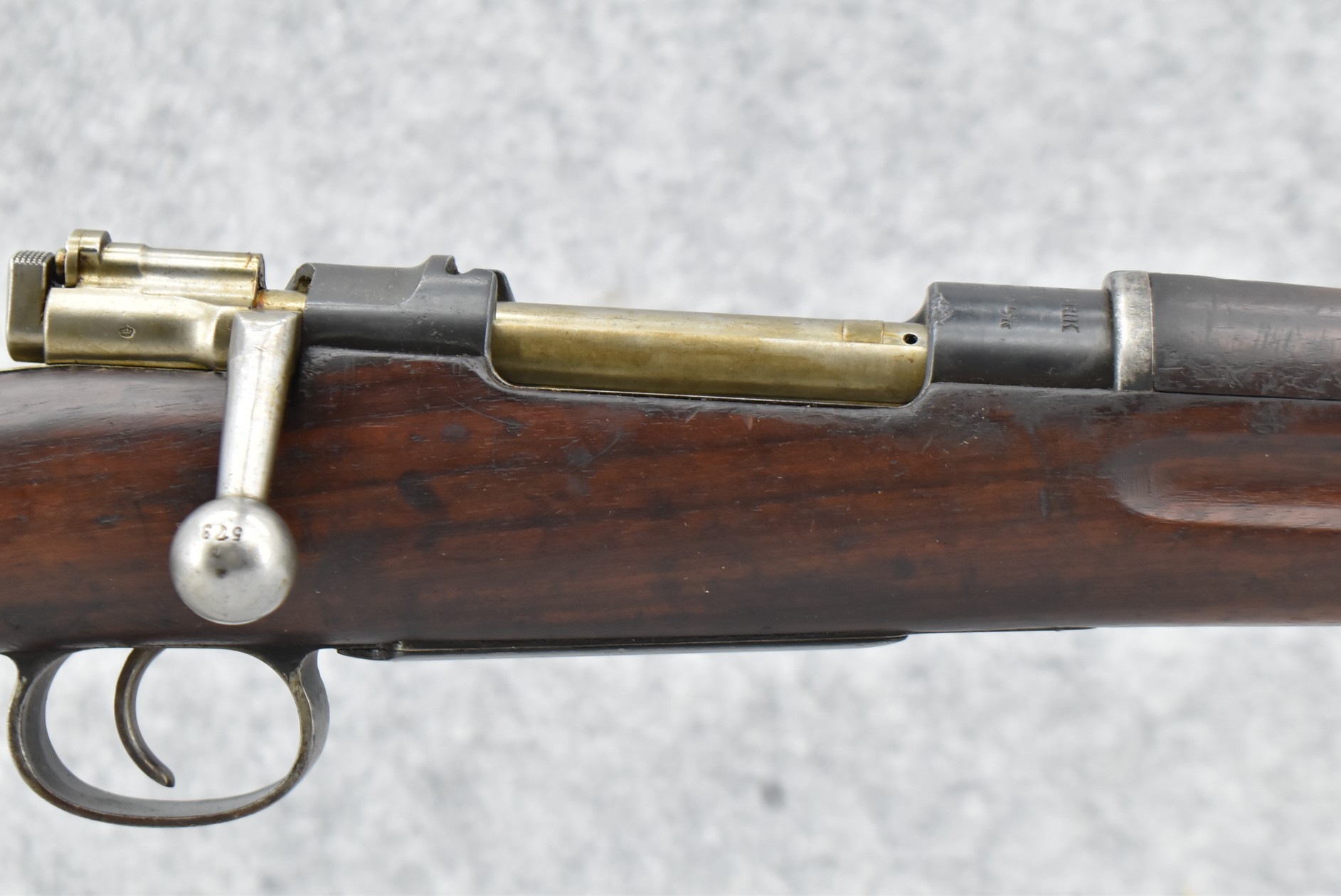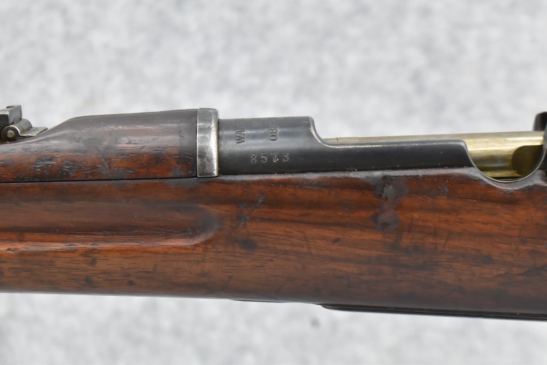 455. Very Scarce! Waffenfabrik-Oberndorf – Mod. Swedish Mauser 1894 Carbine – 6.5×55 Swedish Cal. Bolt Action Military Rifle – w/18” Barrel w/Blade Front & Adj. Rear Ladder Sights – Blued Finish – w/Straight Grip Full Wood Mannlicher Stock w/Factory Metal Butt Plate – All Matching Numbers! – Dated 1895!! – These Guns Are Very Rare & Sought After, This One Especially Due to the Fact it is Dated 1895, Making This One of the 12,000 First Produced in Germany Before Production Moved to Sweden!! – Great Find!!