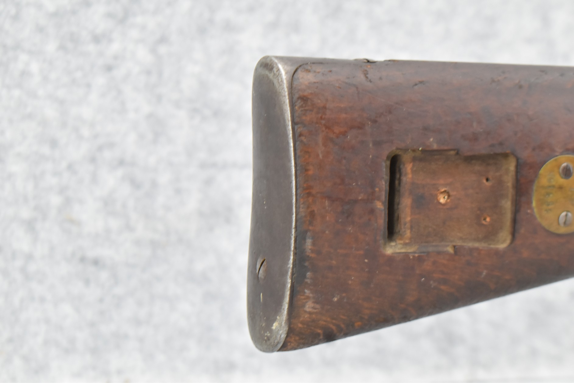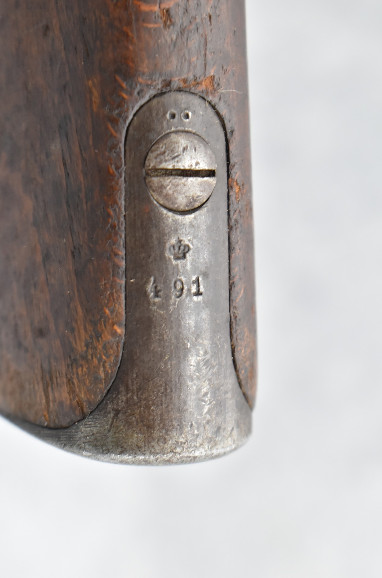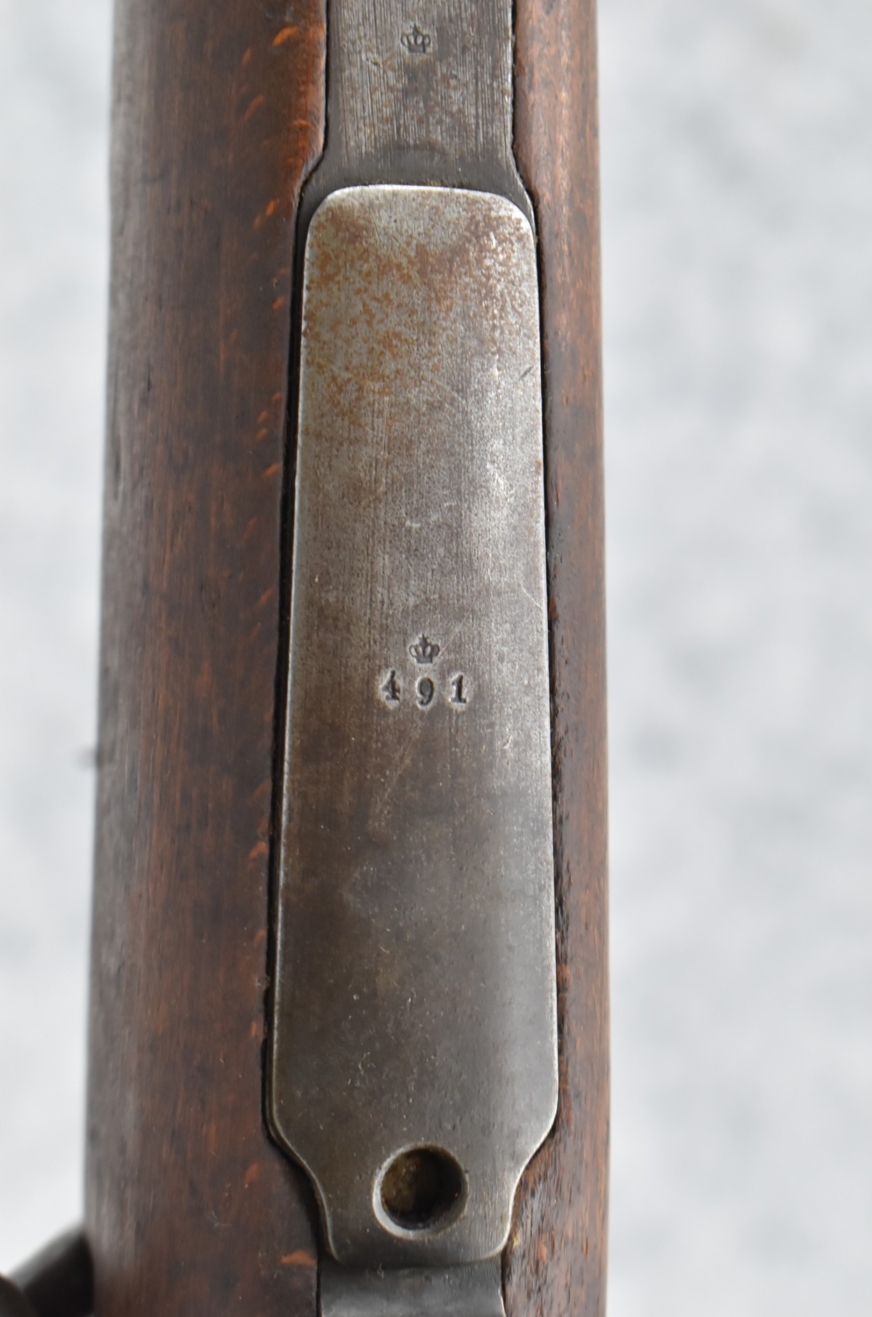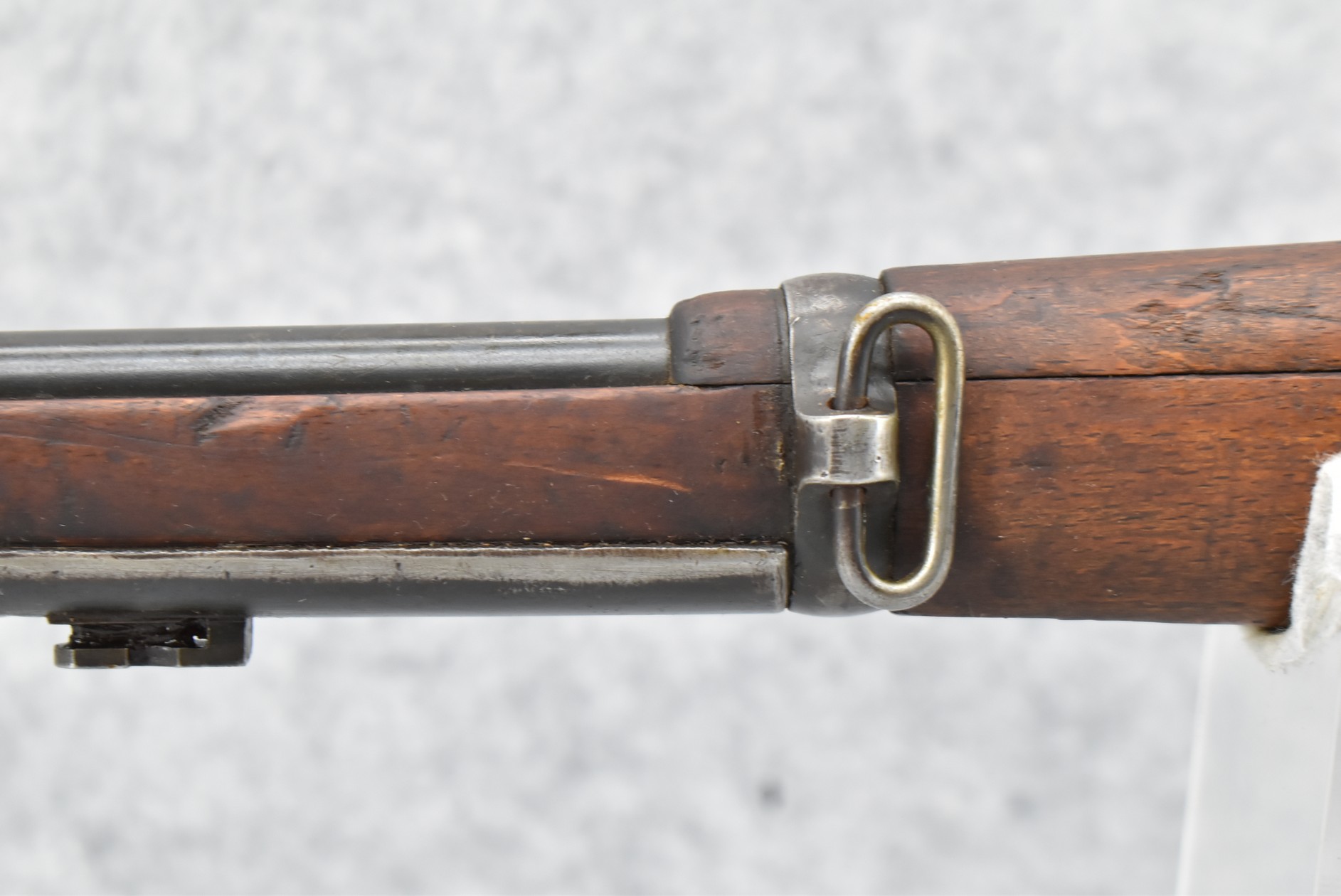 456R. Carl Gustaf (Swedish) – Mod. 1894/14 Carbine – 6.5×55 Cal. Bolt Action Military Rifle – w/17” Barrel w/Blade Front & Adj. Rear Ladder Sights – Blued/Gray Finish – w/Straight Grip Full Wood Mannlicher Stock w/Factory Metal Butt Plate – All Matching Numbers Except the Bolt – Dated 1918 – Non-Import Marked