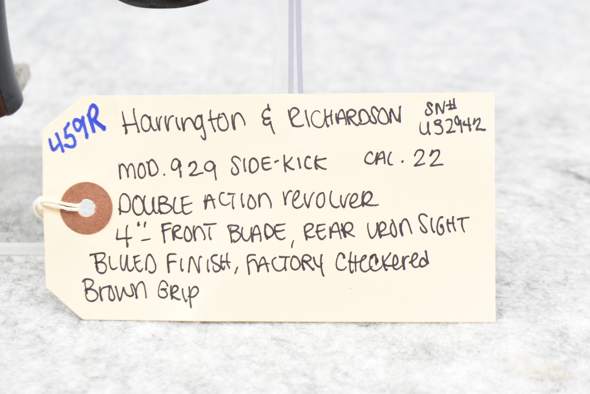 459R. Harrington & Richardson – Mod. 929 – 22 Cal. Double Action Revolver – w/4” Barrel w/Front Blade & Rear Iron Sight – Blued Finish – w/Factory Checkered Brown Grip