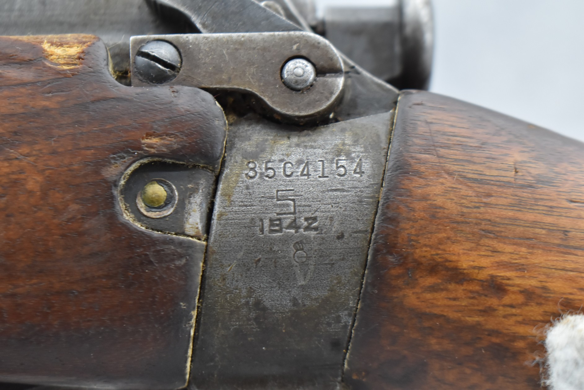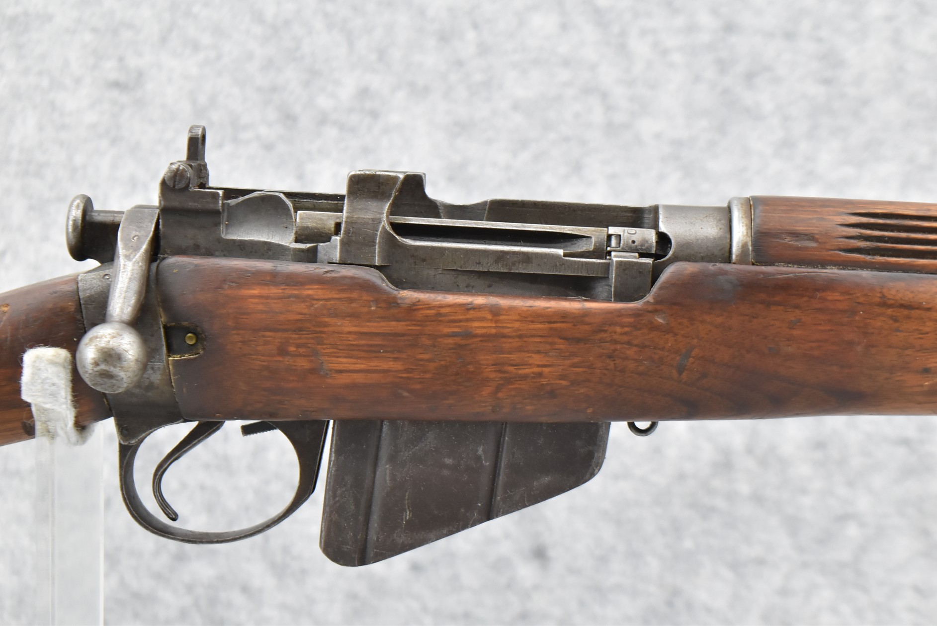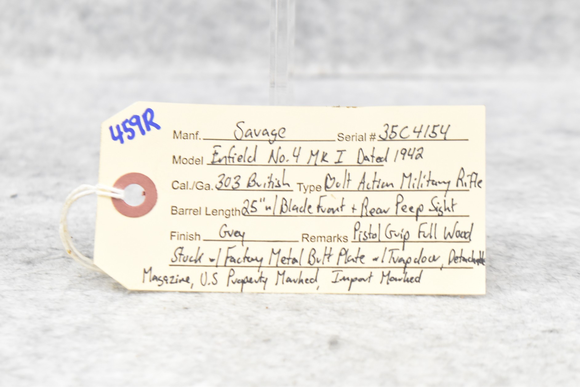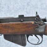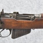 459R. Savage – Mod. Enfield No. 4 MK I – 303 British Cal. Bolt Action Military Rifle – w/25” Barrel w/Blade Front & Rear Peep Sights – Gray Finish – w/Pistol Grip Full Wood Stock w/Factory Metal Butt Plate w/Trapdoor – w/Detachable Magazine – US Property Marked – Dated 1942 – Import Marked