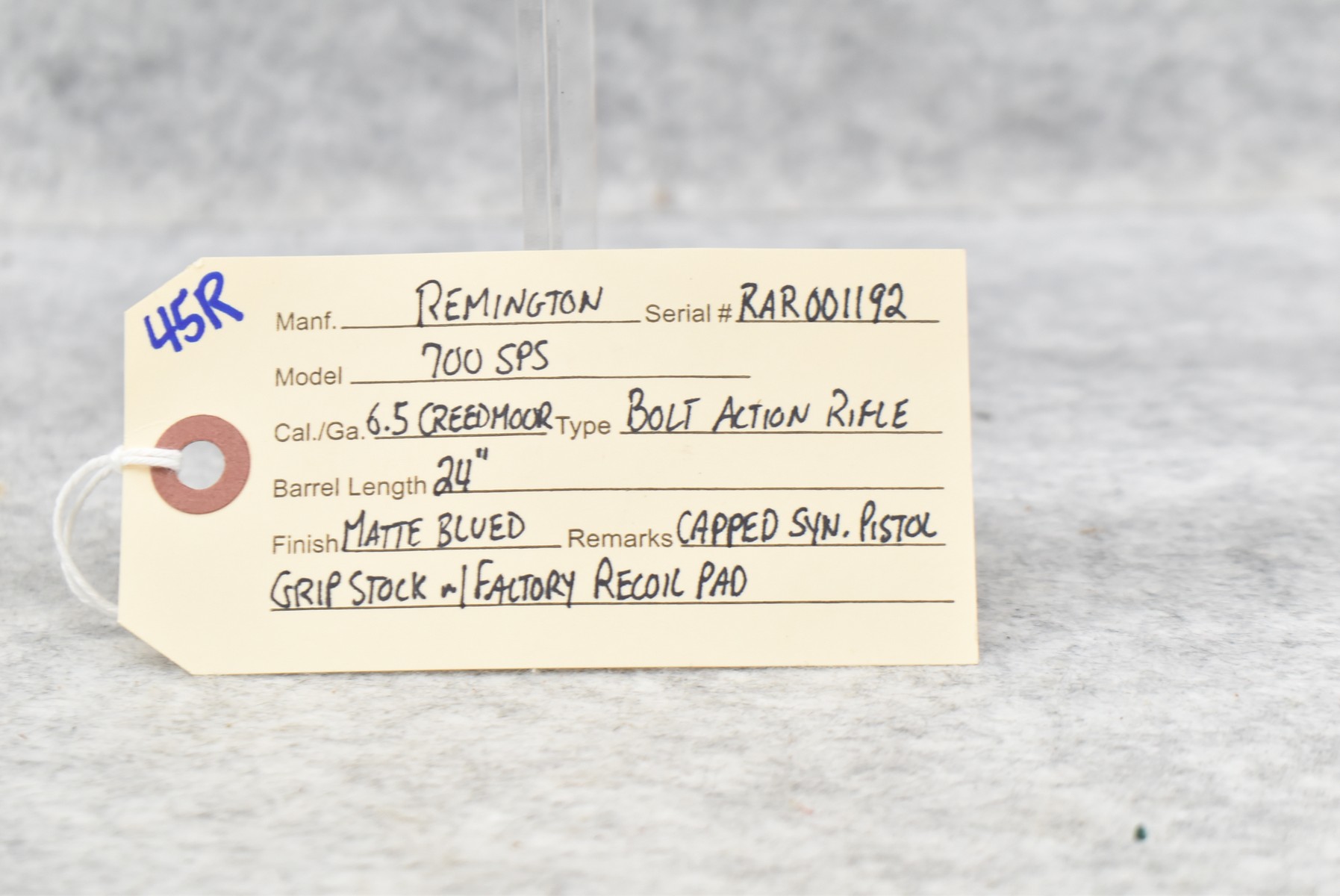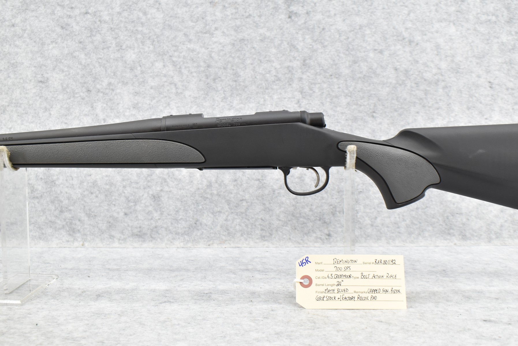 45R. Remington – Mod. 700 SPS – 6.5 Creedmoor Cal. Bolt Action Rifle – w/24” Barrel – Matte Blued Finish – w/Capped Synthetic Pistol Grip Stock w/Factory Recoil Pad