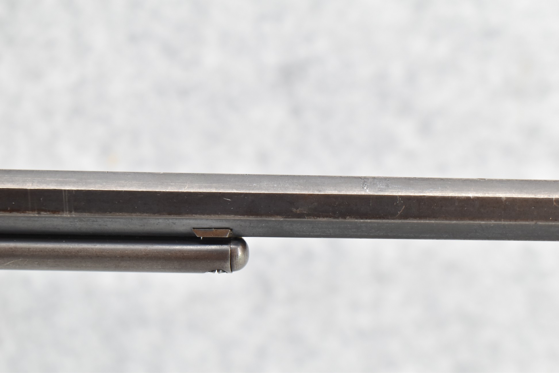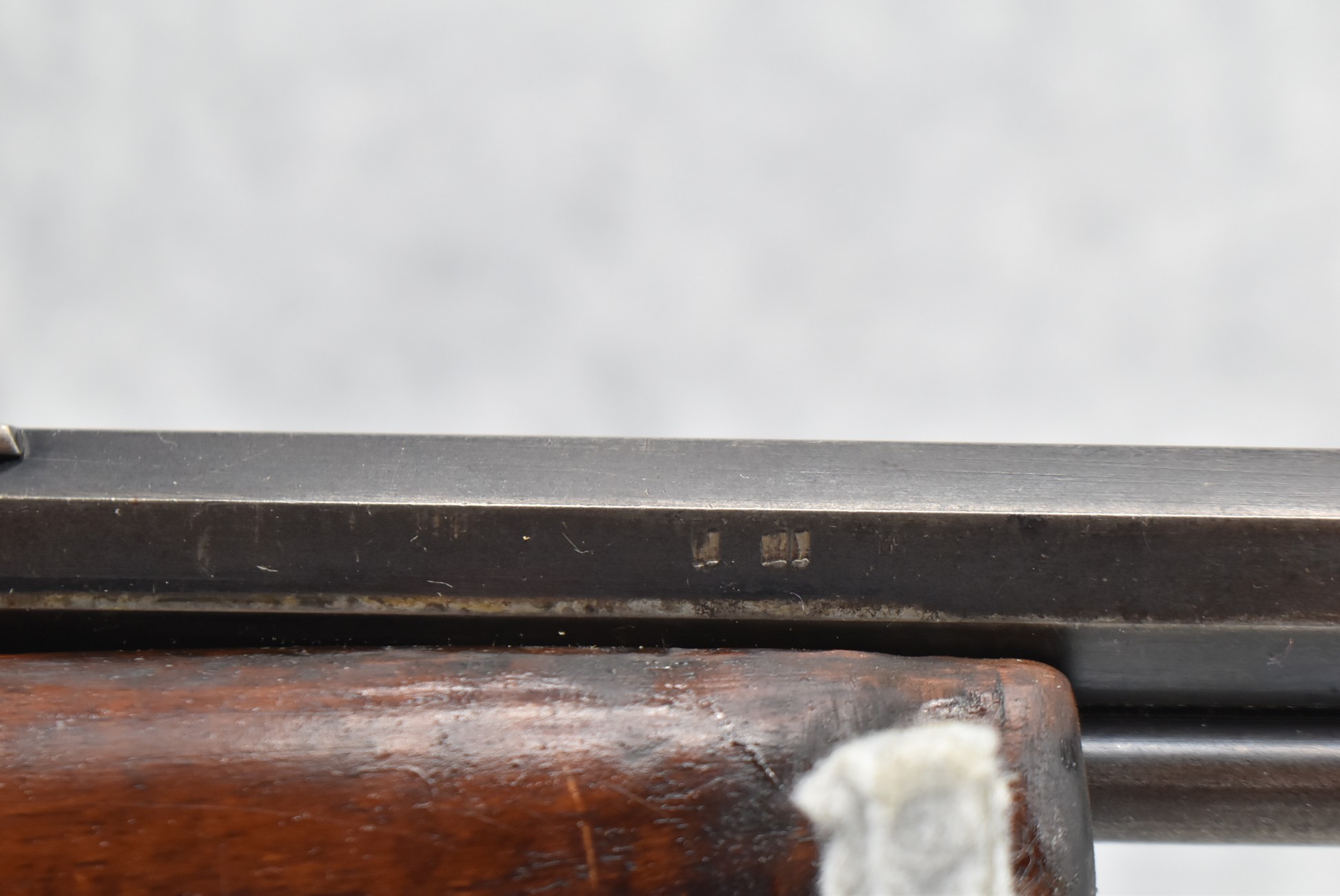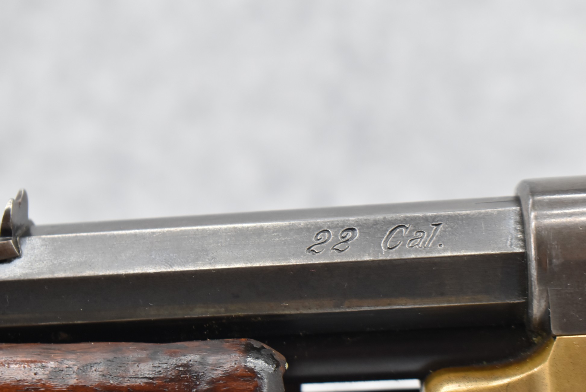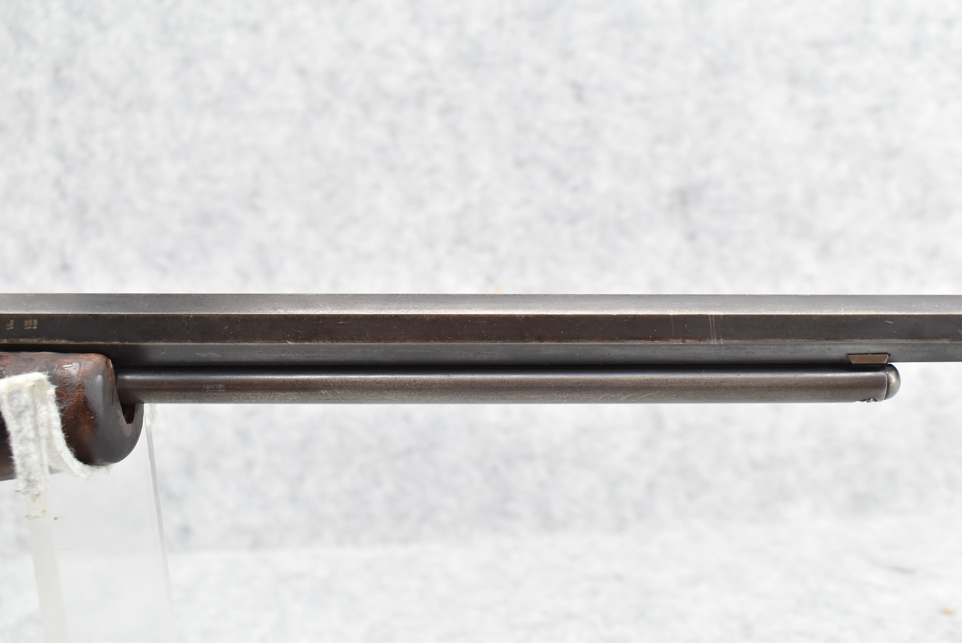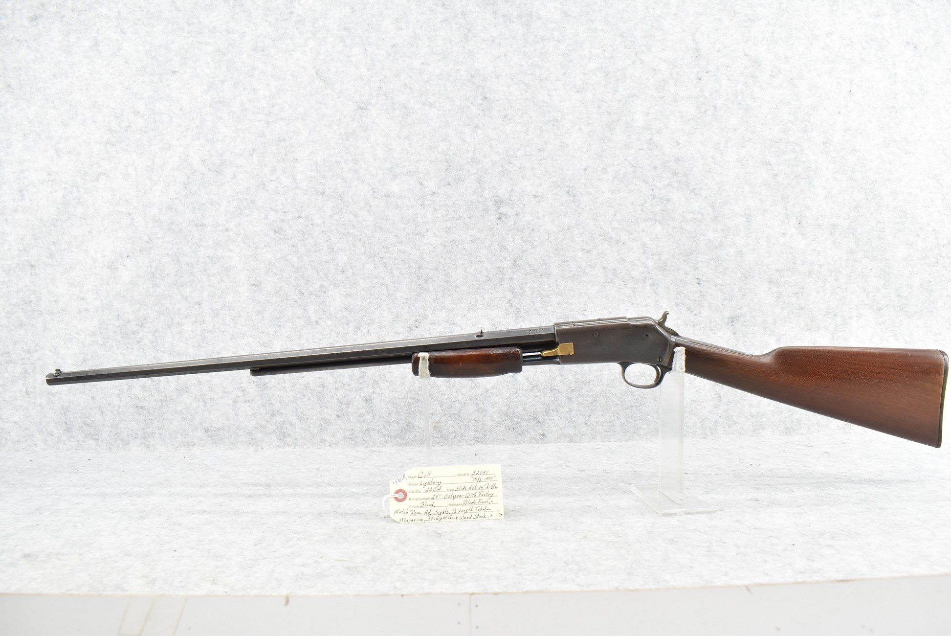 461R. Colt – Mod. Lightning – 22 Cal. Pump Action Rifle – w/24” Octagon Barrel w/Factory Blade Front & Notch Rear Adj. Sights w/Half Length Tubular Magazine – Blued Finish – w/Straight Grip Wood Stocks w/Colt Factory Hard Rubber Butt Plate – Mfg. 1900