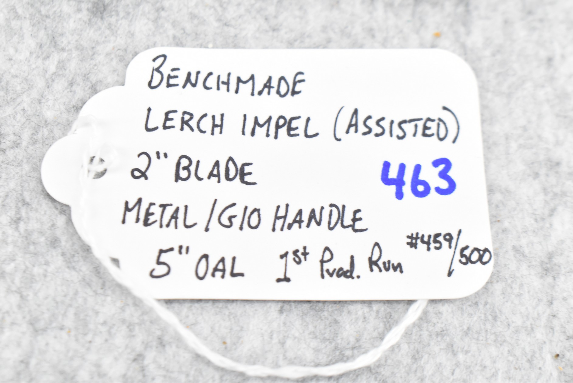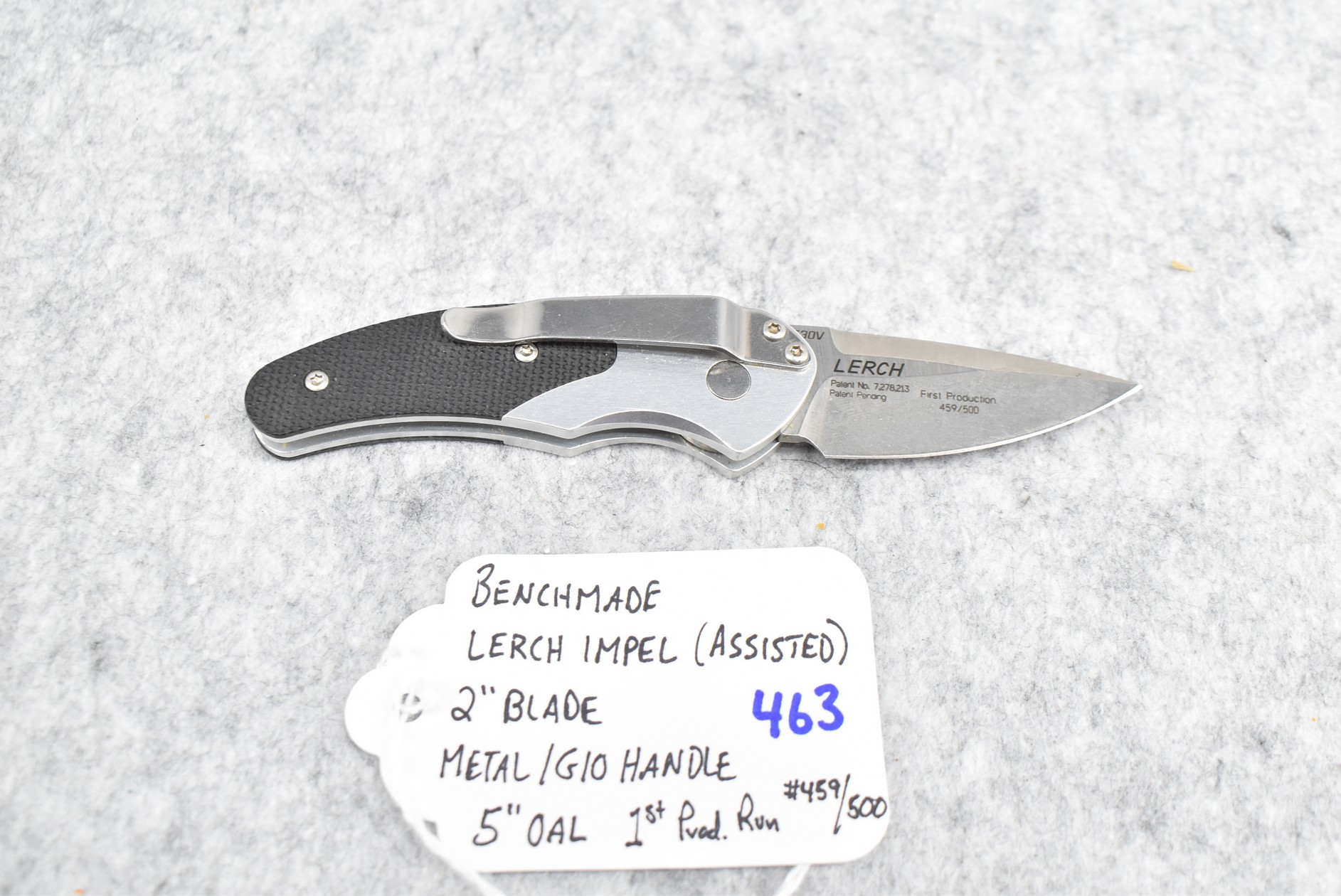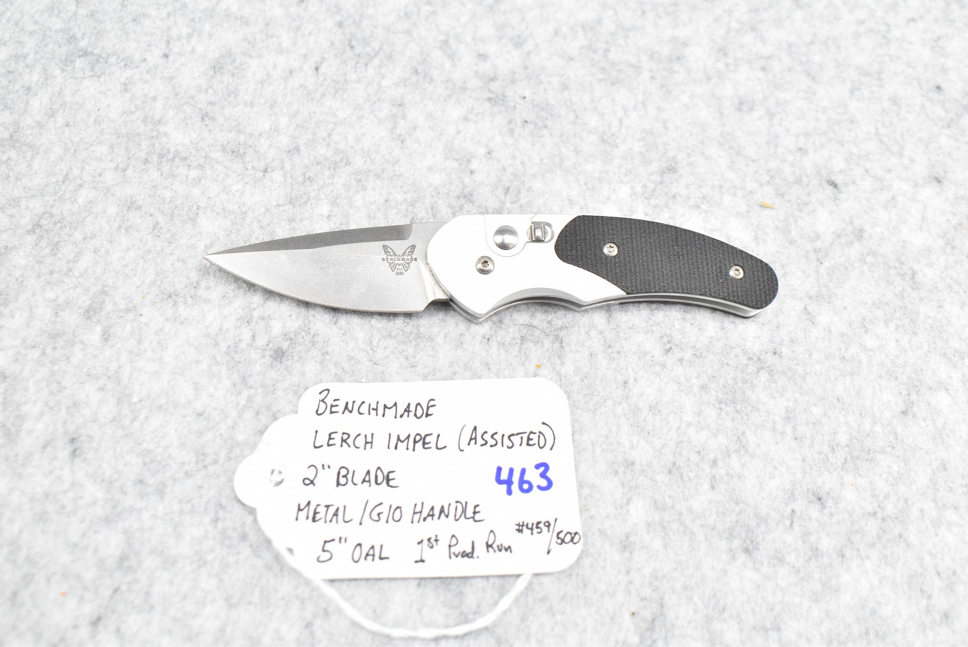 463. Benchmade – Lerch Impel (Assisted) Knife First Production Run #459/500 – w/2” Blade – 5” Overall Length – w/Metal/G10 Handle