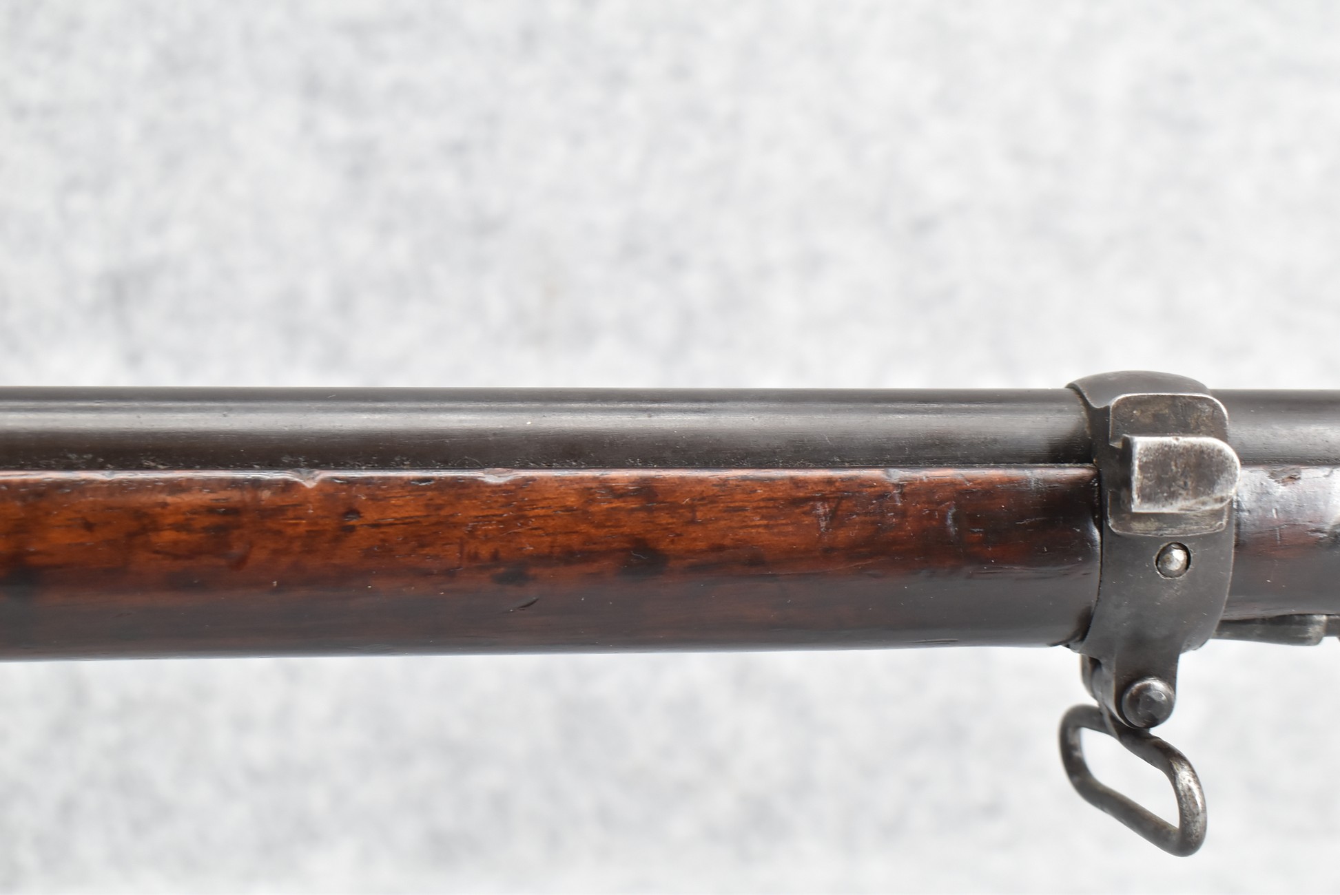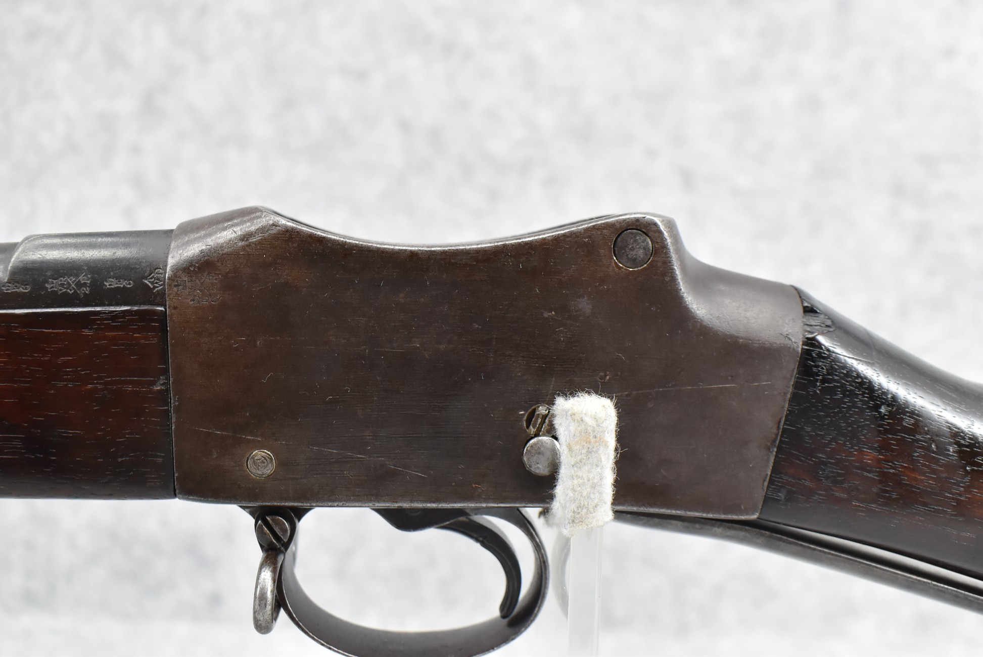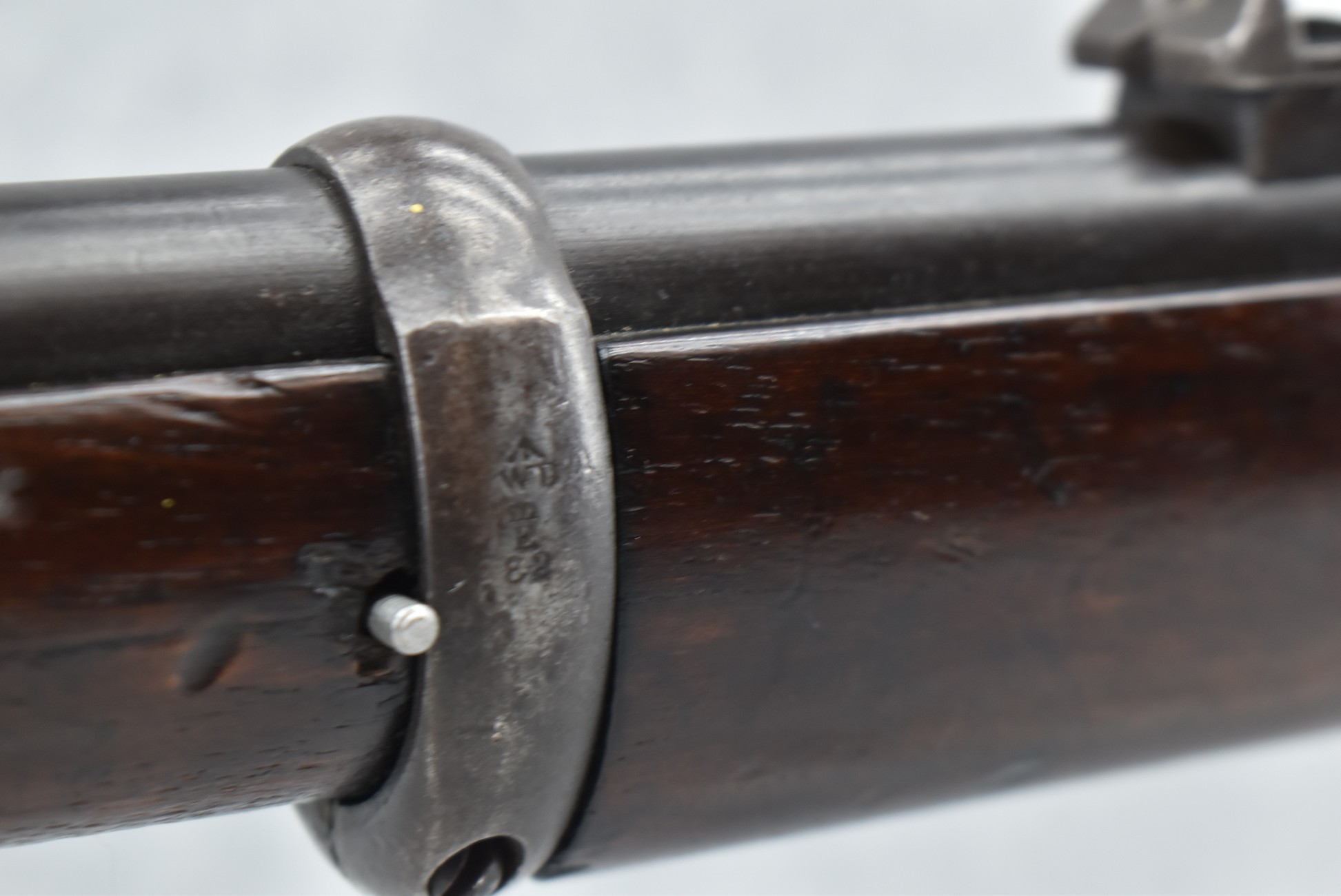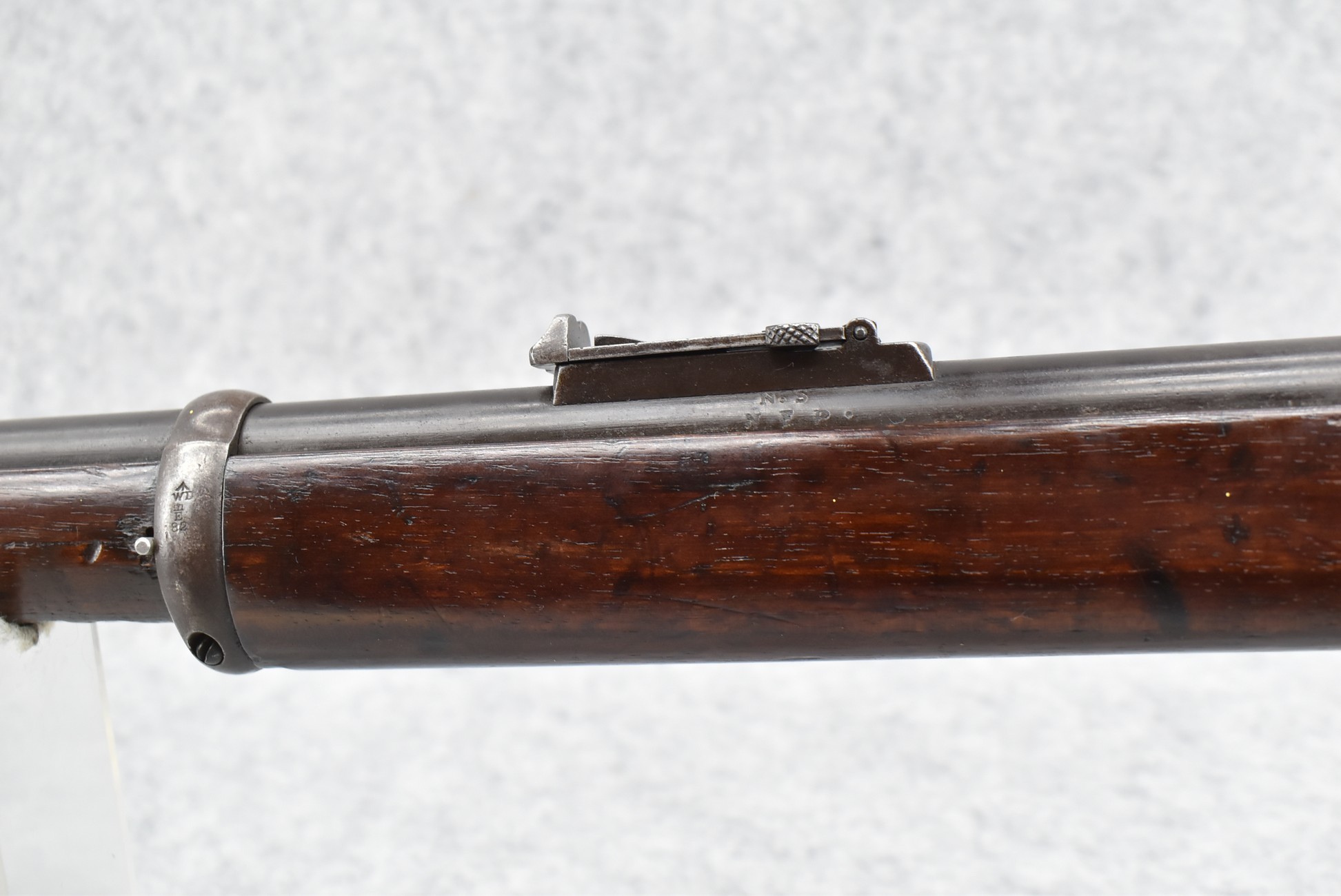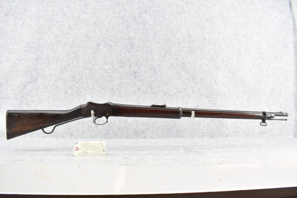 472. Enfield – Mod. Martini Henry Mark IV – .577/450 BP Cal. Breech Loading Rifle – w/33” Barrel w/Blade Front & Adj. Rear Notch Ladder Sights – Blued Finish – w/Straight Grip Wood Stocks w/Metal Butt Plate – w/Sling Loops – w/Cleaning Rod – Dated 1887
