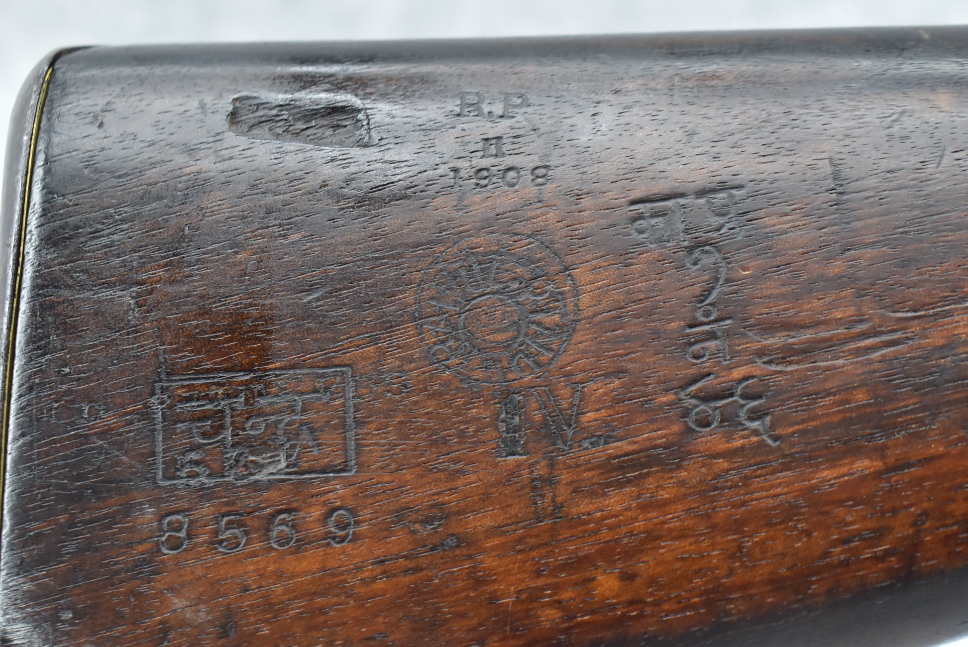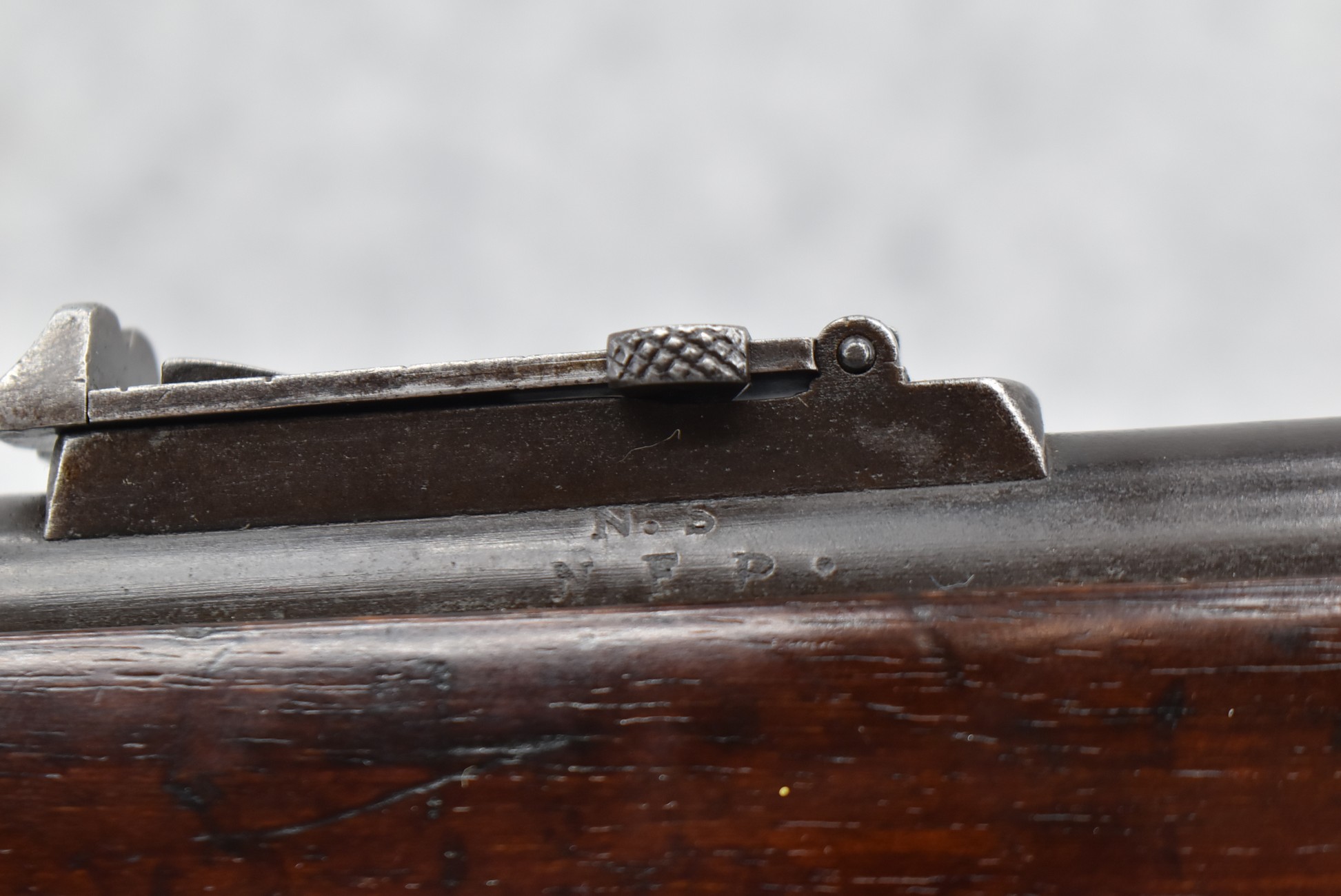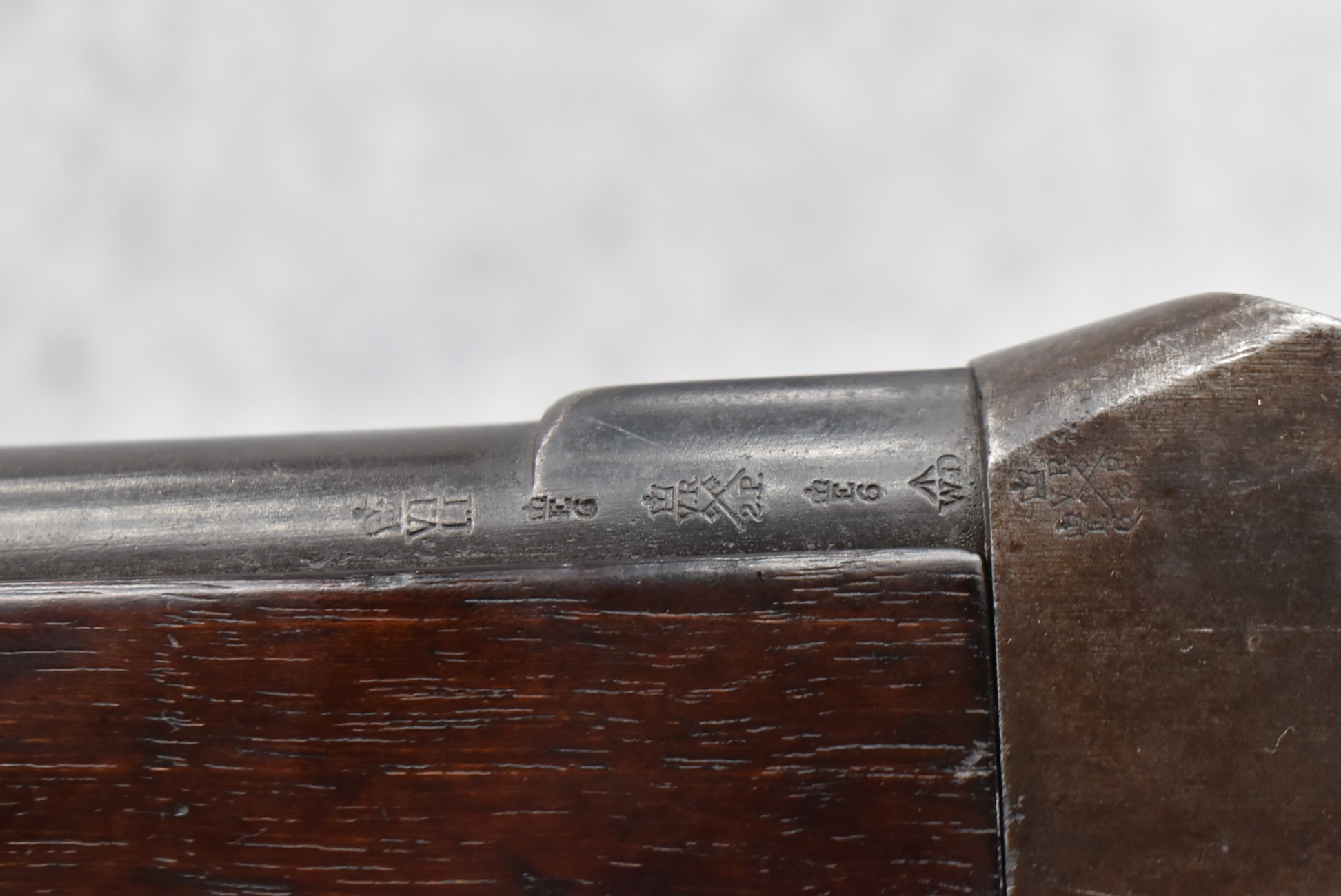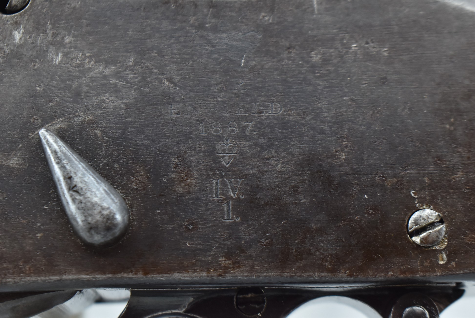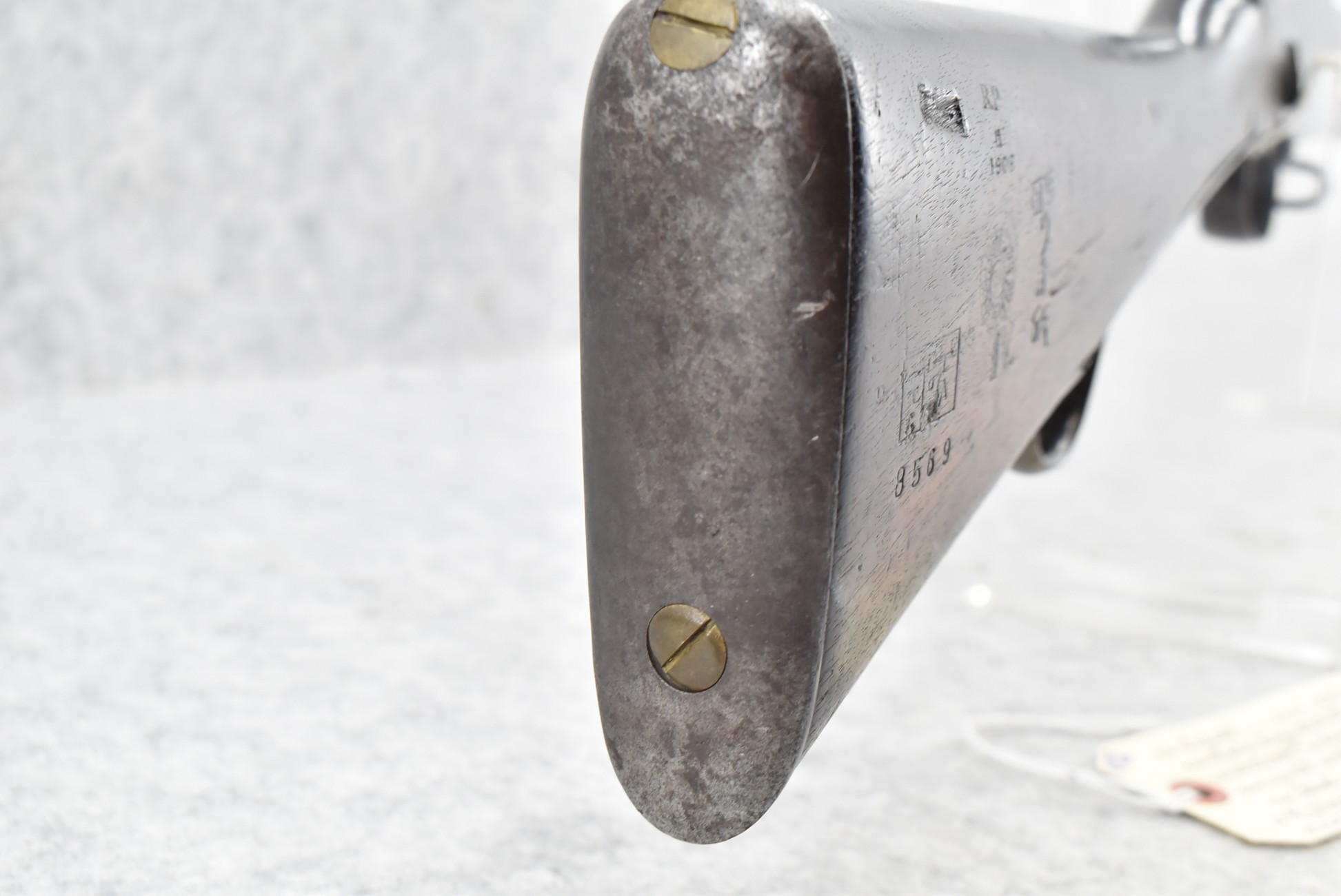 472. Enfield – Mod. Martini Henry Mark IV – .577/450 BP Cal. Breech Loading Rifle – w/33” Barrel w/Blade Front & Adj. Rear Notch Ladder Sights – Blued Finish – w/Straight Grip Wood Stocks w/Metal Butt Plate – w/Sling Loops – w/Cleaning Rod – Dated 1887