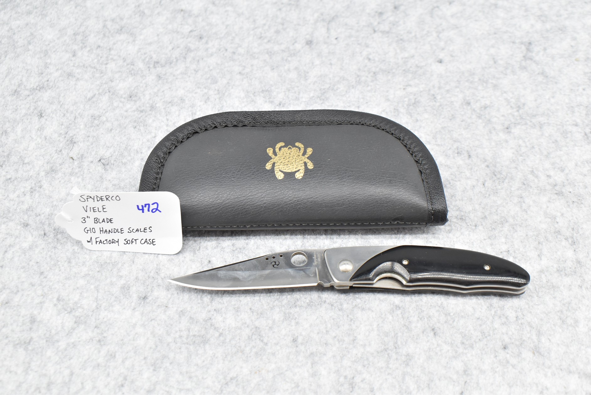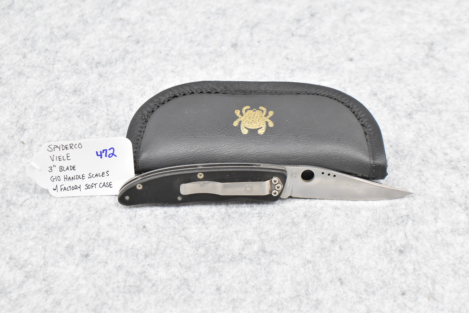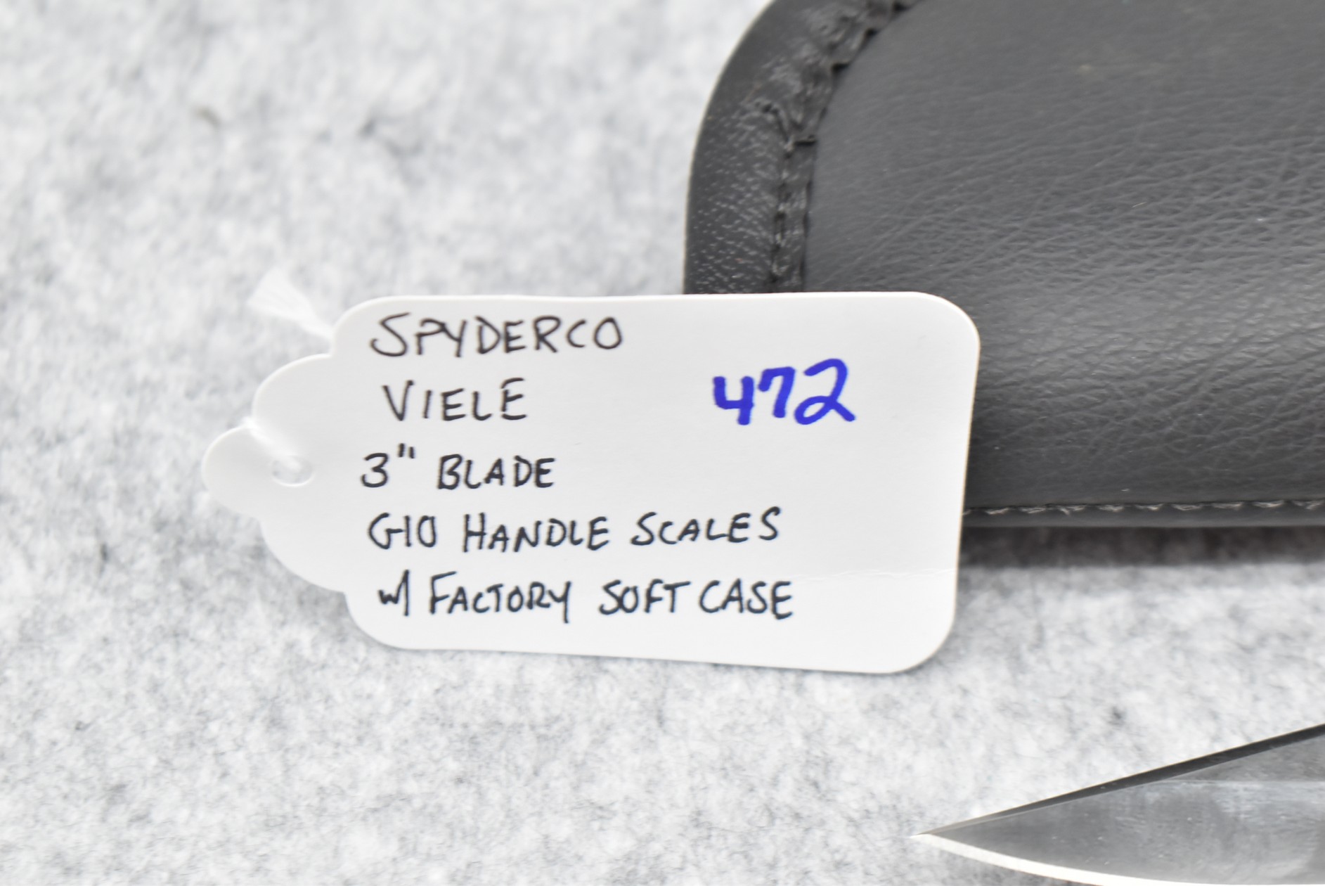 472. Spyderco – Viele Folding Knife – w/3” Blade – w/G10 Handle Scales – w/Factory Soft Case