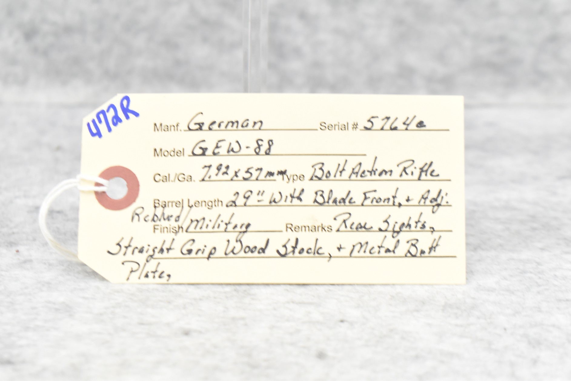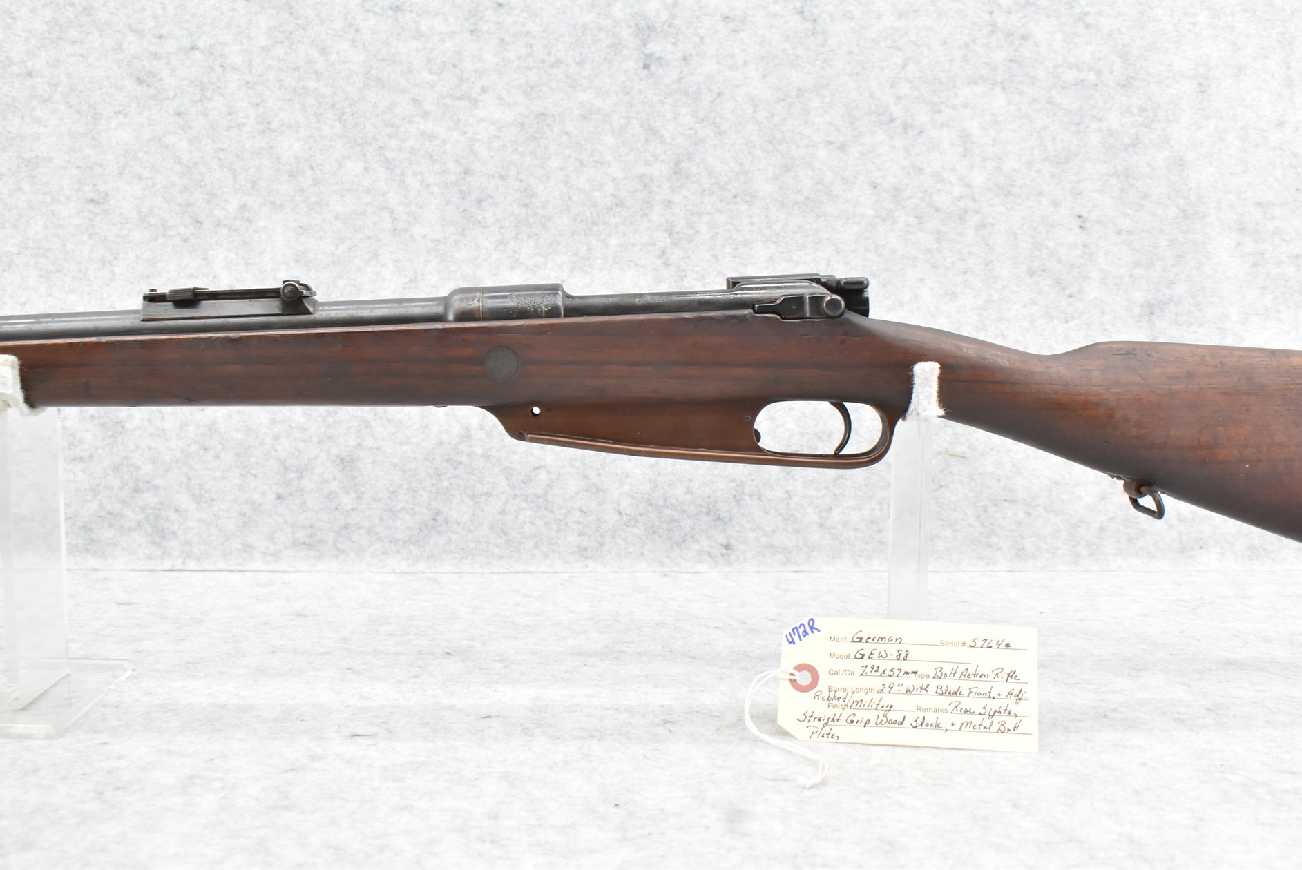472R. German – Mod. GEW-88 – 7.92x57mm Cal. Bolt Action Rifle – w/29” Barrel w/Blade Front & Adj. Rear Sights – Re-Blued/Military Finish – w/Straight Grip Full Wood Stock w/Metal Butt Plate