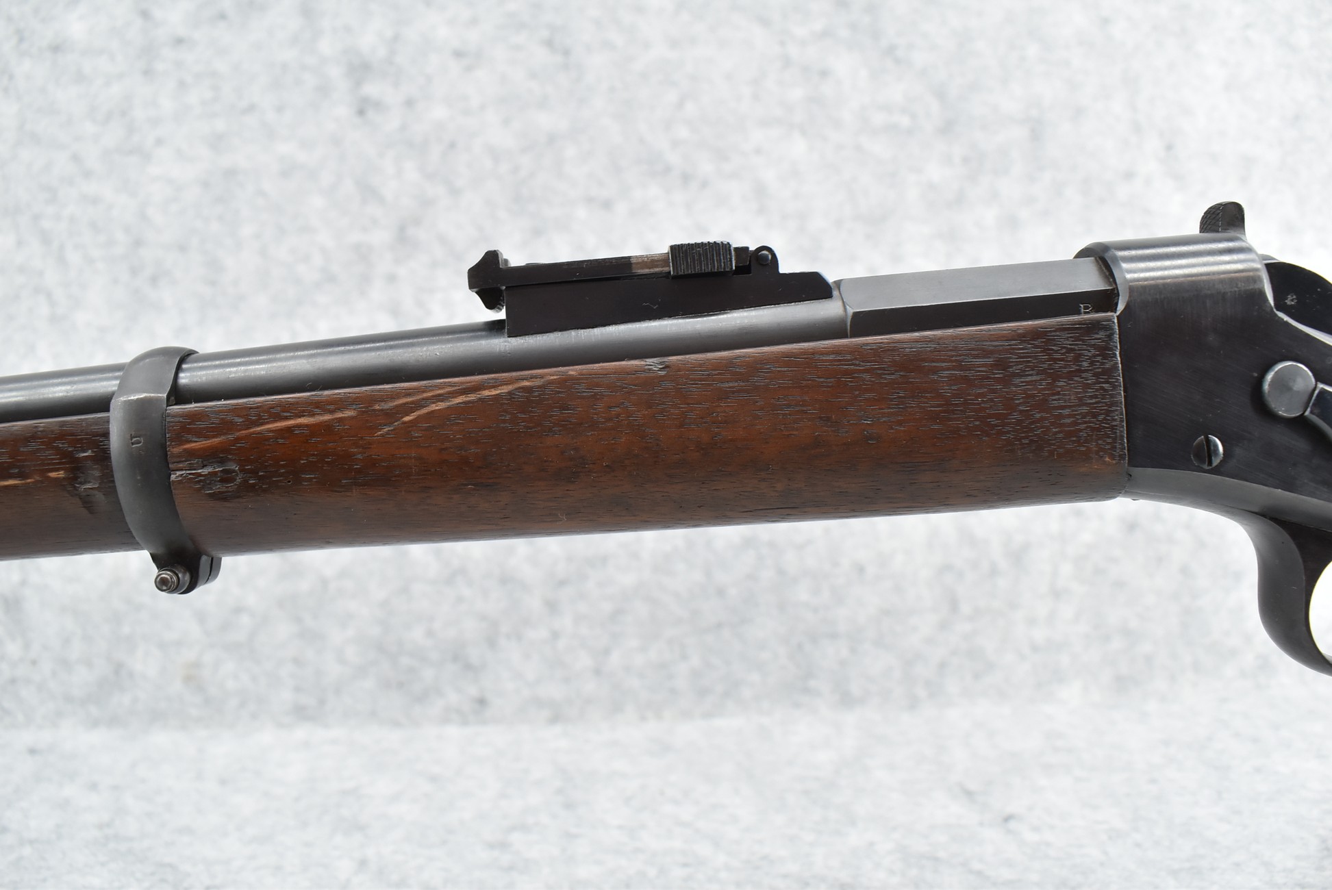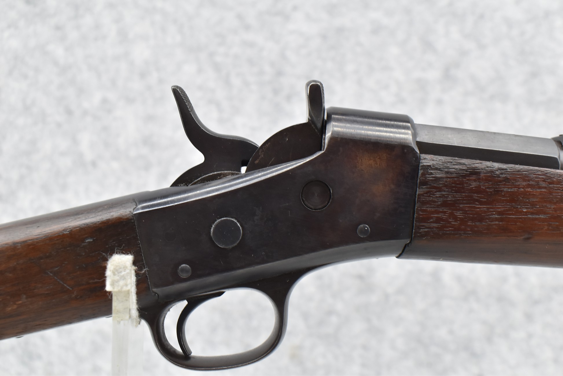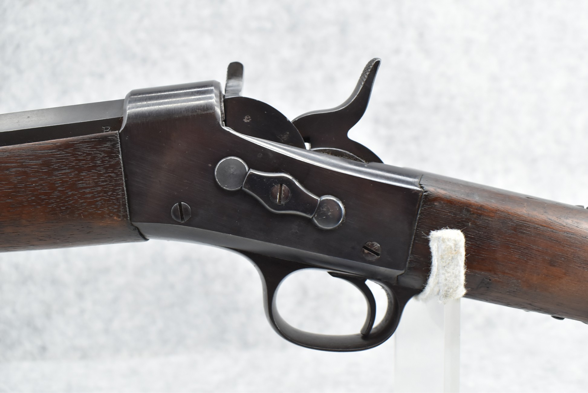 474. Remington – Mod. Rolling Block No. 1 – 43 Spanish Cal. Rolling Block Rifle – w/36” Barrel w/Blade Front & Adj. Rear Notch Sights – Blued Finish – w/Straight Grip Full Wood Stocks w/Metal Butt Plate & 3 Barrel Bands – w/Sling Loops – w/Cleaning Rod