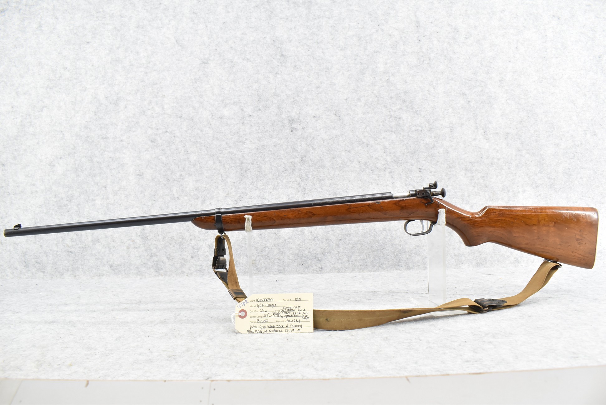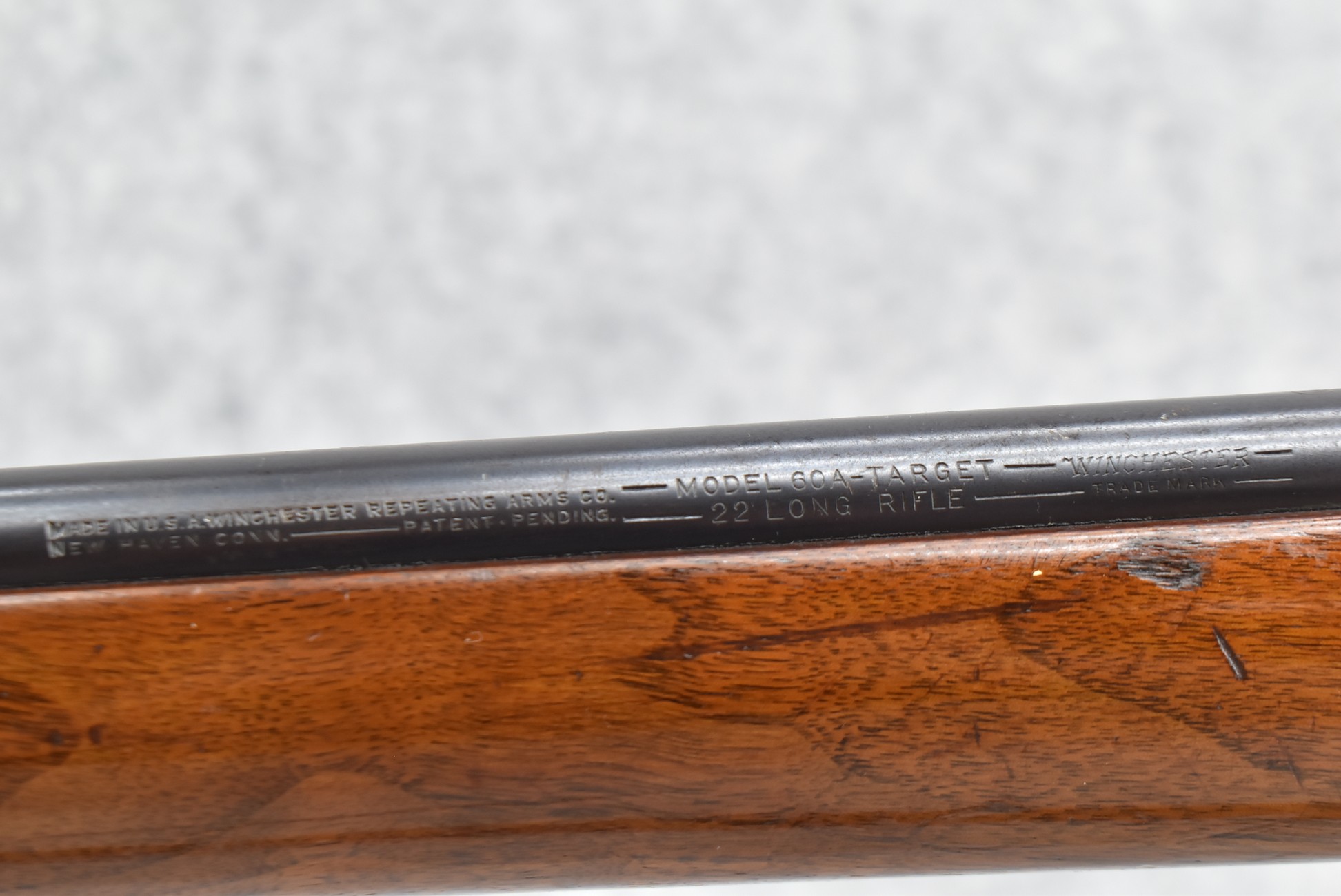 478R. Winchester – Mod. 60A Target – 22LR Cal. Single Shot Bolt Action Rifle – w/27” Barrel w/Blade Front, Adjustable Rear, and Factory Lyman 55W Receiver Peep Sights – Blued Finish – w/Factory Pistol Grip Wood Stock w/Factory Butt Plate – w/Sling – Approximately 6,118 Manufactured Between 1932-1939