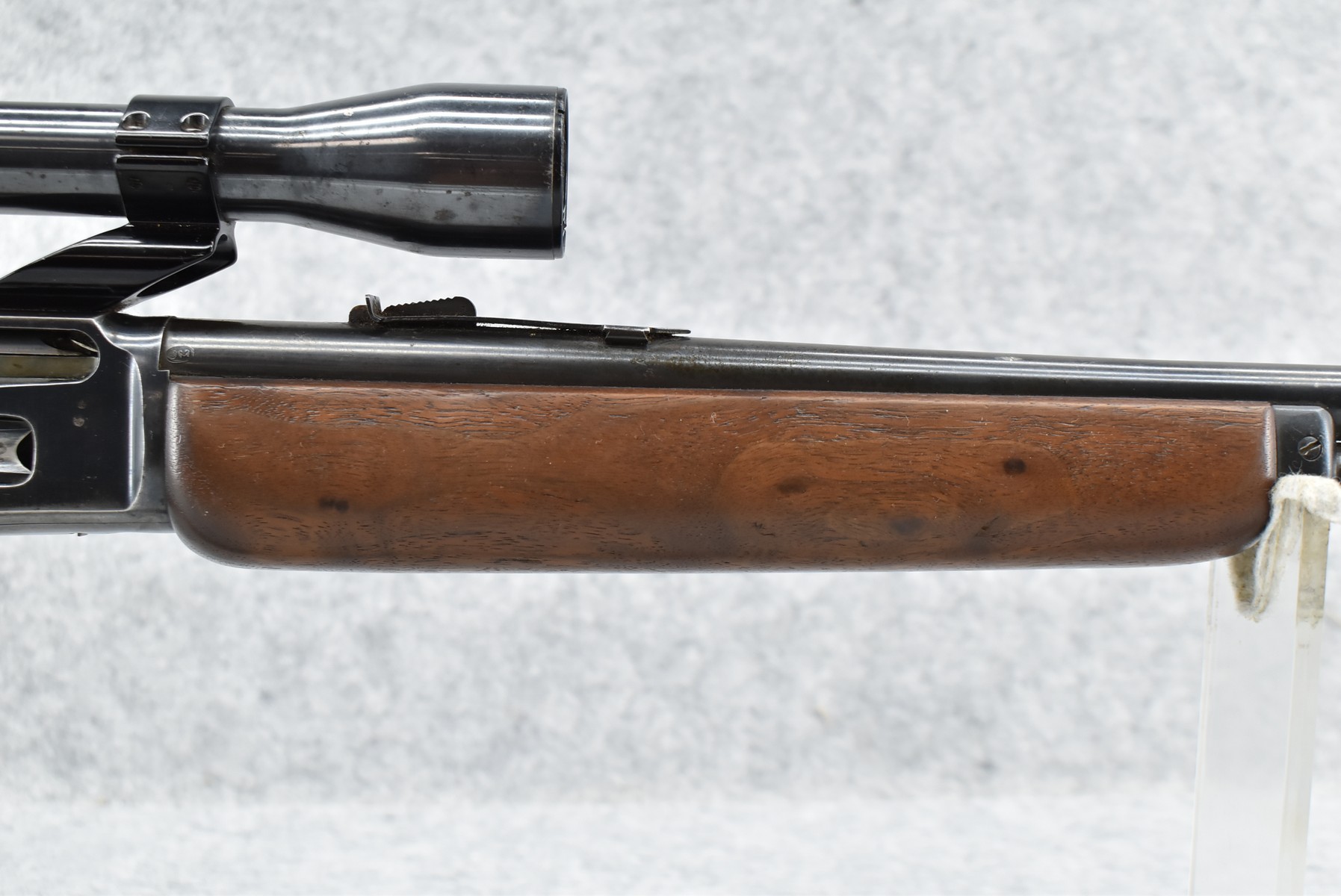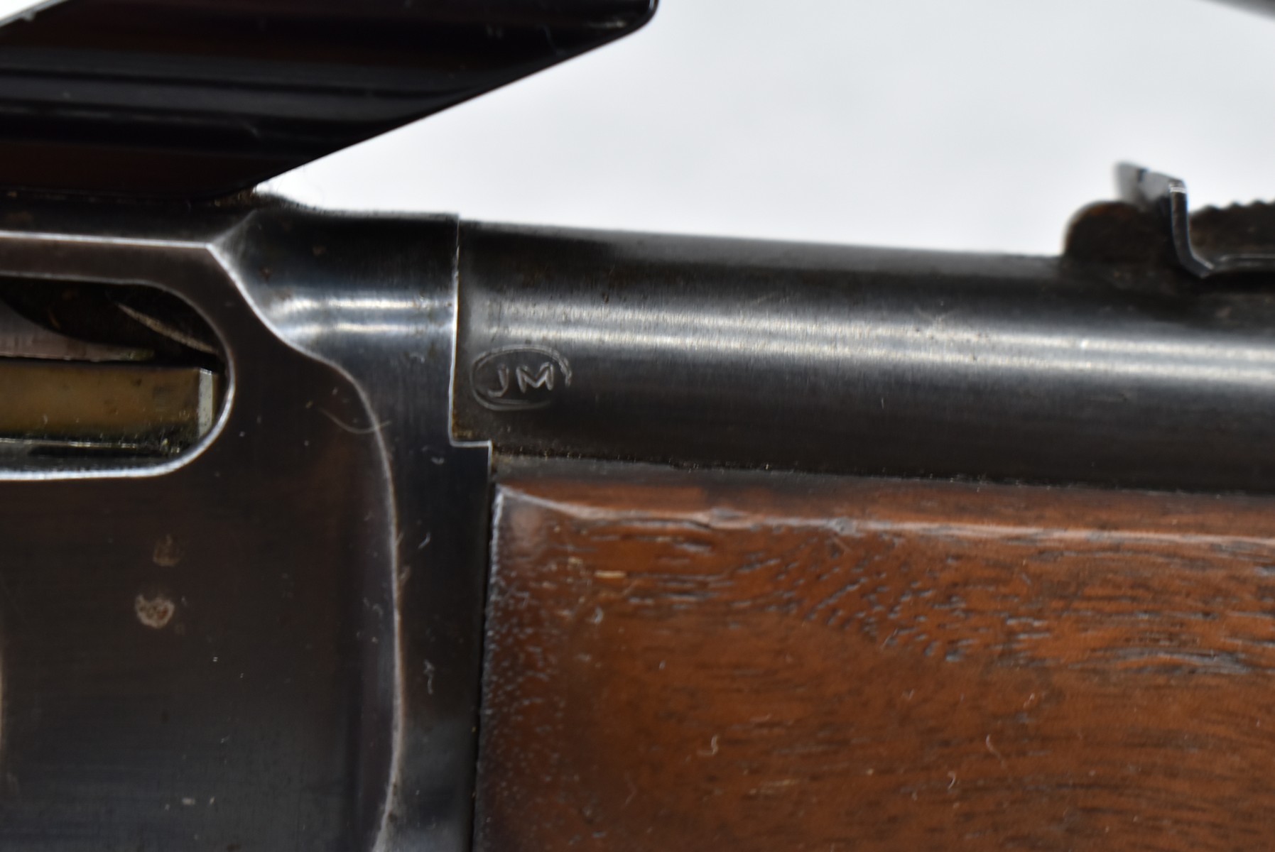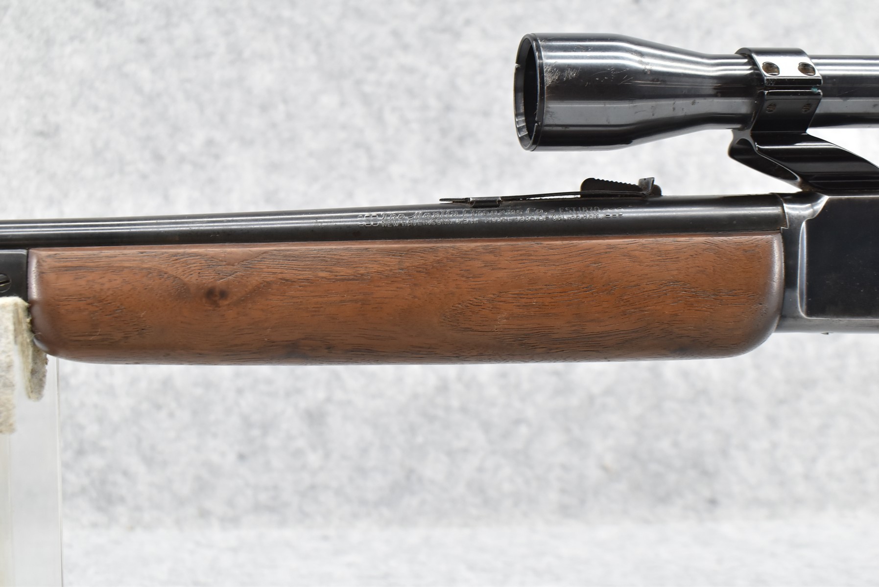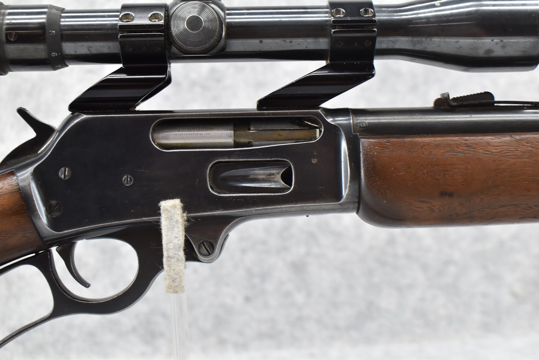 480R. Marlin – Mod. 336SC – 35 Rem. Cal. Lever Action Rifle – w/20” JM Marked Barrel w/Front Blade & Rear Rifle Sights – Blued Finish – w/Plain Pistol Grip Wood Stocks w/Factory Butt Plate – w/Tubular Magazine – w/Leather Sling – w/Weaver V7-B Scope – Mfg. 1951