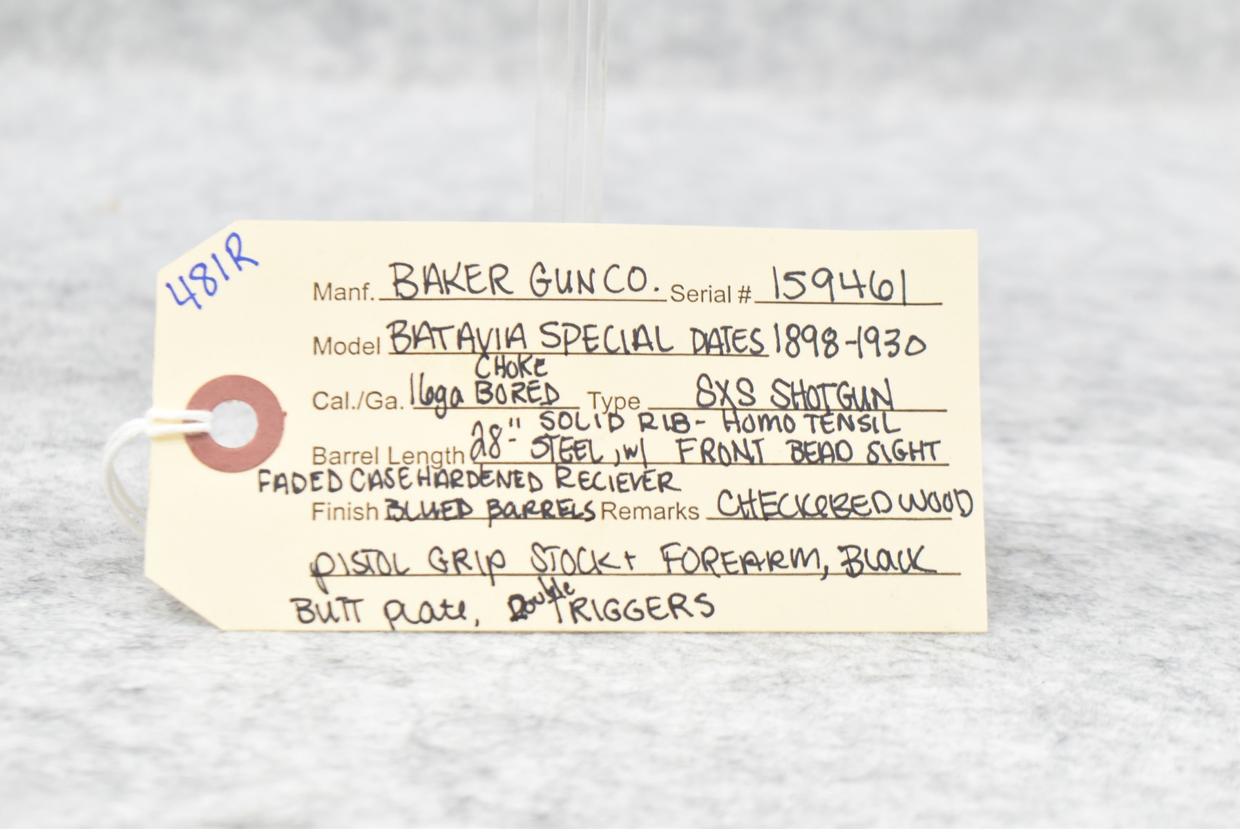 481R.     Baker Gun Co. – Mod. Batavia Special – 16ga. Double Barrel Shotgun – w/28” Solid Rib Steel Blued Finish Barrels w/Front Bead Sight – Faded Case Hardened Finish Receiver – w/Checkered Wood Pistol Grip Stocks w/Butt Plate – w/Double Triggers
