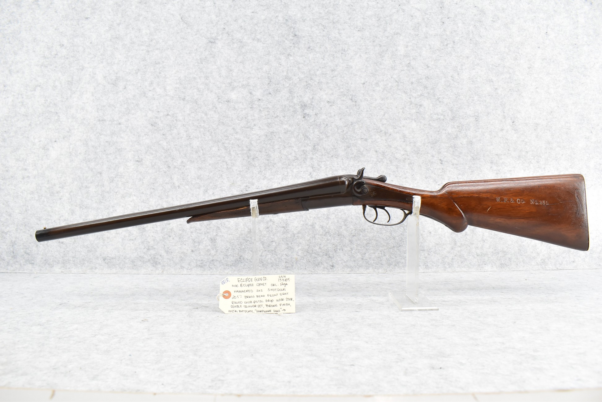 481R. Eclipse Gun Co. – Mod. Eclipse Comet – 12ga. Hammered Double Barrel Shotgun – w/20.5” Barrel w/Brass Bead Front Sight – Brown Finish – w/Round Knob Pistol Grip Wood Stock w/Metal Butt Plate – w/Double Triggers