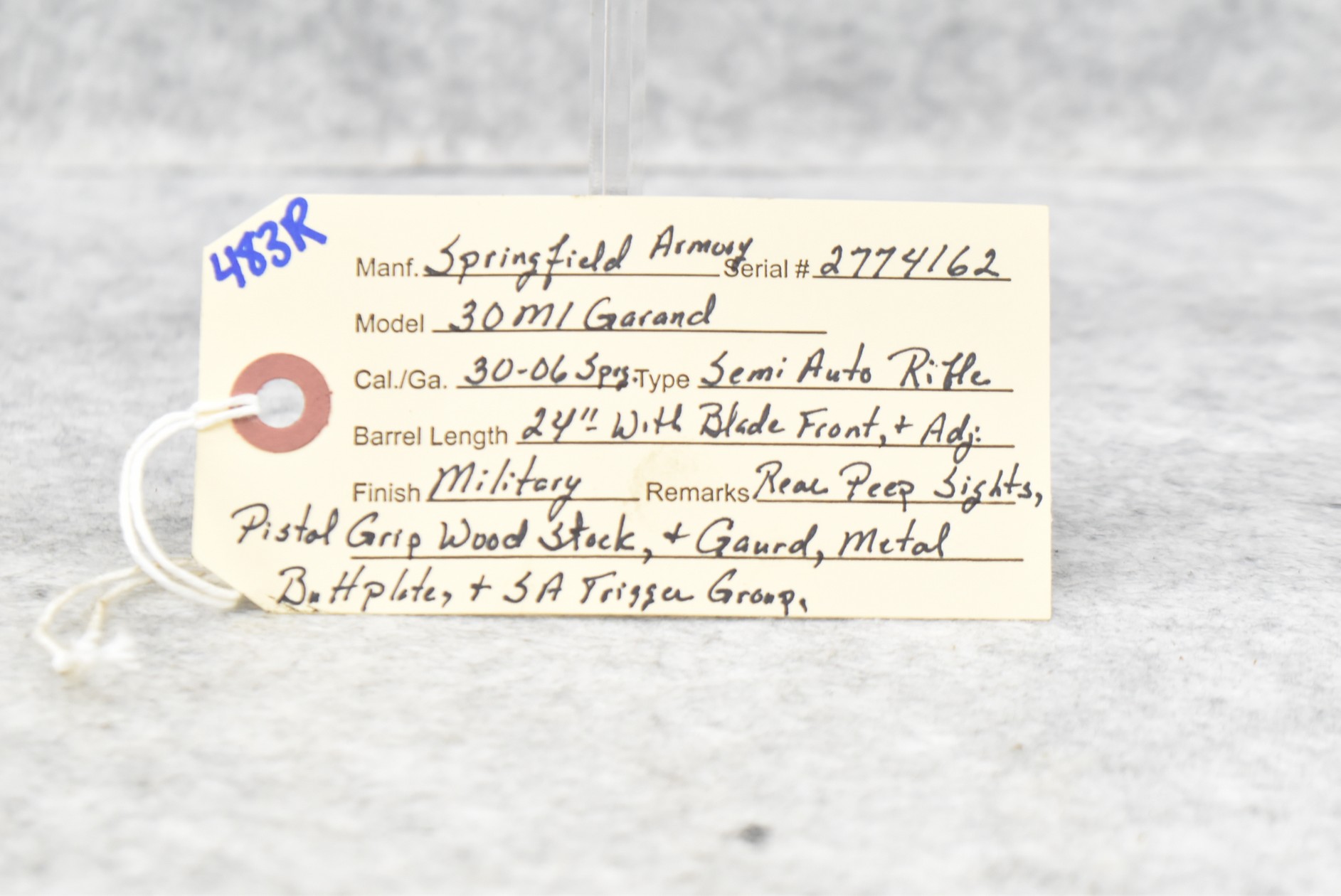 483R. Springfield Armory – Mod. M1 Garand – 30-06. Cal. Semi-Auto Rifle – w/24” Barrel w/Blade Front & Adj. Rear Peep Sights – Military Finish – w/Pistol Grip Wood Stocks w/Metal Butt Plate – w/SA Trigger Group