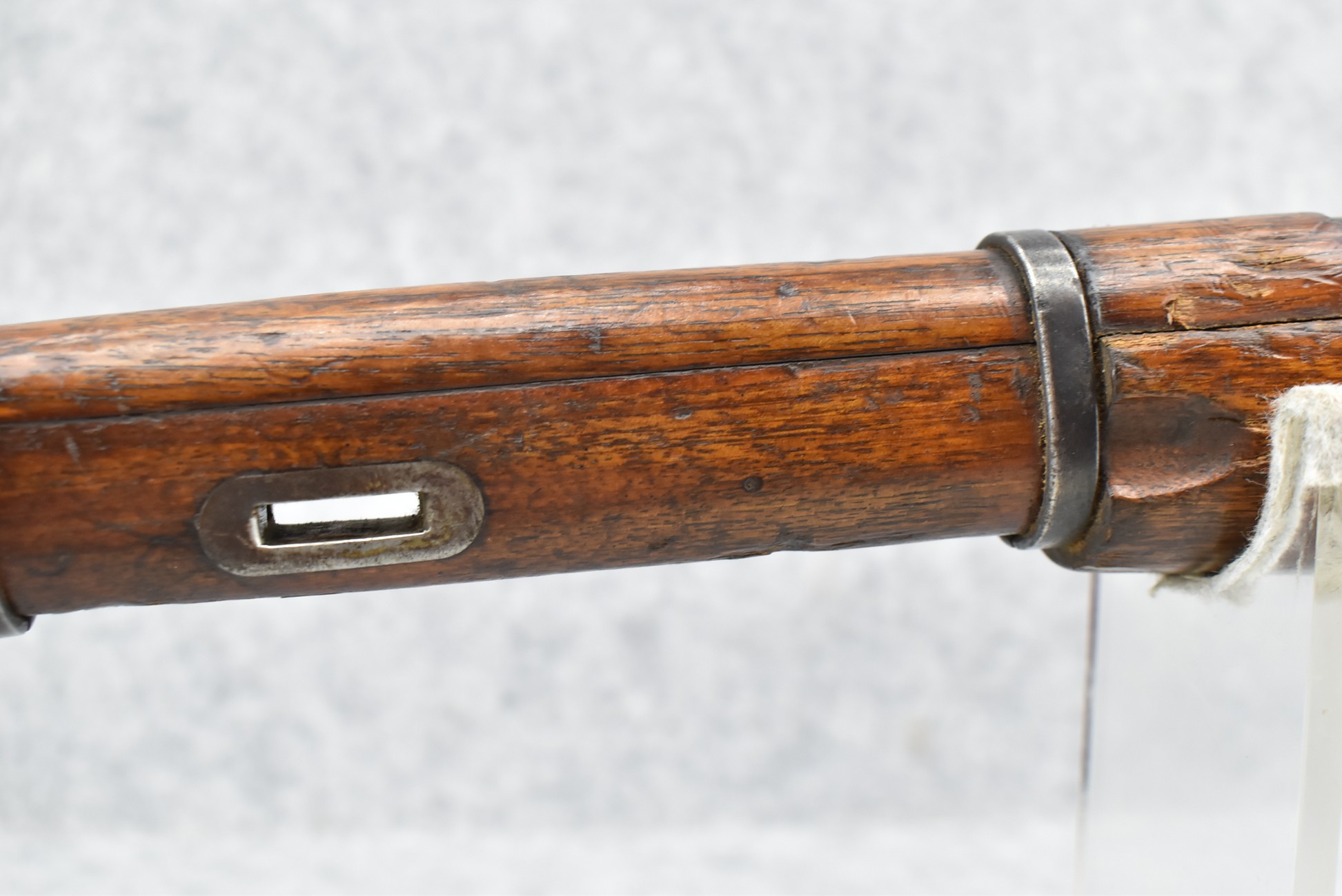 484R.     Chinese – Type 53 Carbine – 7.62×54 Cal. Bolt Action Rifle – w/20 ½” Barrel w/Hooded Front & Adj. Rear Sights – Military Finish – w/Straight Grip Wood Stocks w/Metal Butt Plate – w/Folding Spike Bayonet – Dated 1955