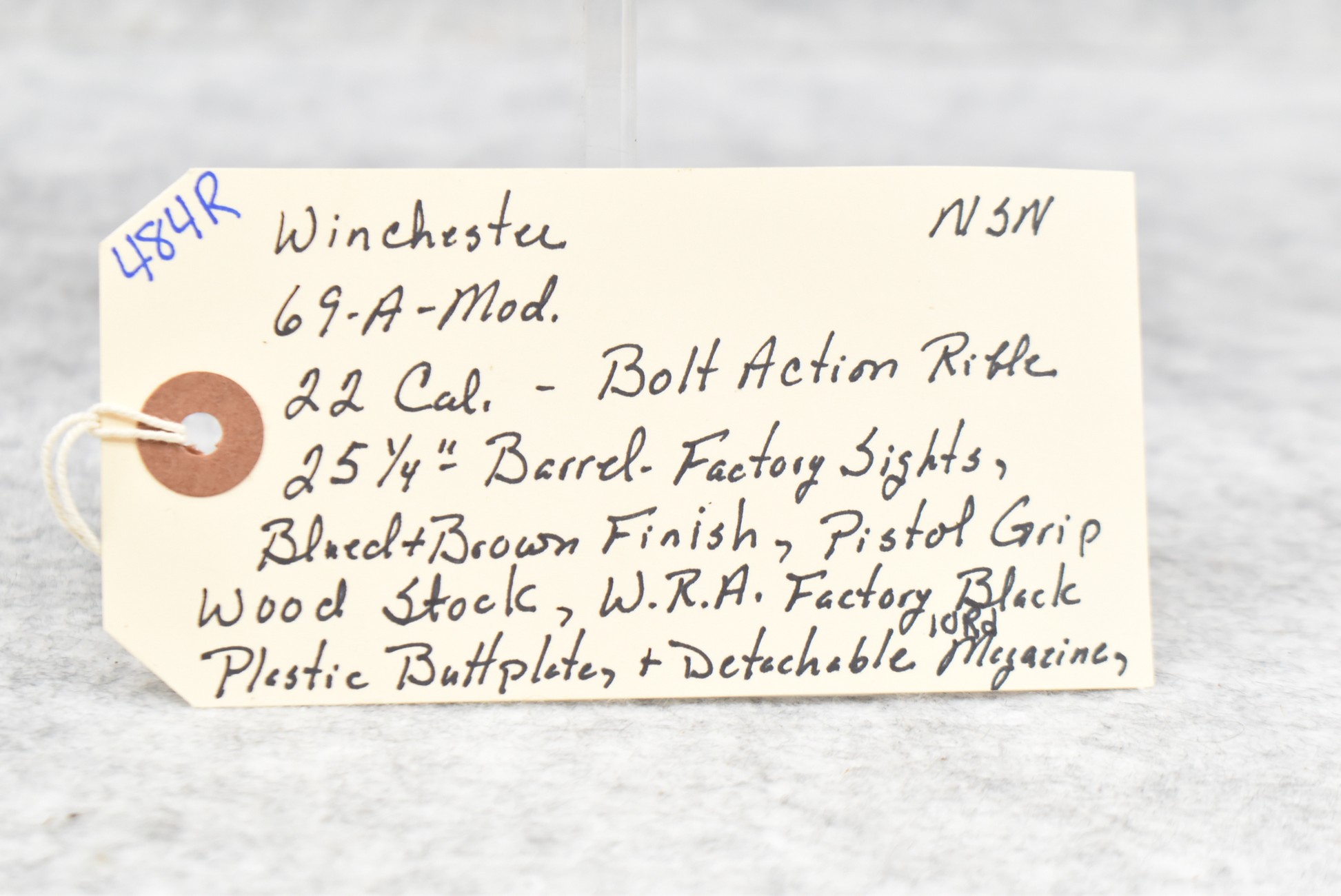 484R. Winchester – Mod. 69-A – 22 Cal. Bolt Action Rifle – w/25 ¼” Barrel w/Factory Sights – Blued/Brown Finish – w/Pistol Grip Wood Stock w/Factory Butt Plate – w/Detachable 10Rd Magazine