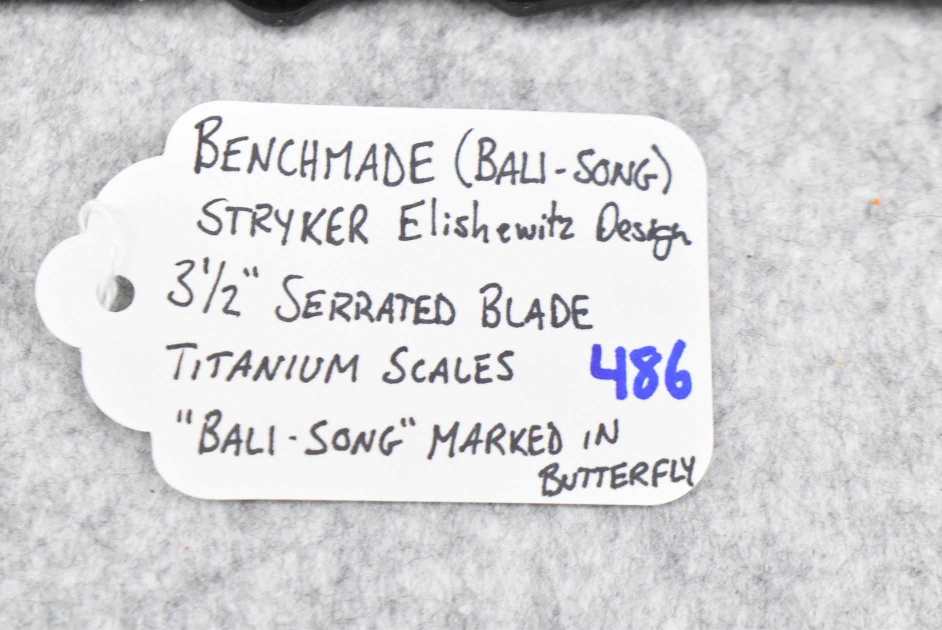 486. Benchmade – (Bali-Song) Stryker Elishewitz Design Folding Knife – w/3 ½” Serrated Blade – w/Titanium Scales – “Bali-Song” Marked in Butterfly