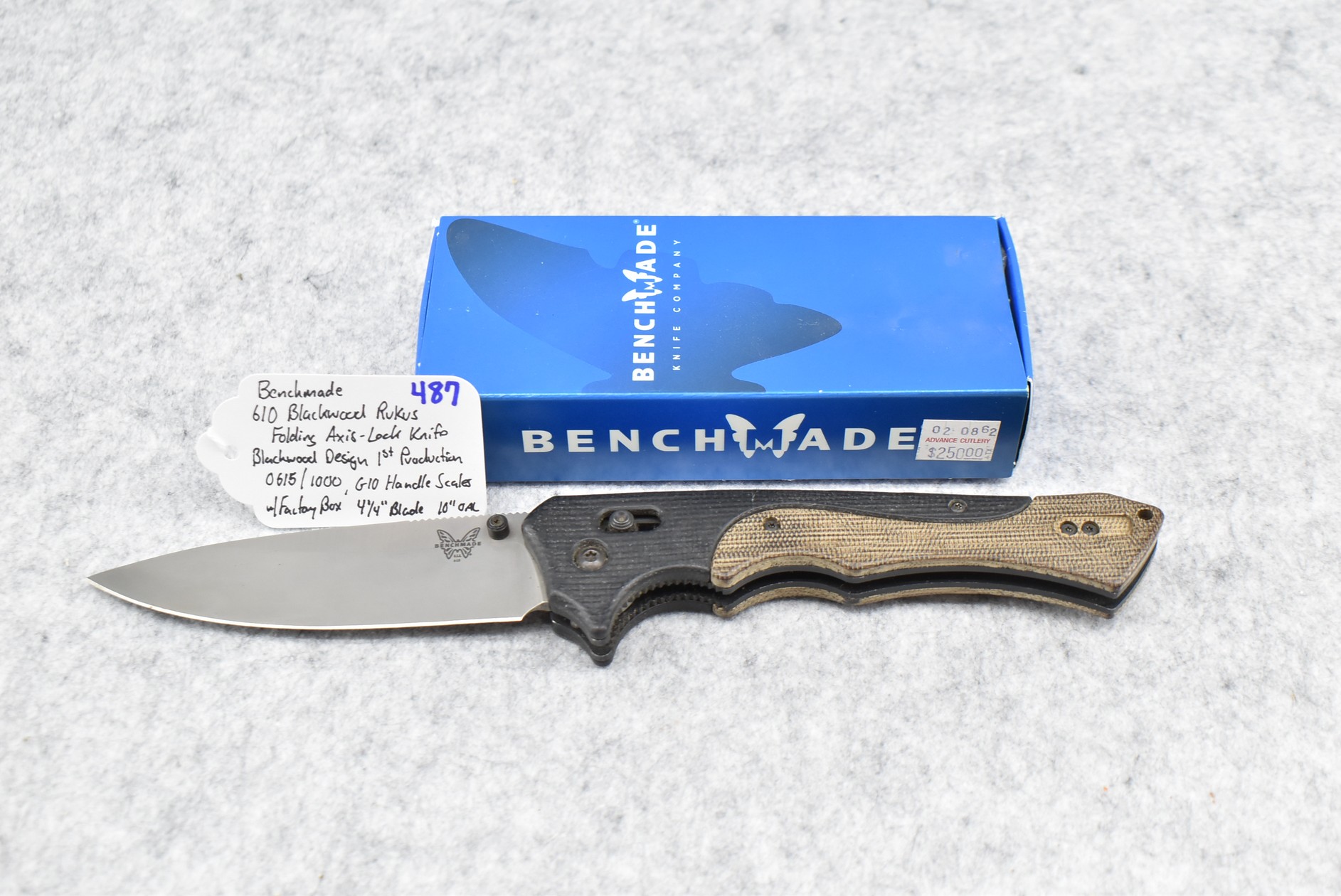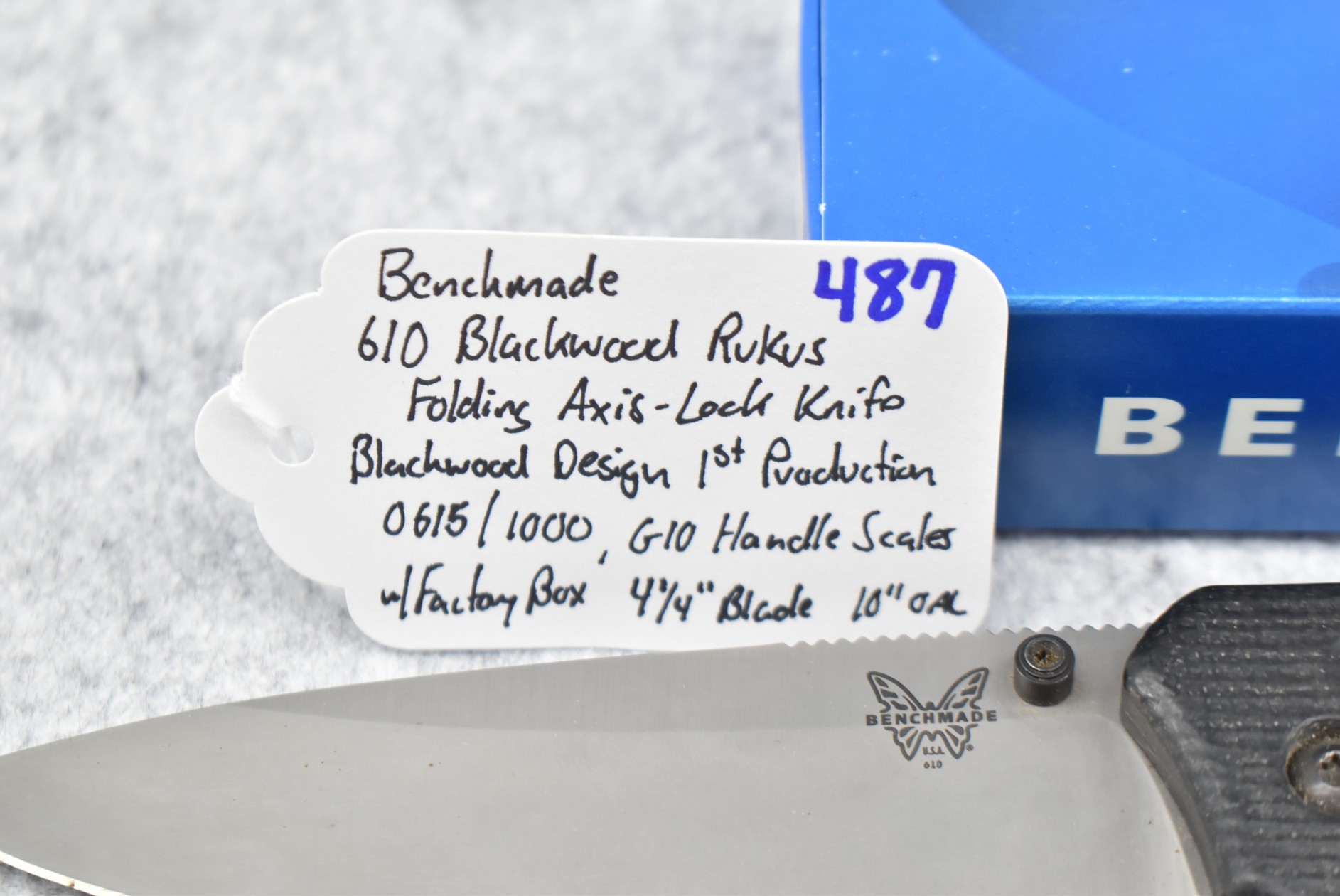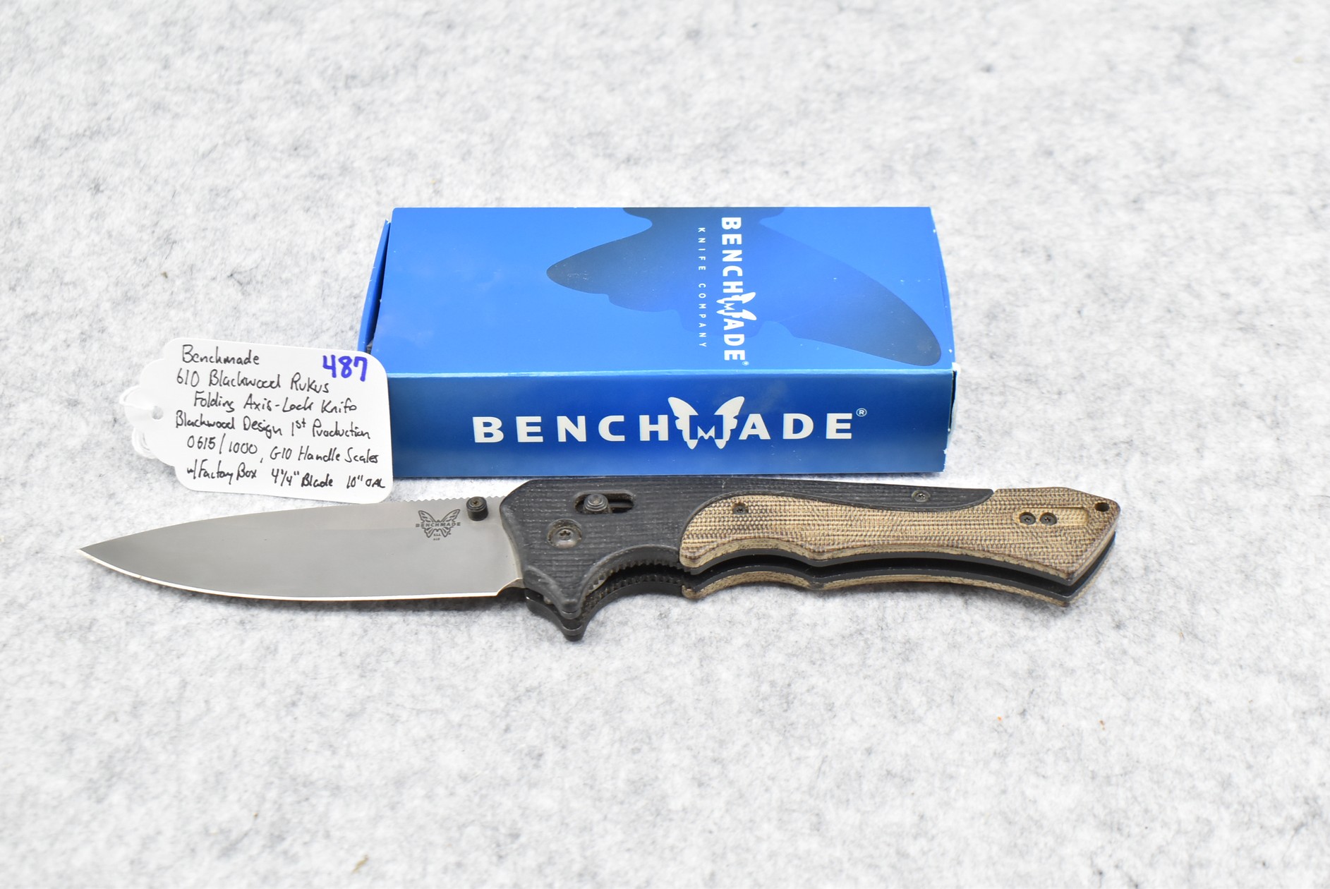 487. Benchmade – #10 Blackwook Rukus Folding Axis Lock Blackwood Design First Production Run #0615/1000 Knife w/4 ¼” Blade – 10” Overall Length – w/G10 Handle Scales – w/Factory Box