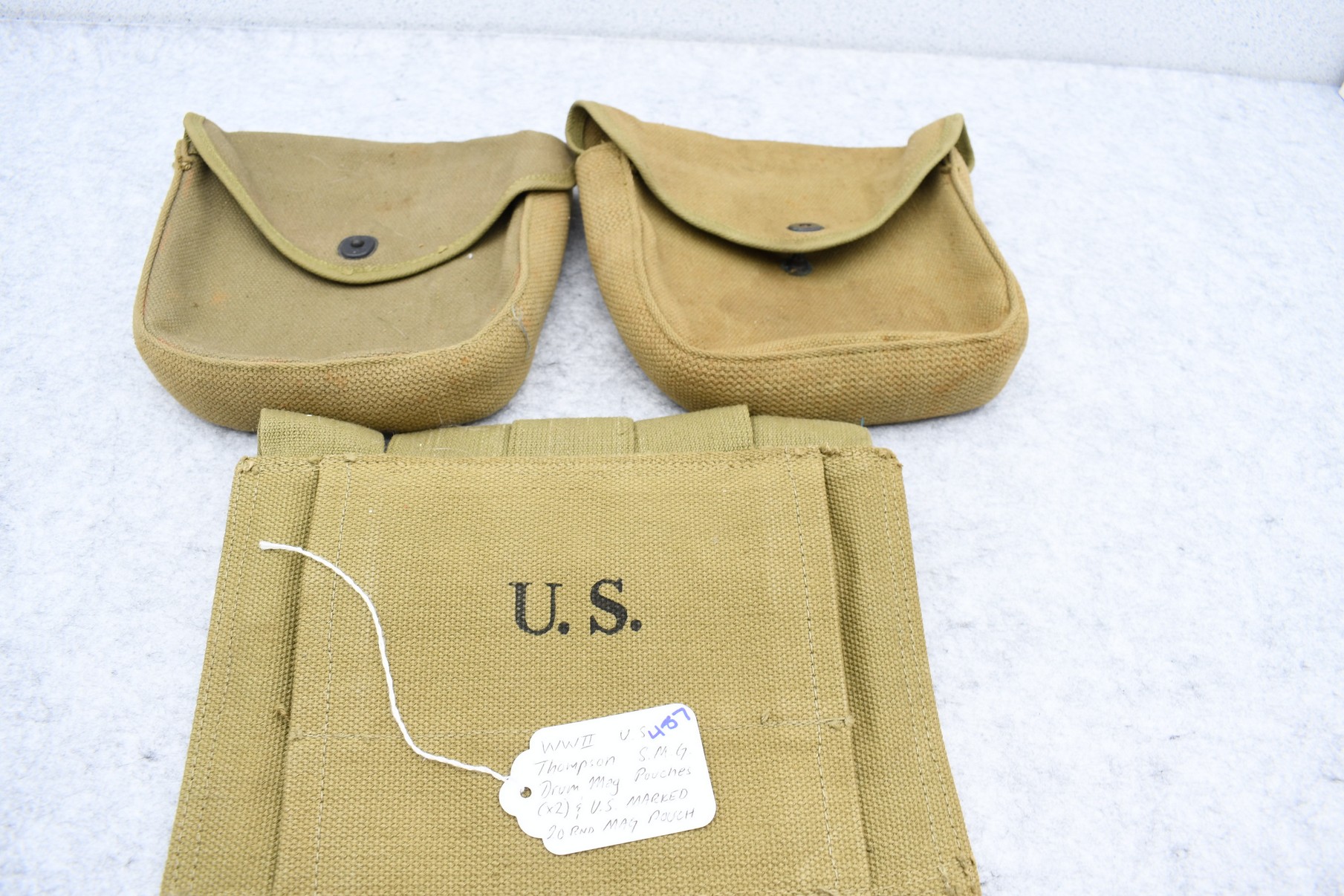 487. Pair of WWII U.S. Thompson S.M.G. Drum Magazine Pouches and U.S. Marked 20-Round Magazine Pouch