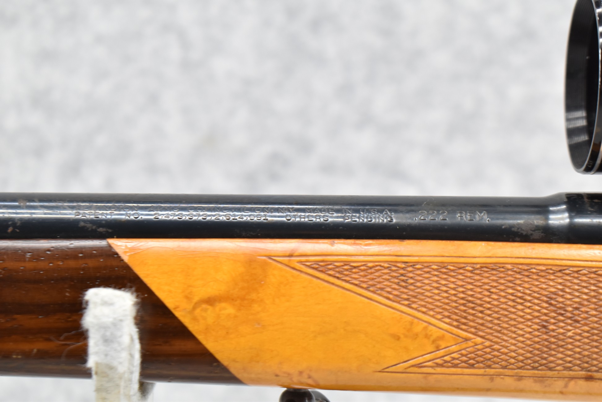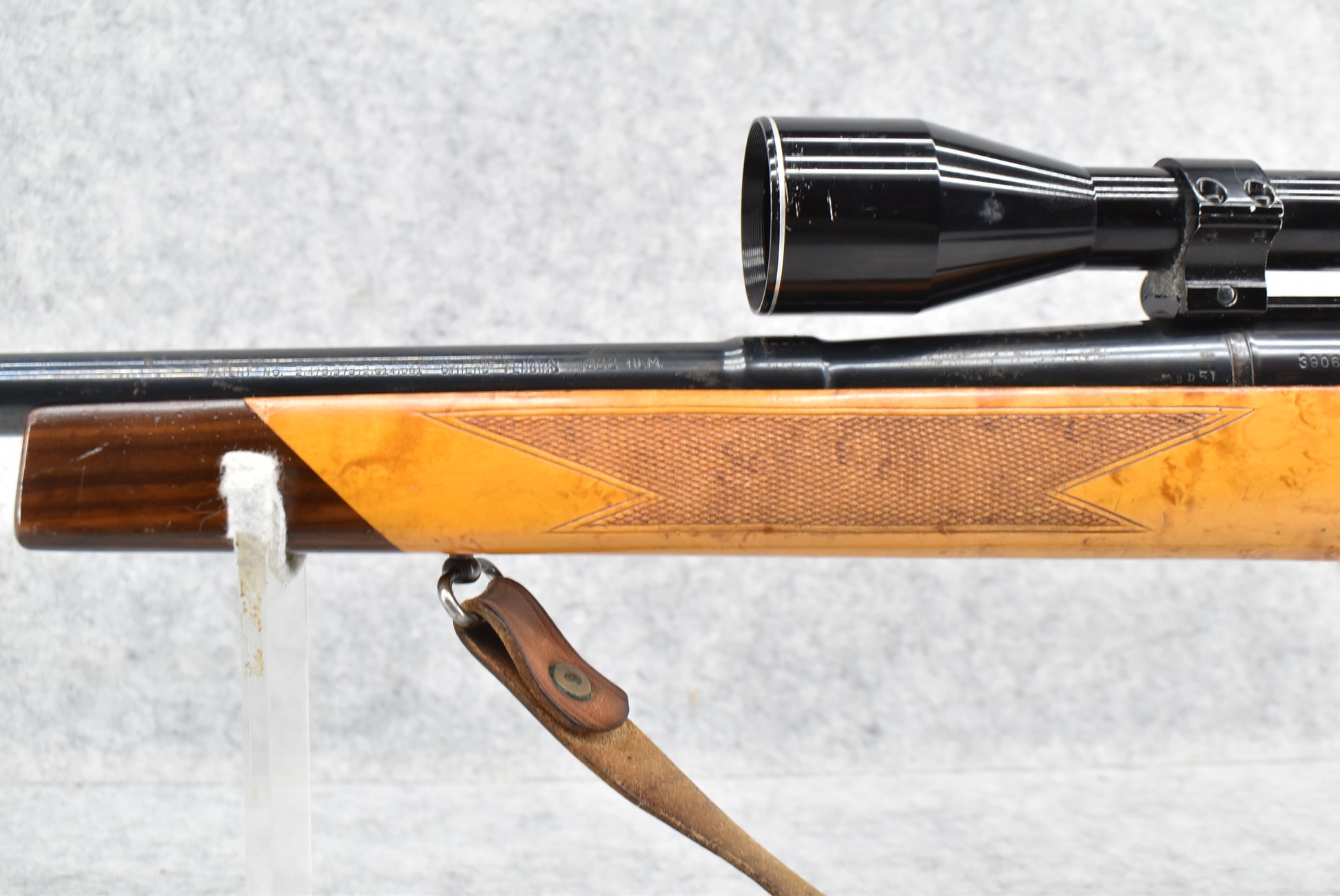 488R. Remington – Mod. 700 – 222 Rem. Cal. Bolt Action Rifle – w/24” Barrel (No Sights) – Blued/Brown Finish – w/Fajen Custom Checkered Walnut Capped Pistol Grip Birds Eye Maple Wood Stock w/Raised Cheek Piece w/Fajen Butt Plate – w/Leather Sling – w/Valor 10x40mm Scope & Mounts – Note: Condition Issues