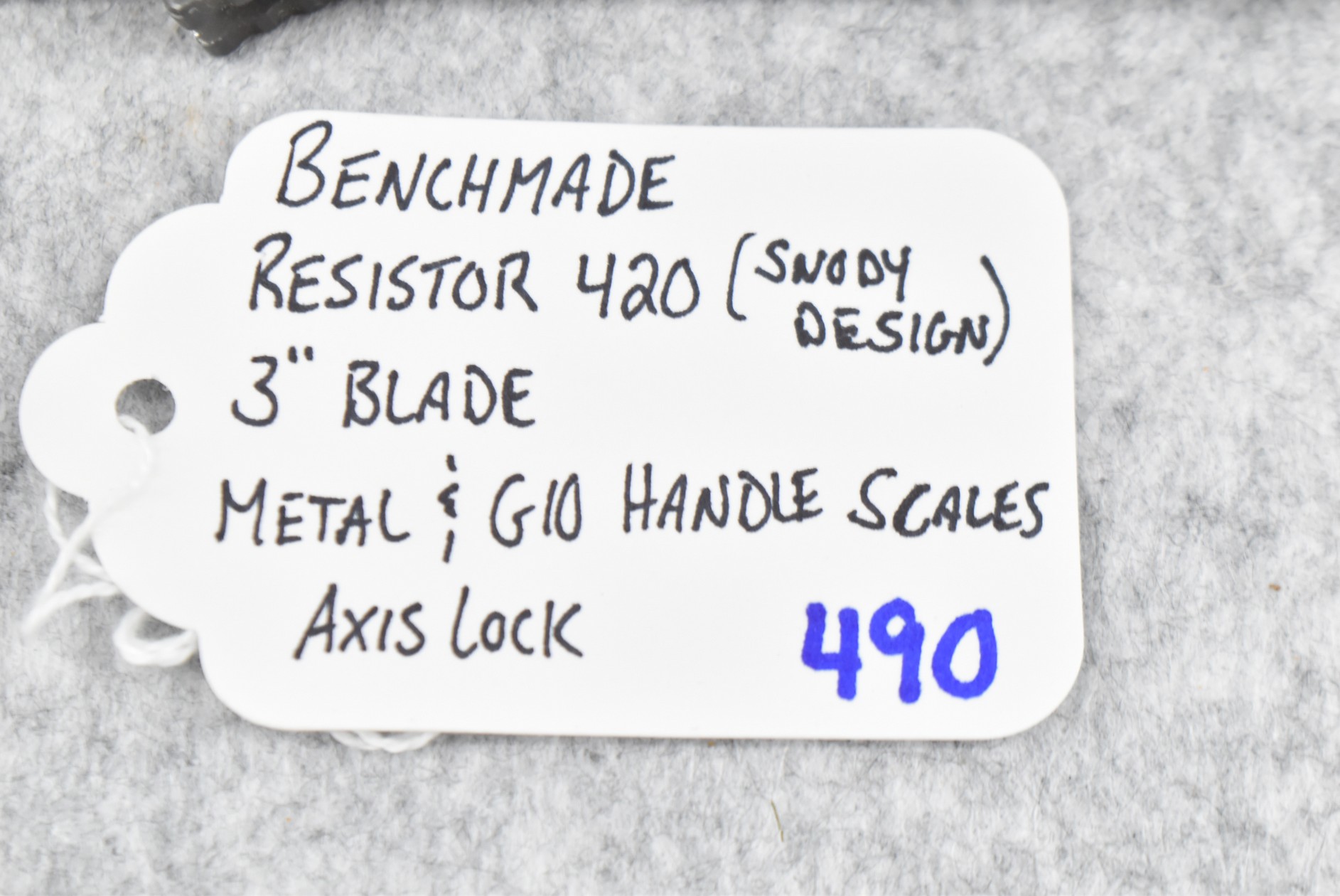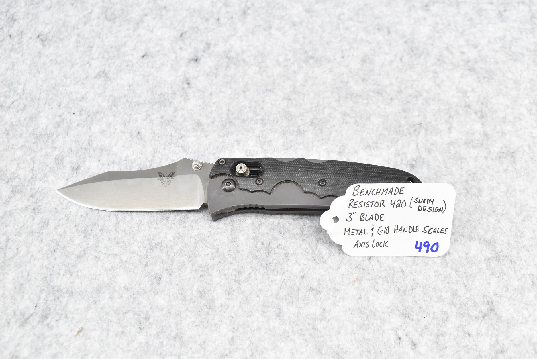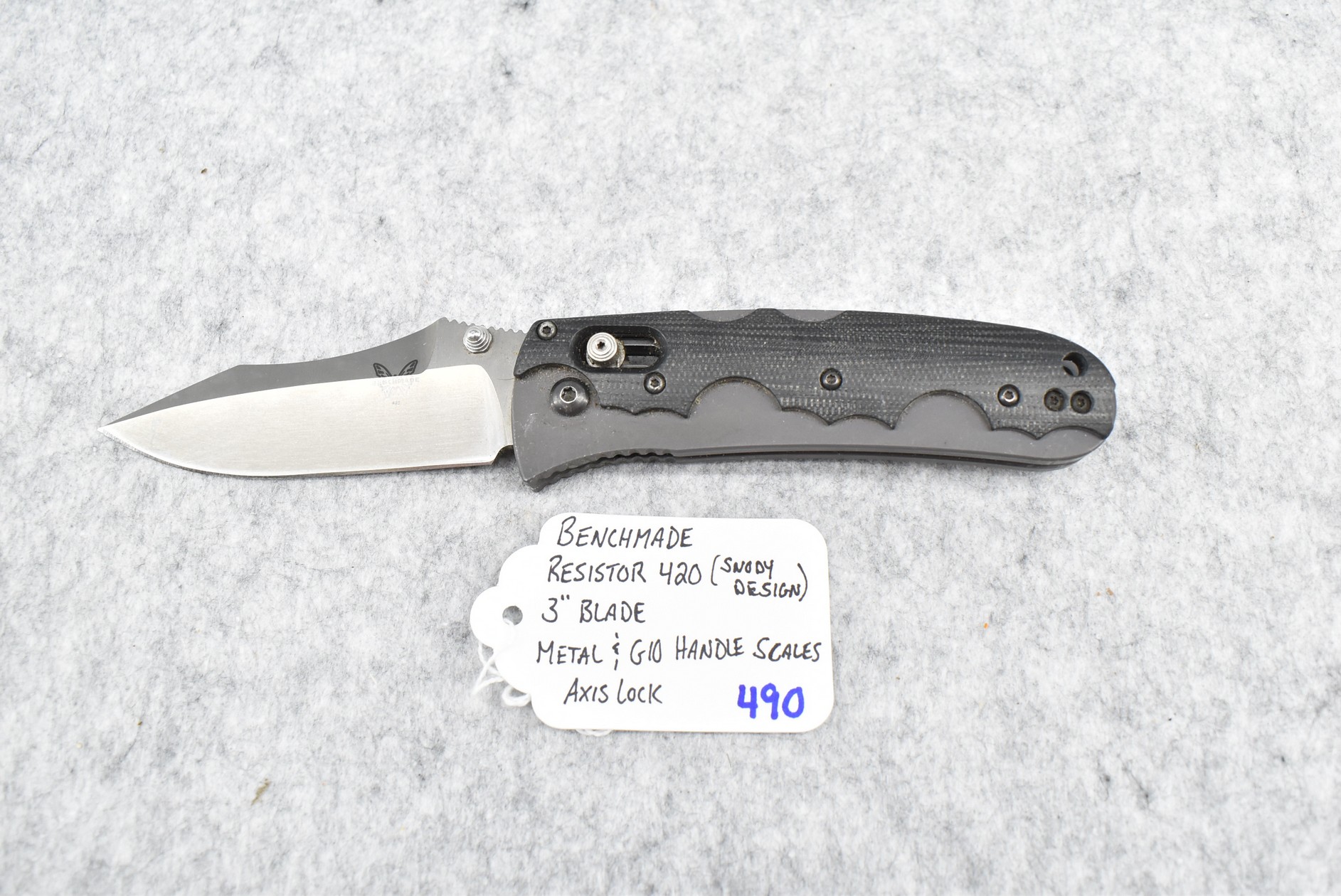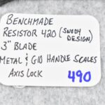 490. Benchmade – Resistor 420 (Snody Design) Folding Knife – w/3” Blade – w/Axis Lock – w/Metal & G10 Handle Scales