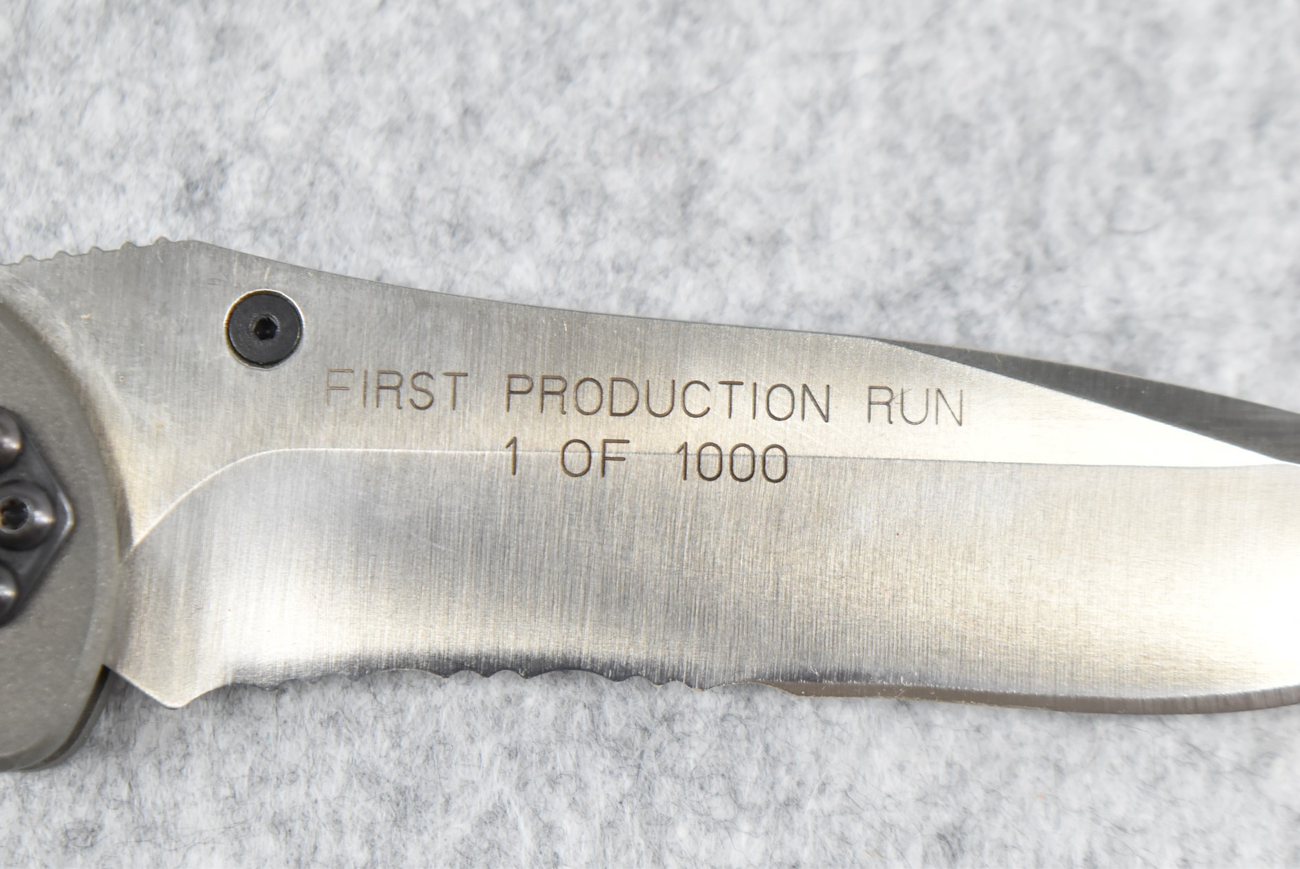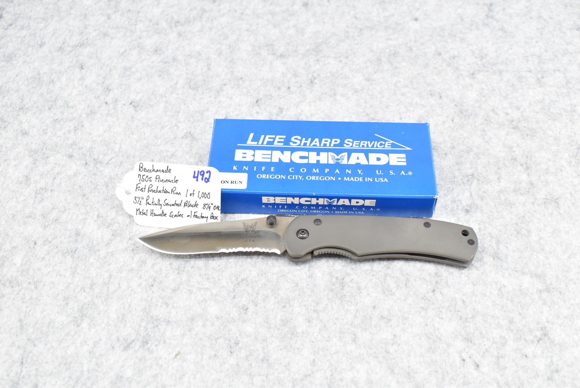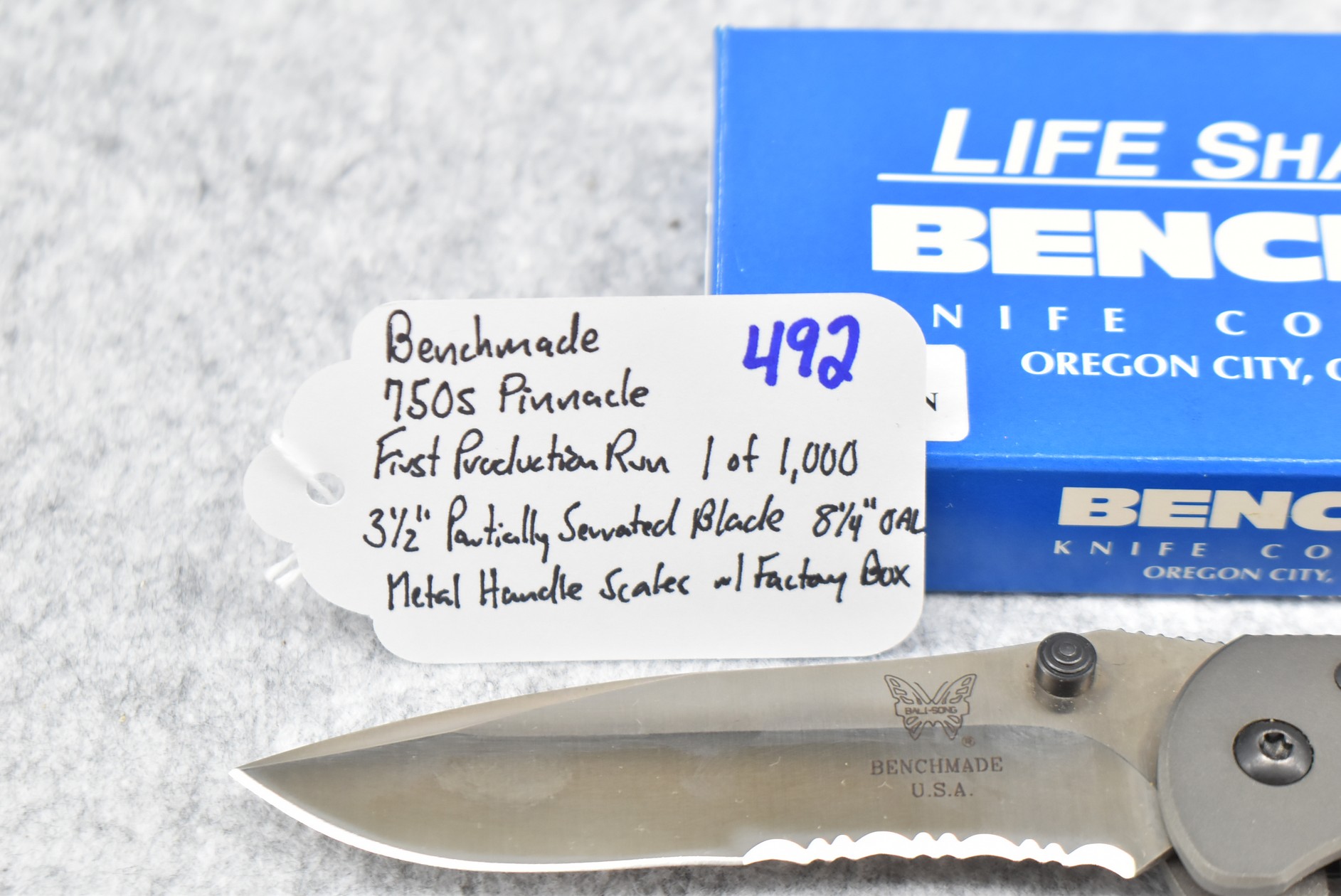 492. Benchmade – #750S Pinnacle First Production Run 1 of 1,000 Folding Knife – w/3 ½” Partially Serrated Blade – 8 ¼” Overall Length – w/Metal Handle Scales – w/Factory Box