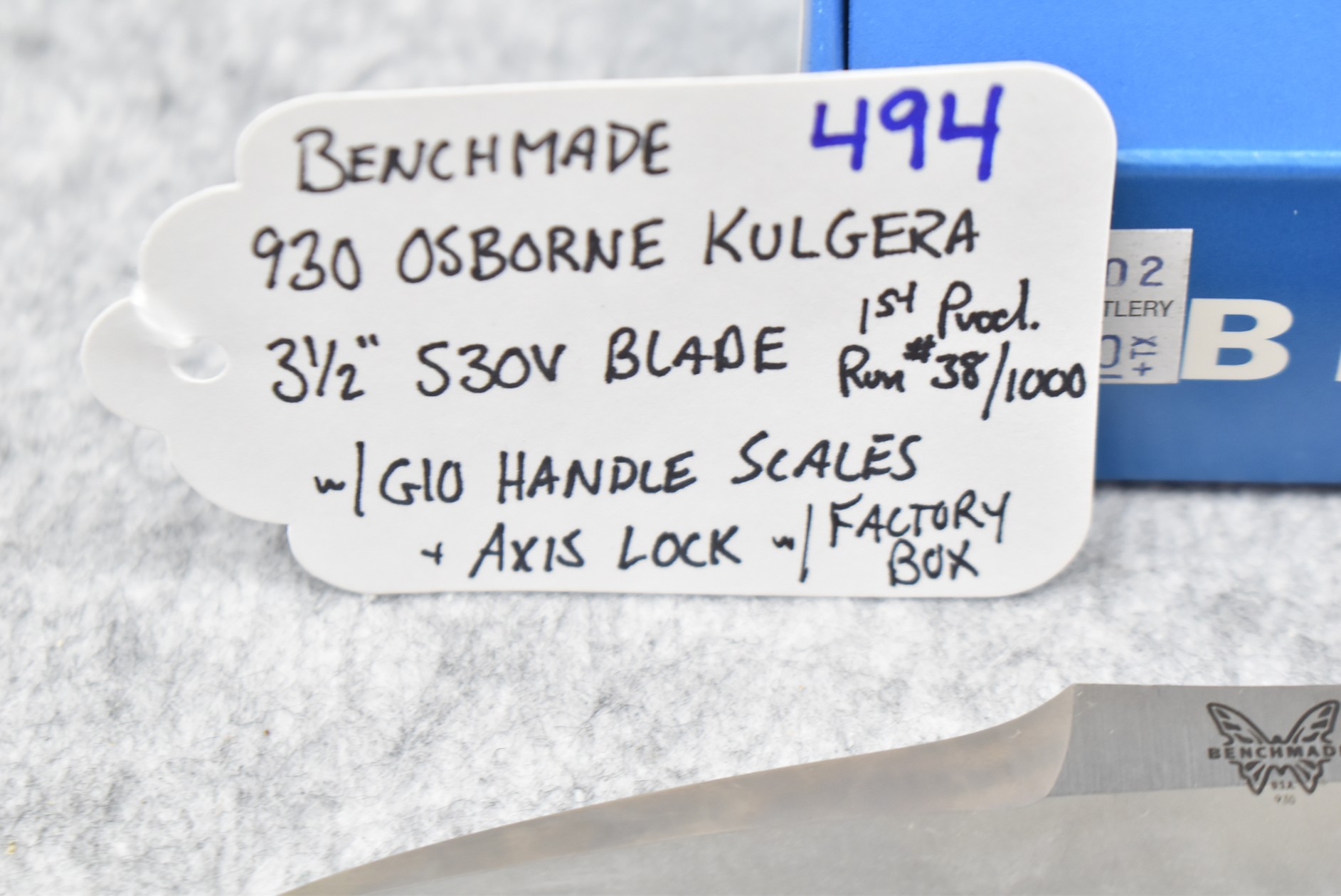 494. Benchmade – #930 Osborne Kulgera First Production Run #38/1000 – w/3 ½” S30V Blade – w/Axis Lock – w/G10 Handle Scales – w/Factory Box