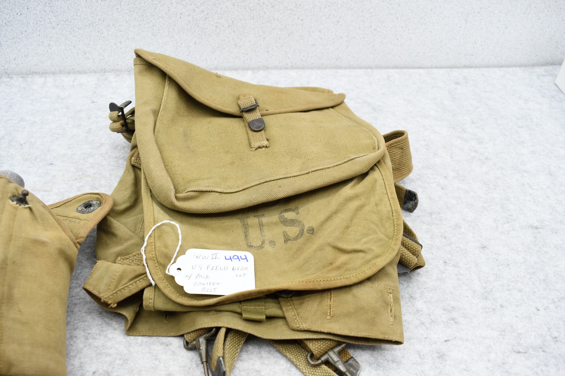 494. WWII U.S. Field Gear Lot w/Pack, Canteen, and Belt