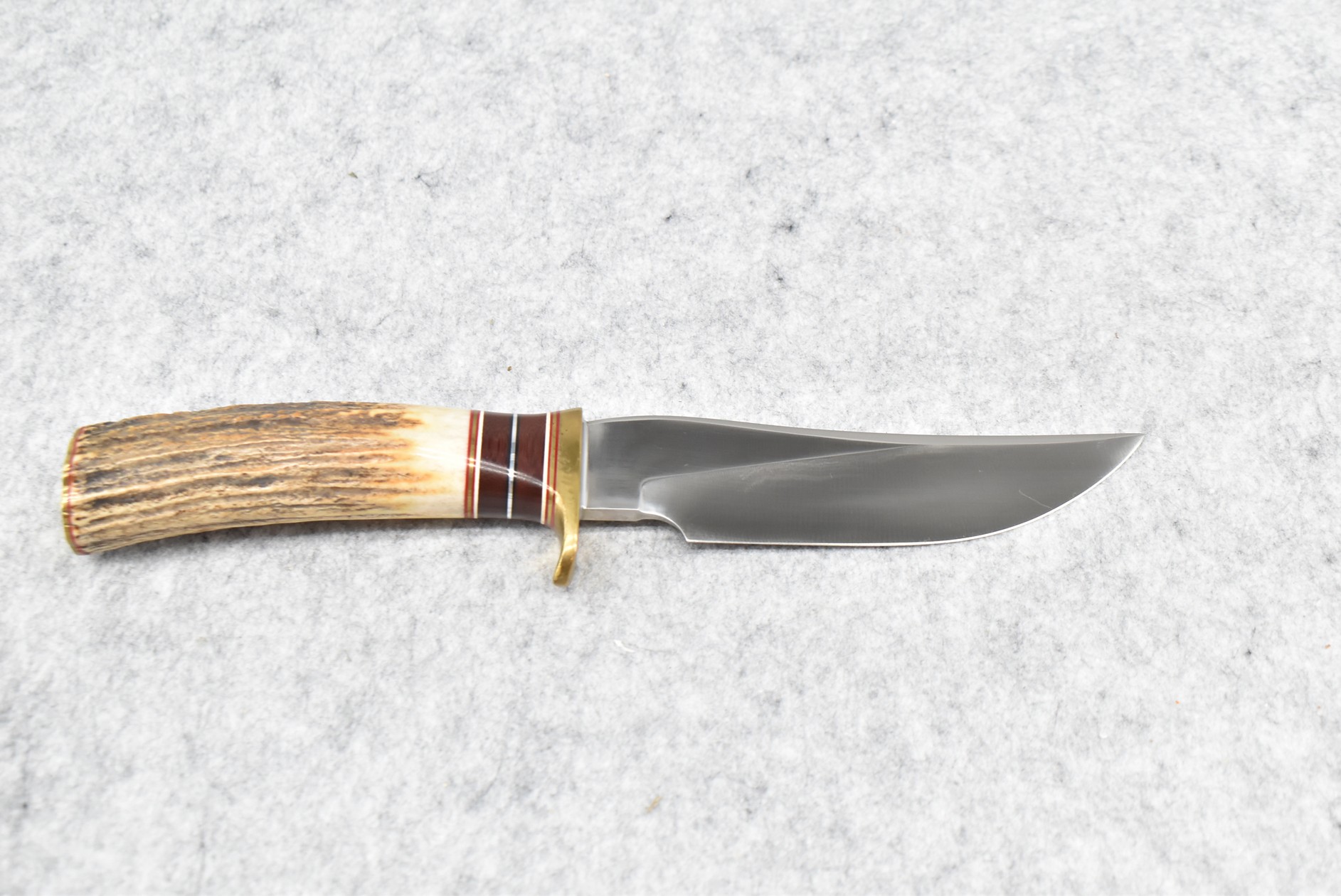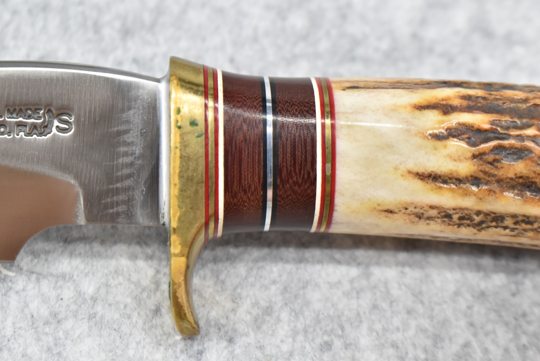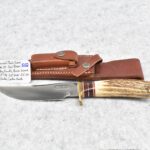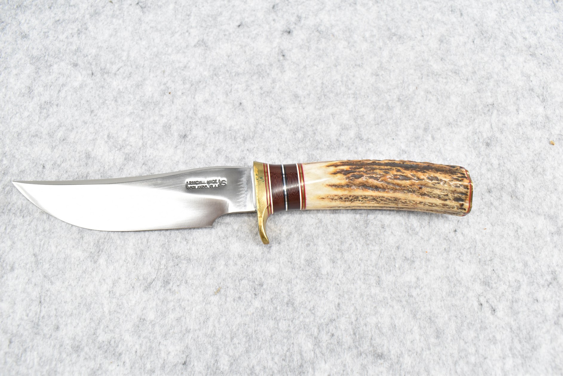 502. Randall Made Knives – Model 27 Trail Blazer – w/5 ½” Blade – 10 ½” Overall Length – w/Stang Handle – w/Brass Guard & Butt Cap – w/Factory Leather Sheath