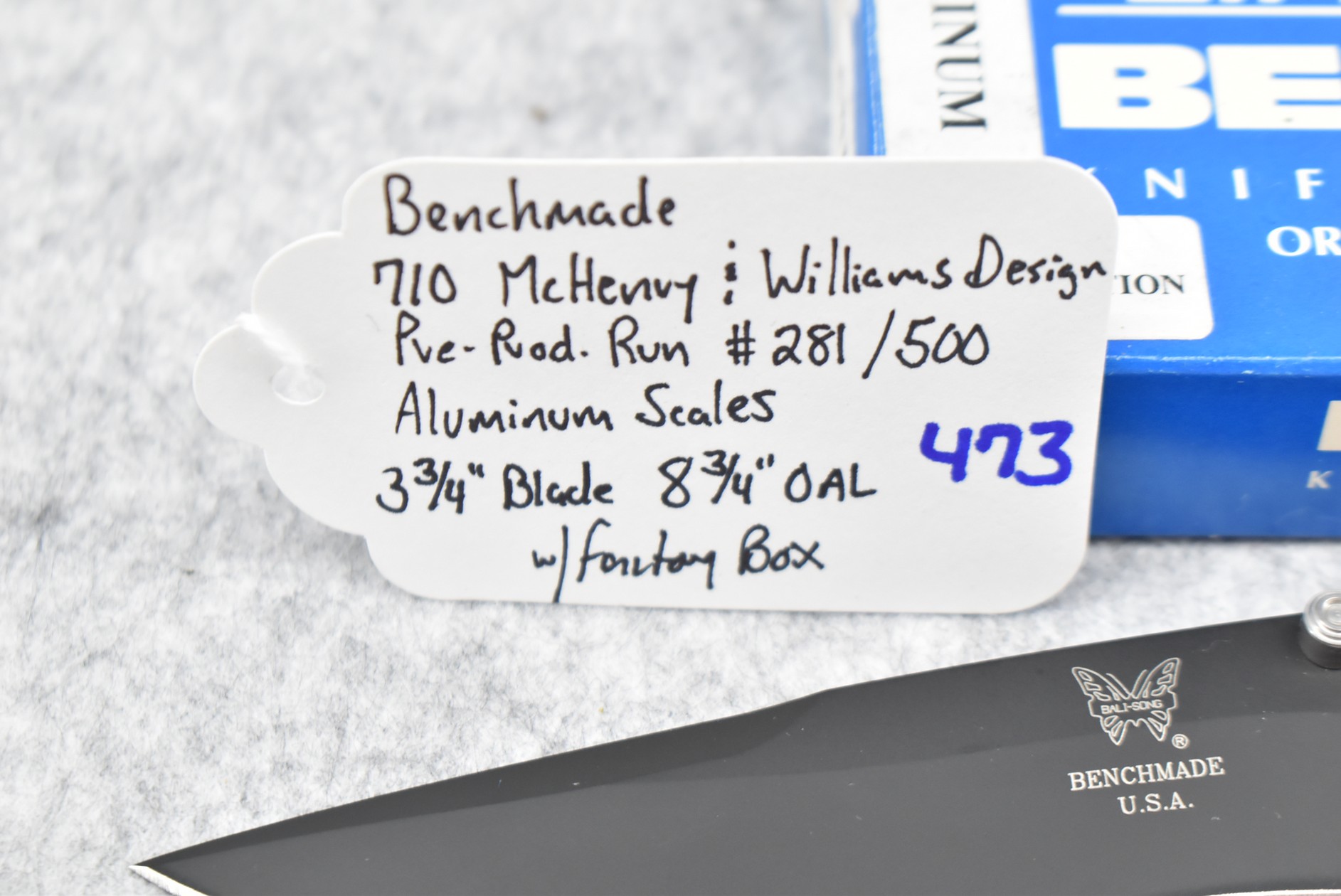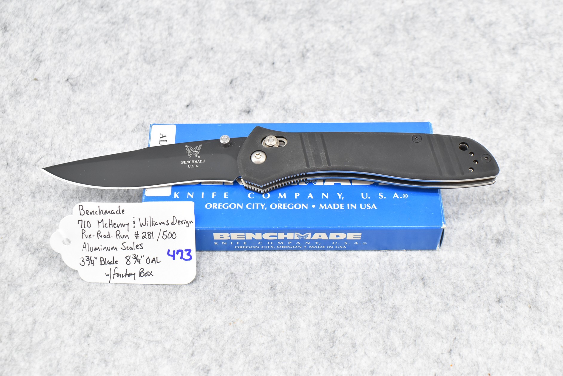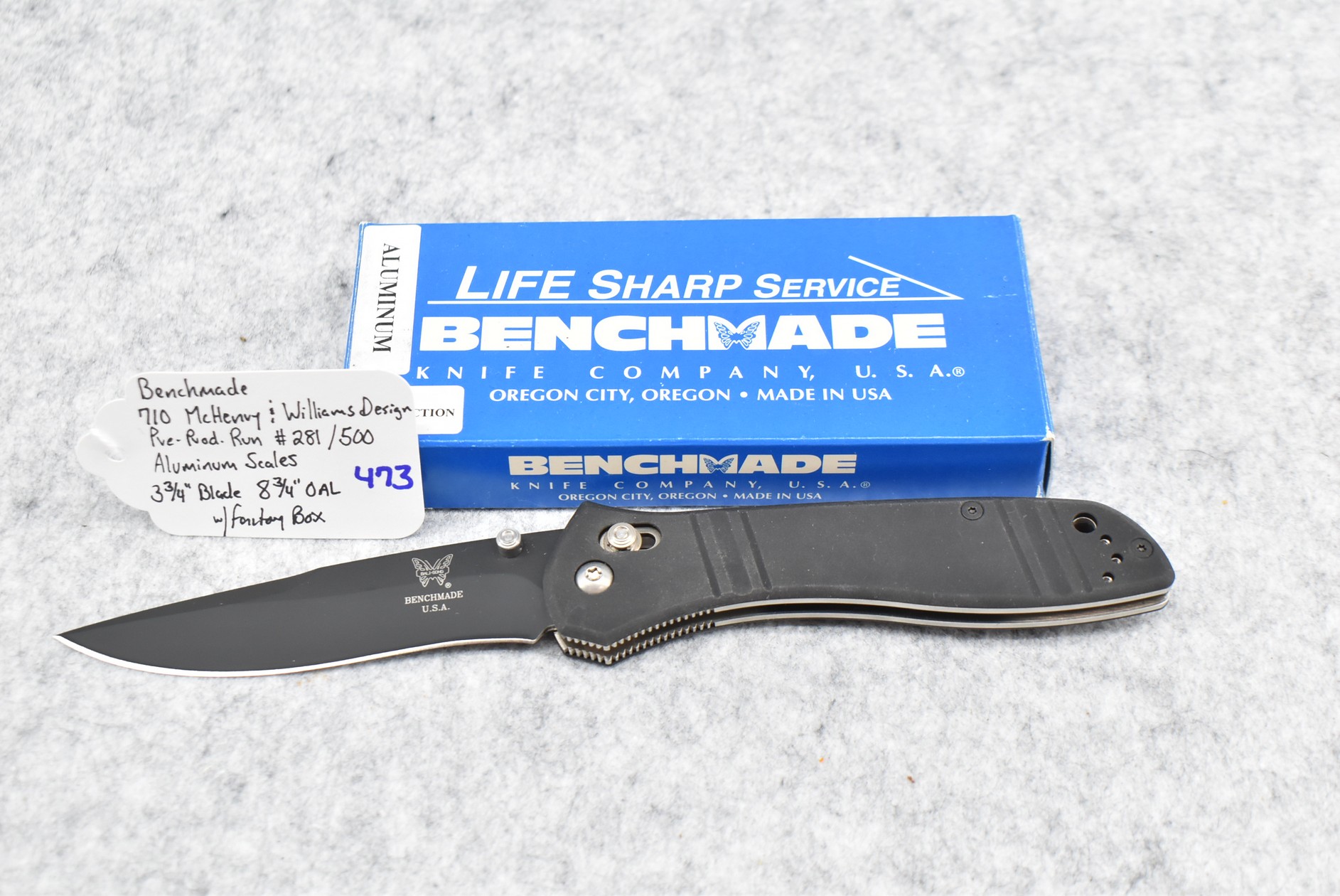 473. Benchmade – #710 McHenry & Williams Design Pre-Production Run #281/500 Folding Knife – w/3 ¾” Blade – 8 ¾” Overall Length – w/Aluminum Scales – w/Factory Box