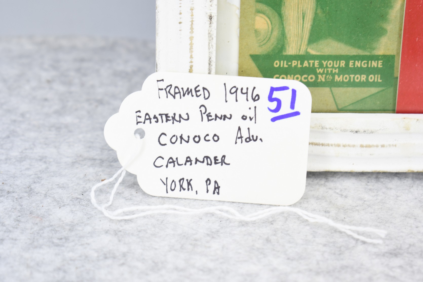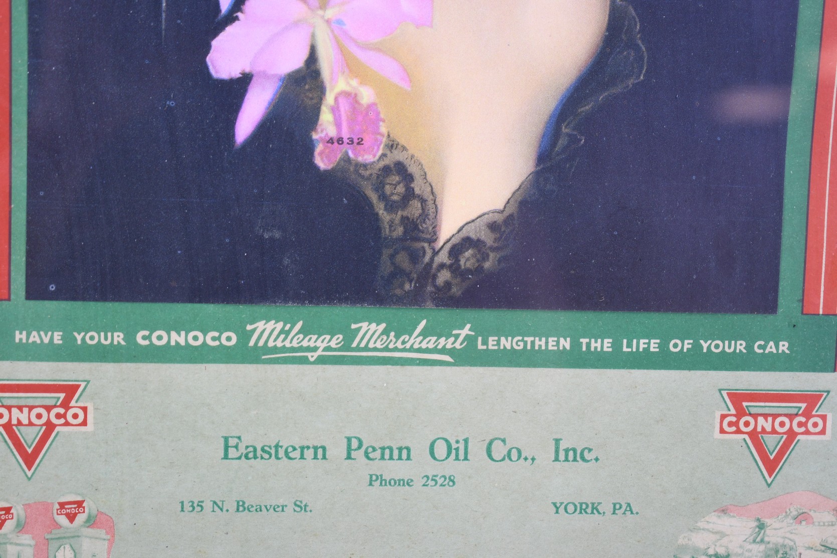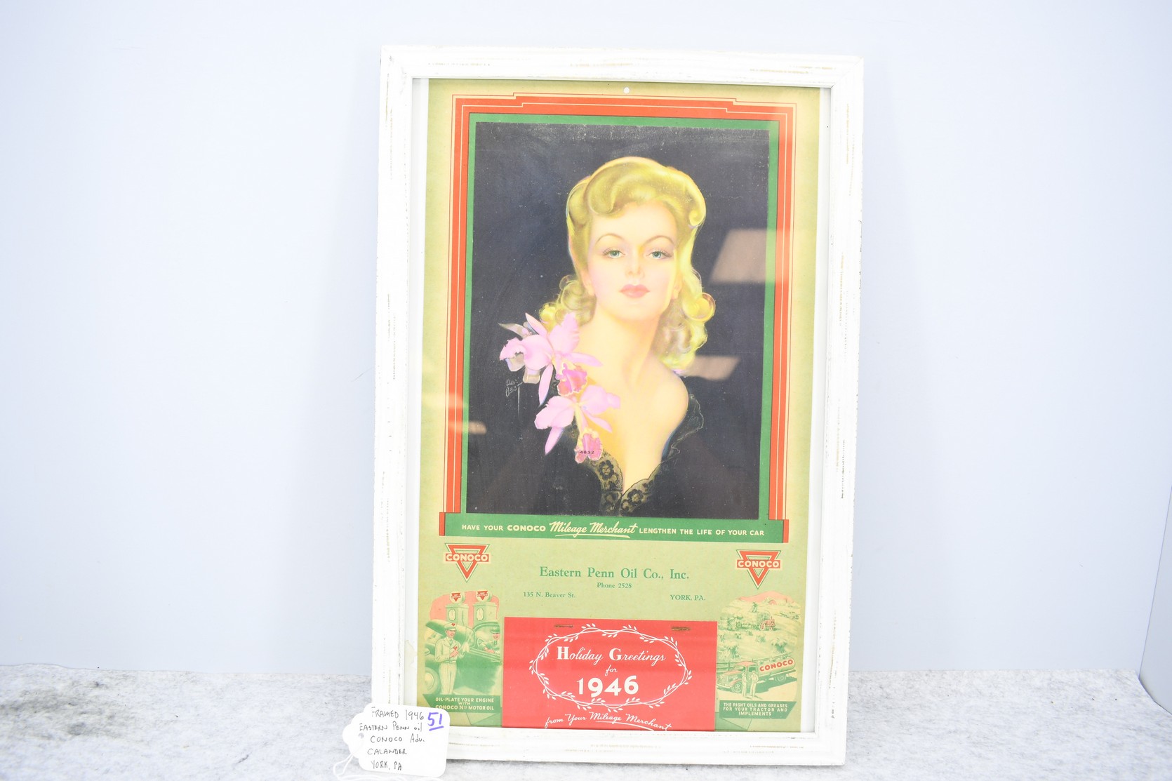 51. 1946 Eastern Penn Oil Co. Inc. York PA Framed Holiday Greeting Calendar – Conoco “Your Milage Merchant” – Calander Appears to be Complete – Measures 12” x 18”
