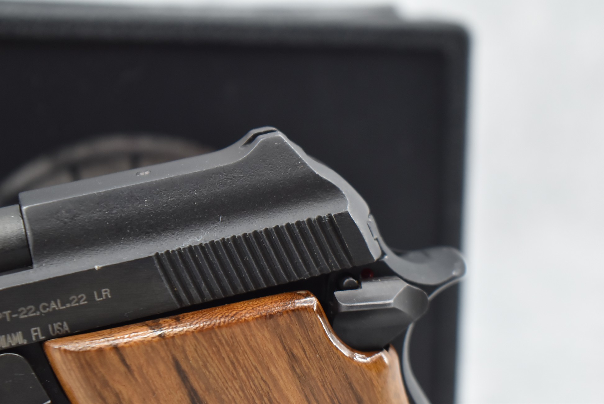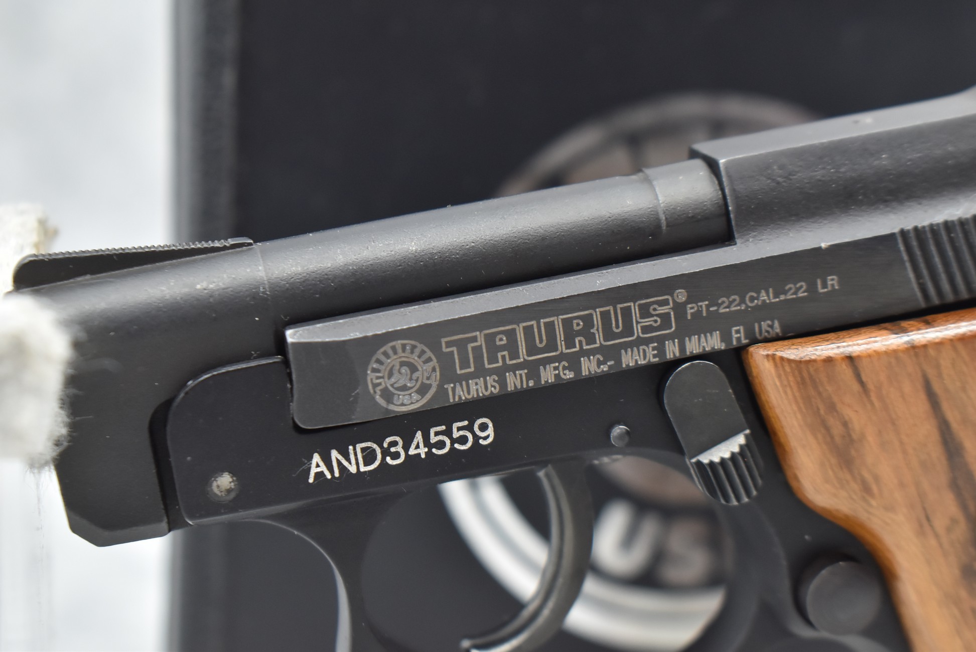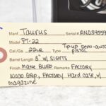 510R. Taurus – Mod. PT-22 – 22LR Cal. Semi-Auto Pistol – w/3” Barrel w/Sights – Matte Blued Finish – w/Factory Wood Grip – w/Factory Case w/Magazine