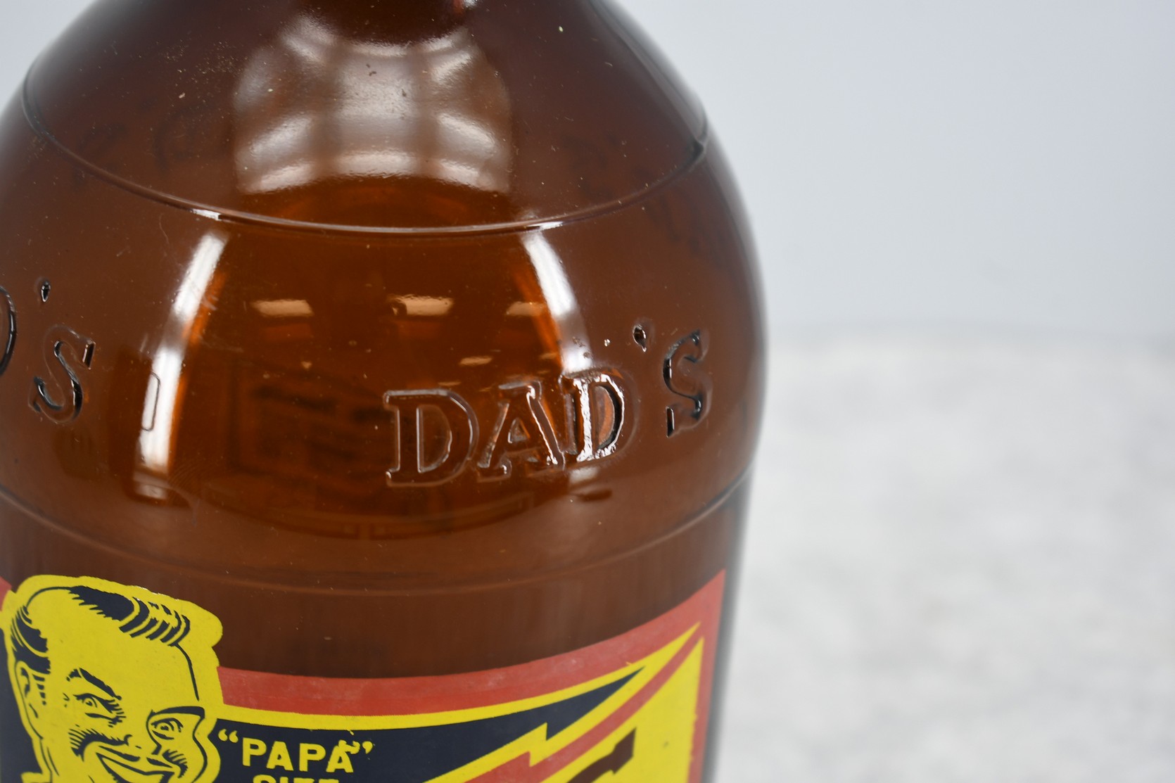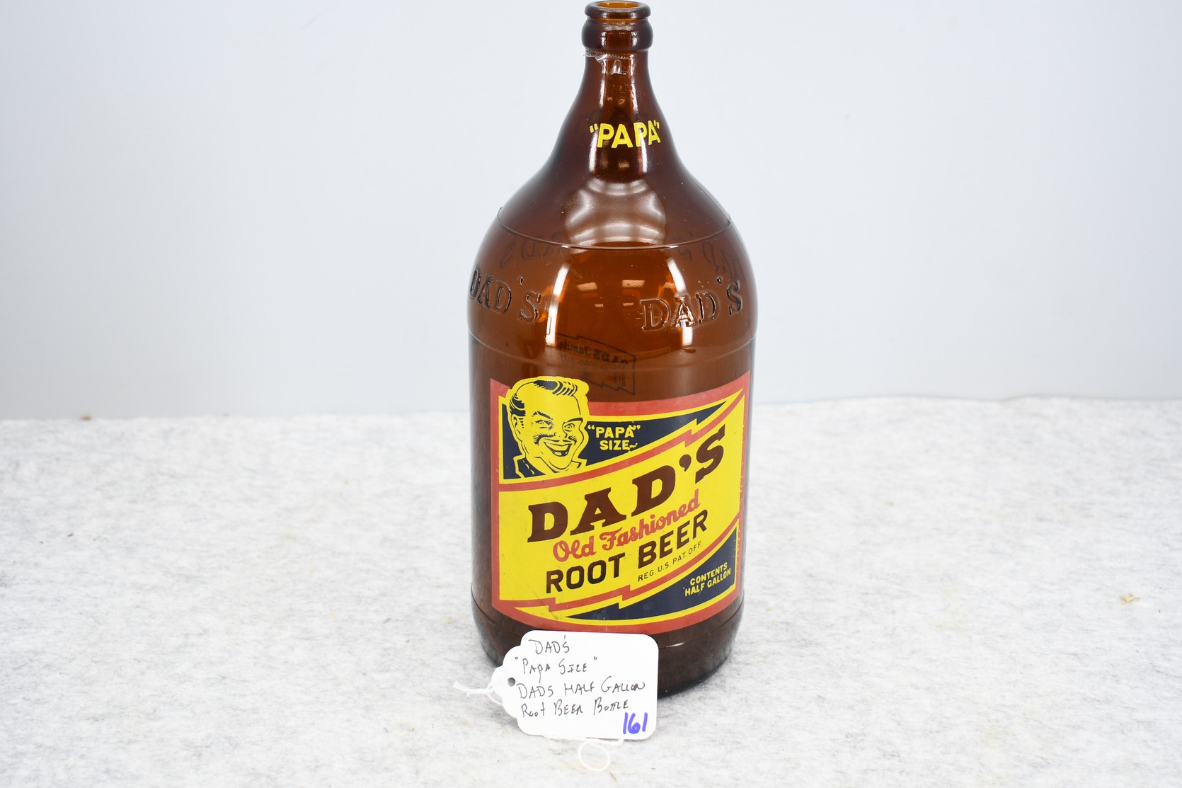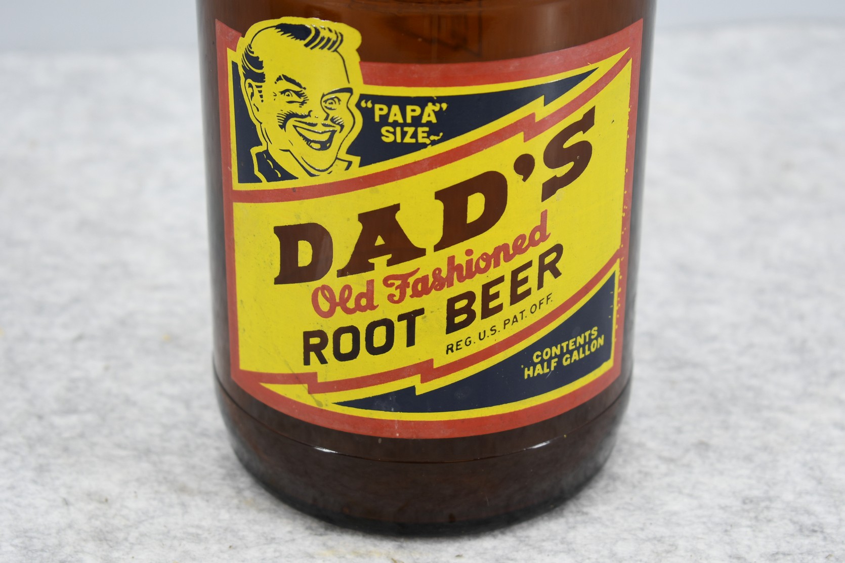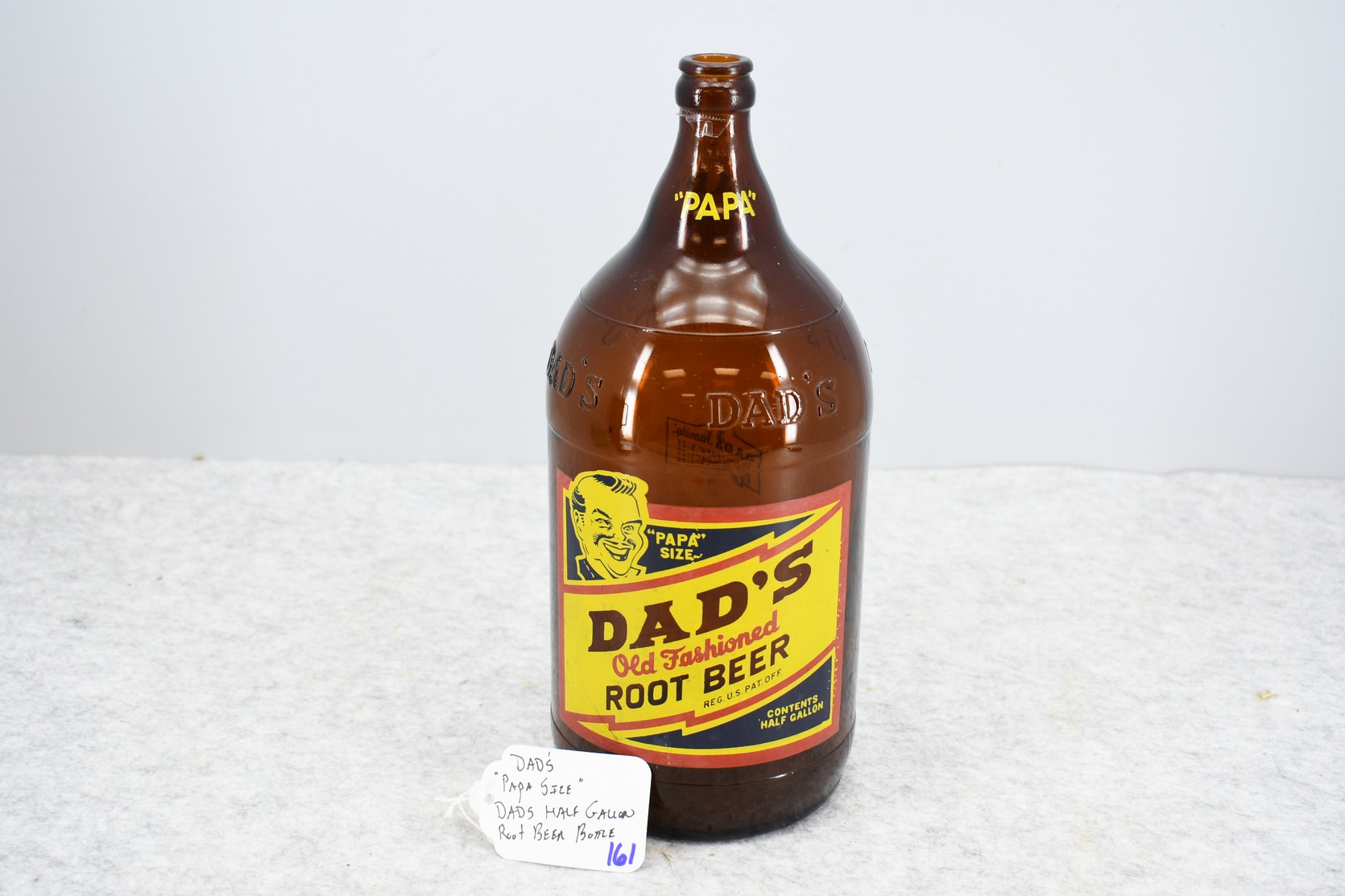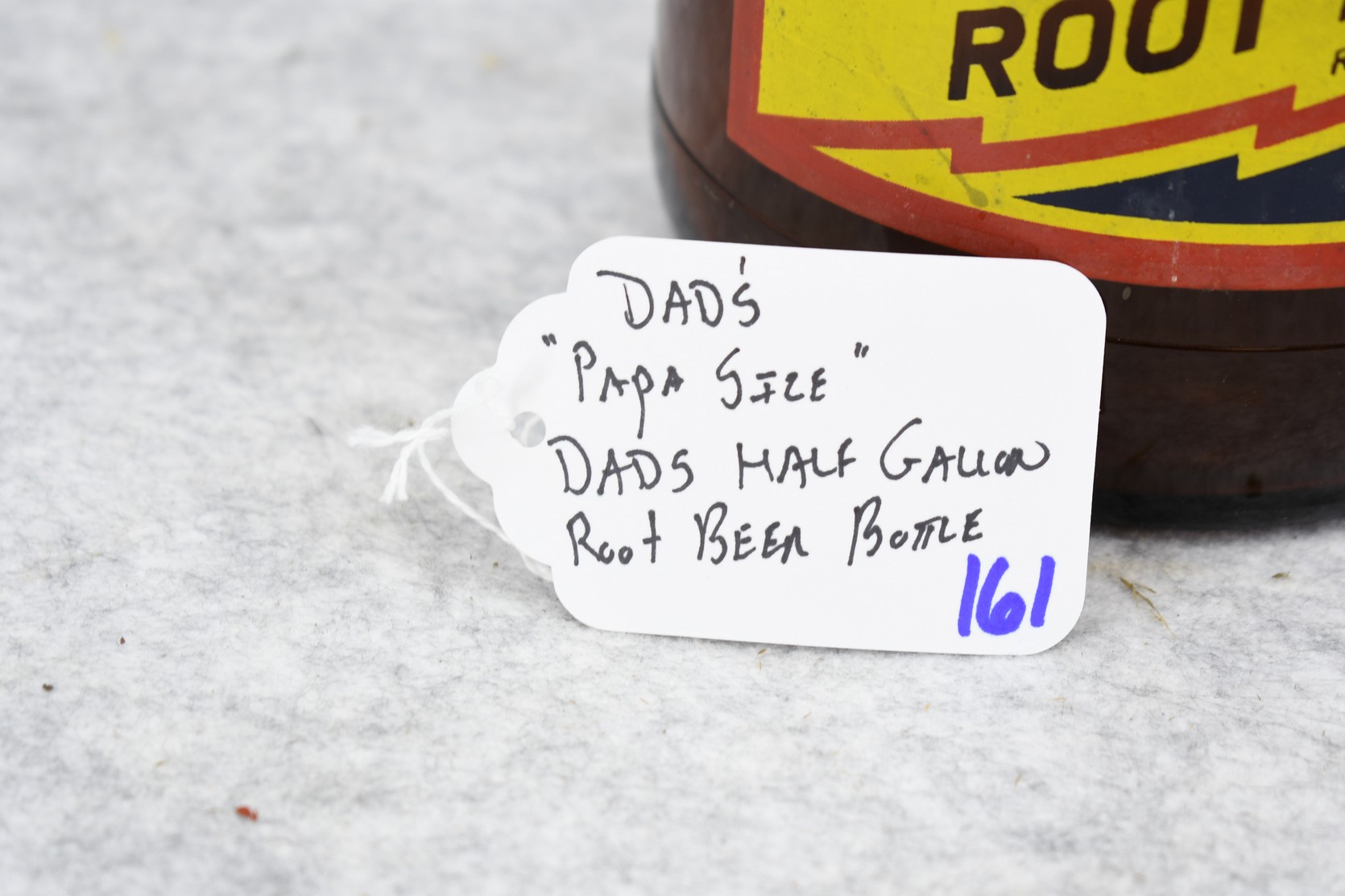161. Dad’s “Papa Size” Half Gallon Old Fashioned Root Beer Bottle w/Very Good Original Label