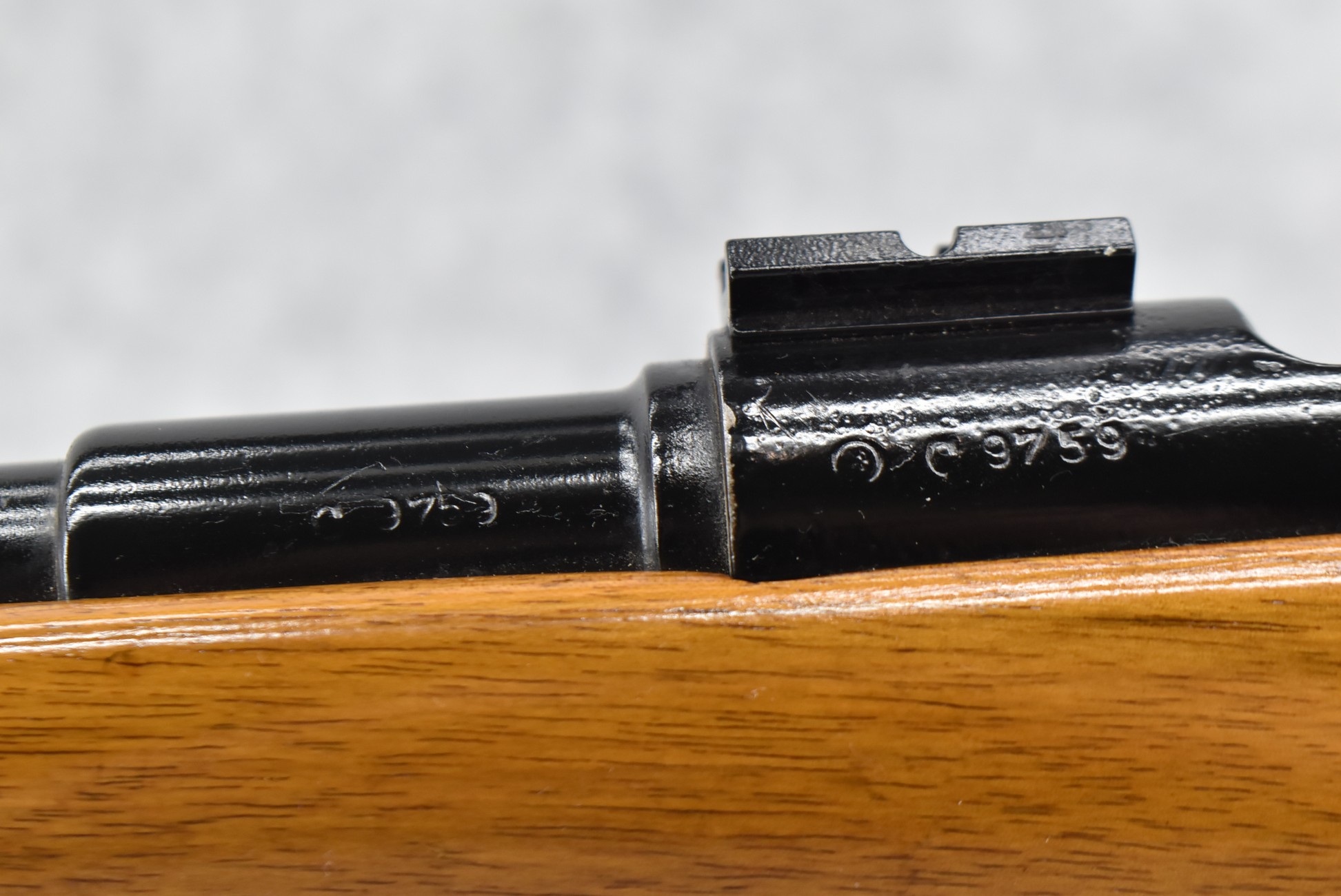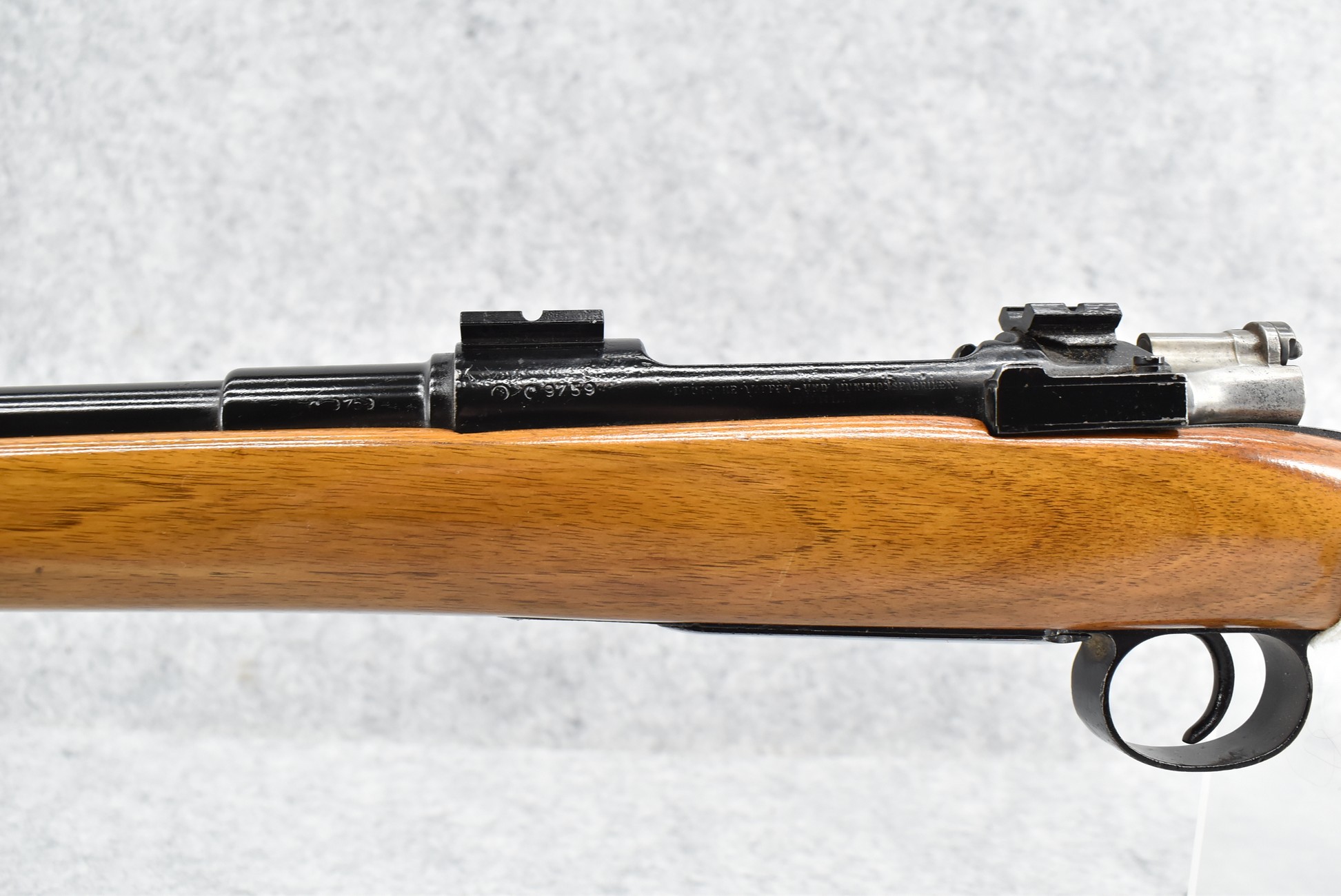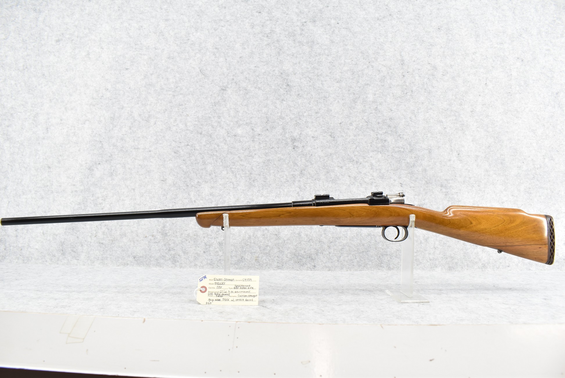 527R. DWM (German) – Mod. Mauer – 7mm Sporterized Bolt Action Rifle – w/27” Barrel – Gloss Black Painted Finish – w/Custom Straight Grip Wood Stock w/Ithaca Recoil Pad – w/2pc. Rail Mount
