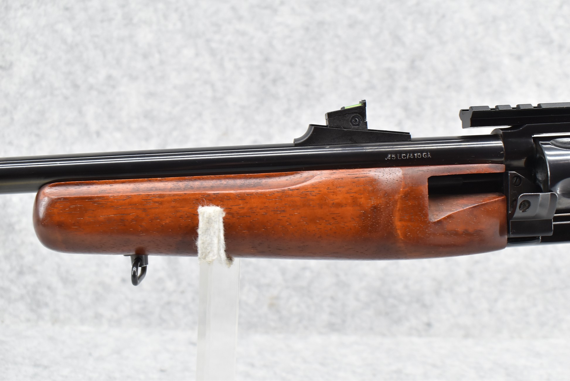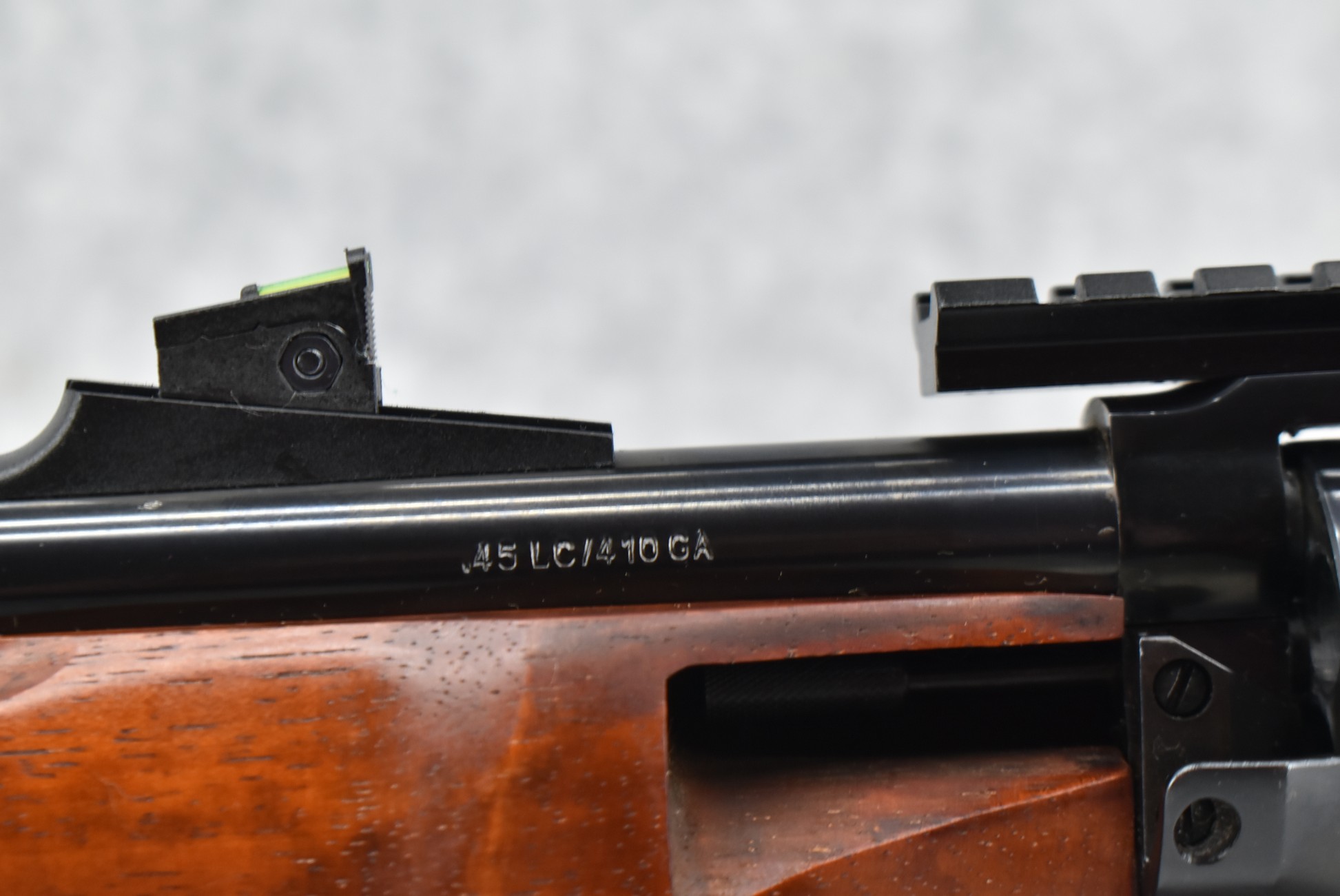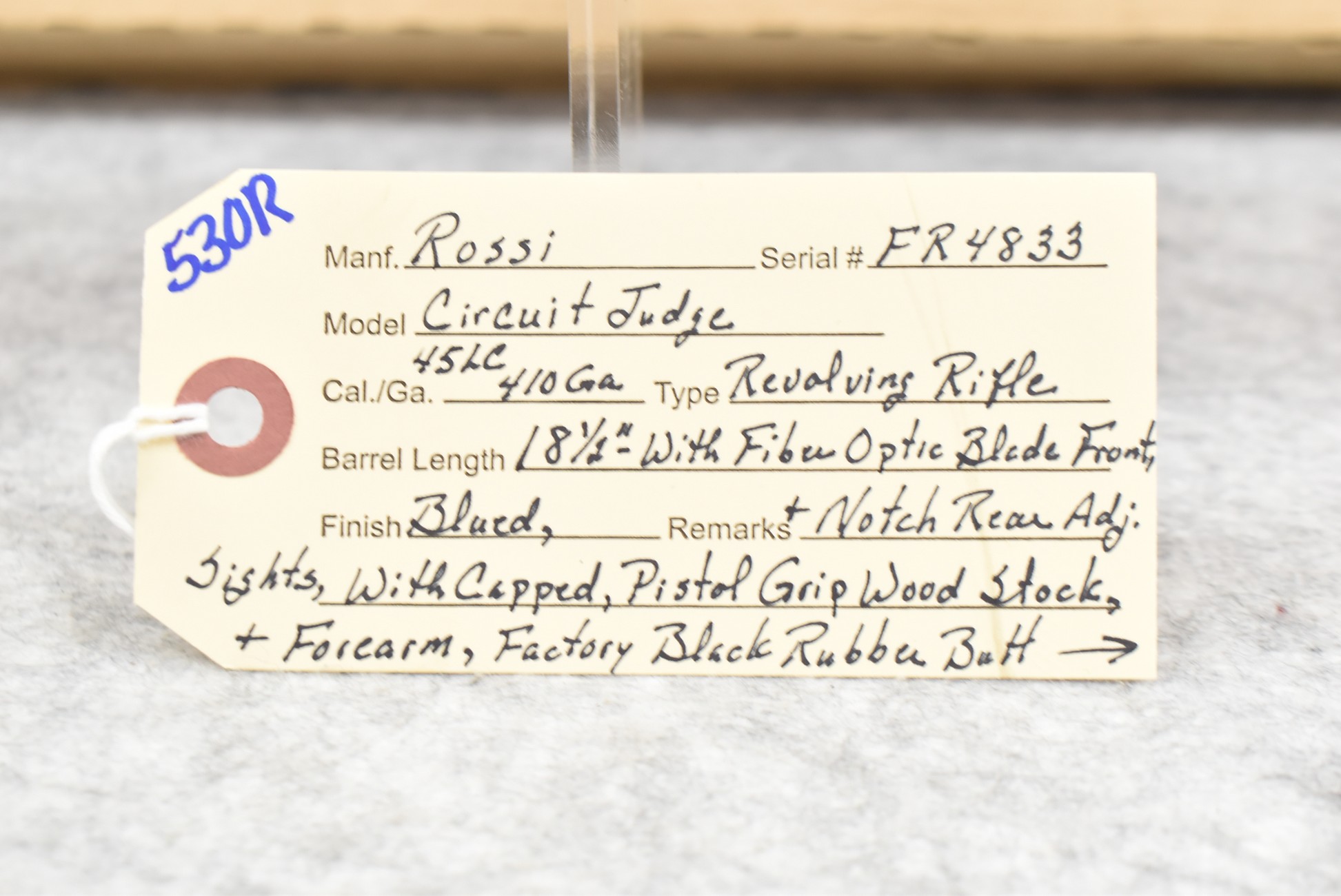 530R. Rossi – Mod. Circuit Judge – 45 LC Cal./410ga. Revolving Rifle – w/18 ½” Barrel w/Fiber Optic Blade Front & Notch Rear Adj. Sights – Blued Finish – w/Capped Pistol Grip Wood Stocks w/Factory Butt Pad – w/Factory Box