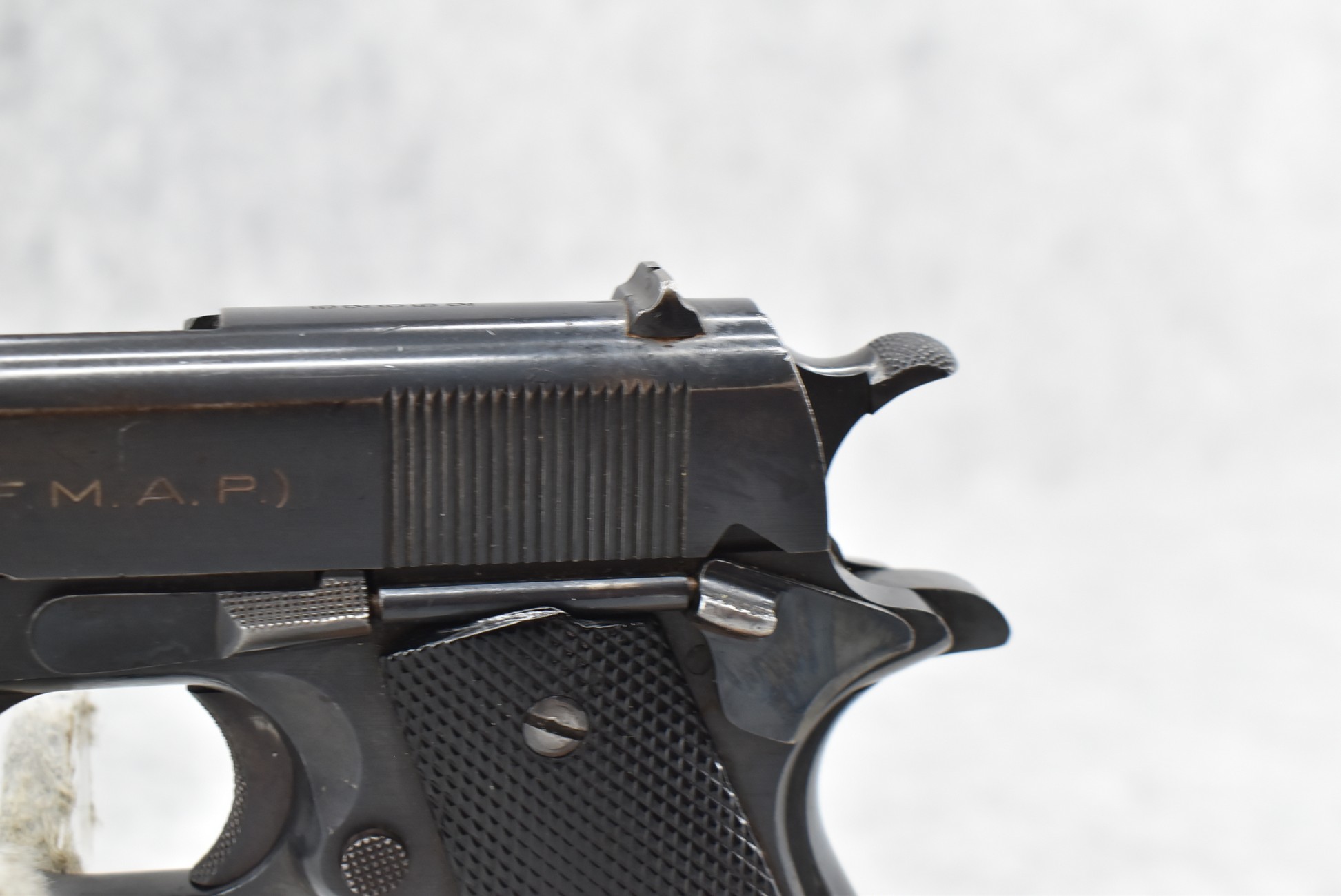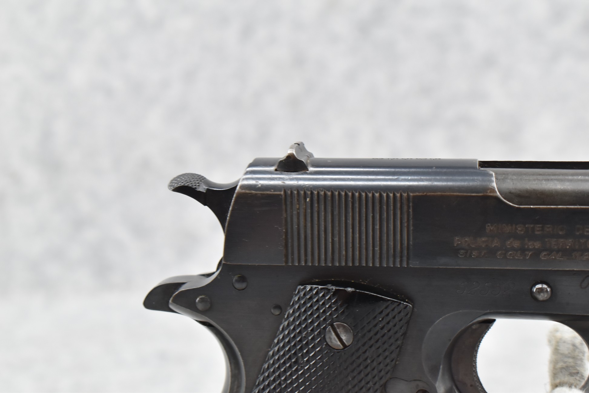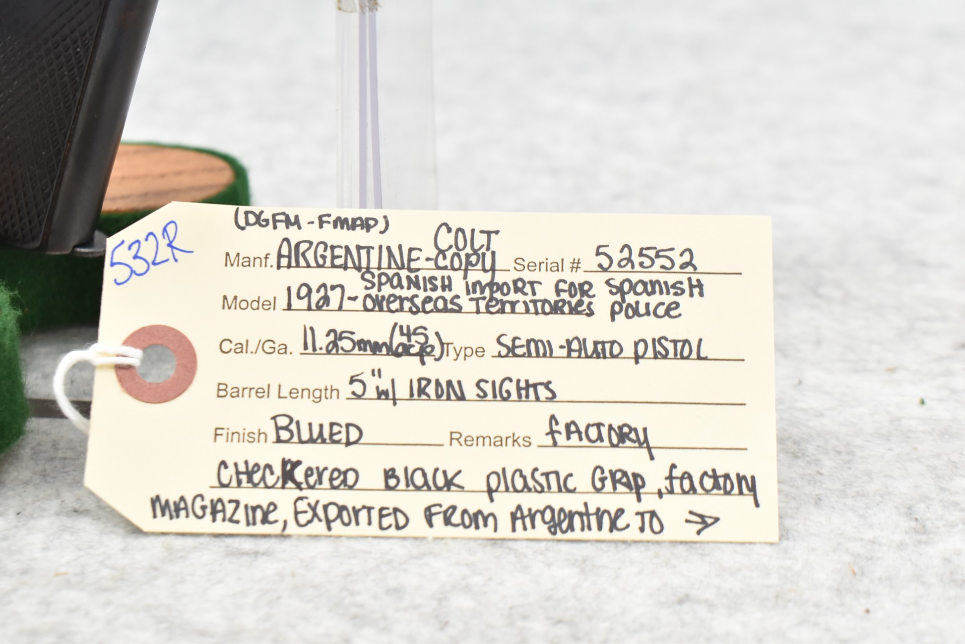532R. Argentine (DGFM-FMAP) – Mod. 1927 (Spanish Import for Spanish Overseas Territories Police) – 11.25 (45 ACP Cal) Semi-Auto Pistol – w/5” Barrel w/Iron Sights – Blued Finish – w/Factory Checkered Black Plastic Grip – w/Factory Magazine – Exported From Argentina to Spain’s Ministry of Interior Police – No Visible Import Mark