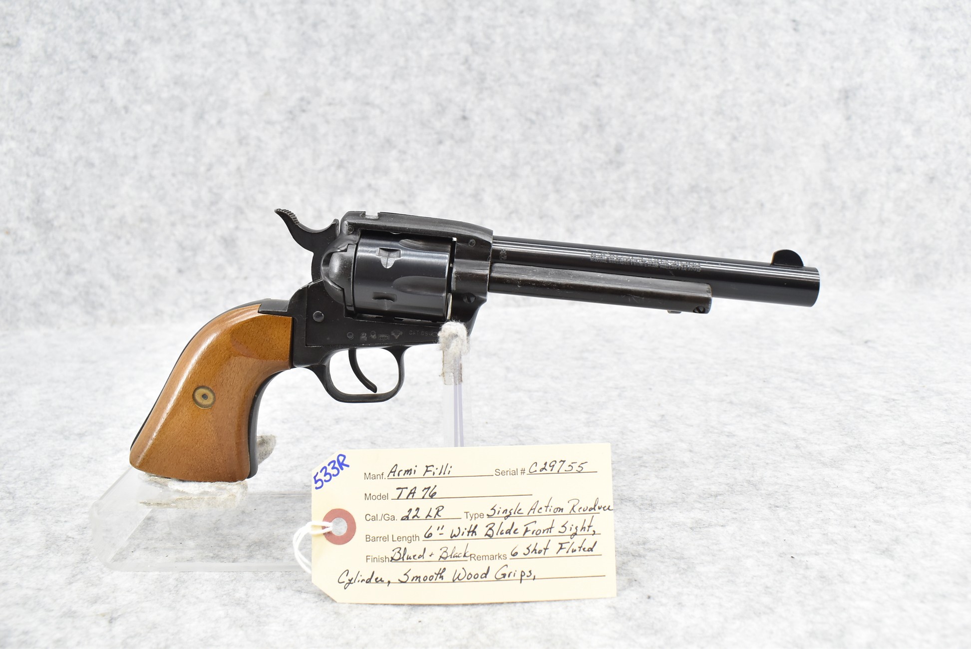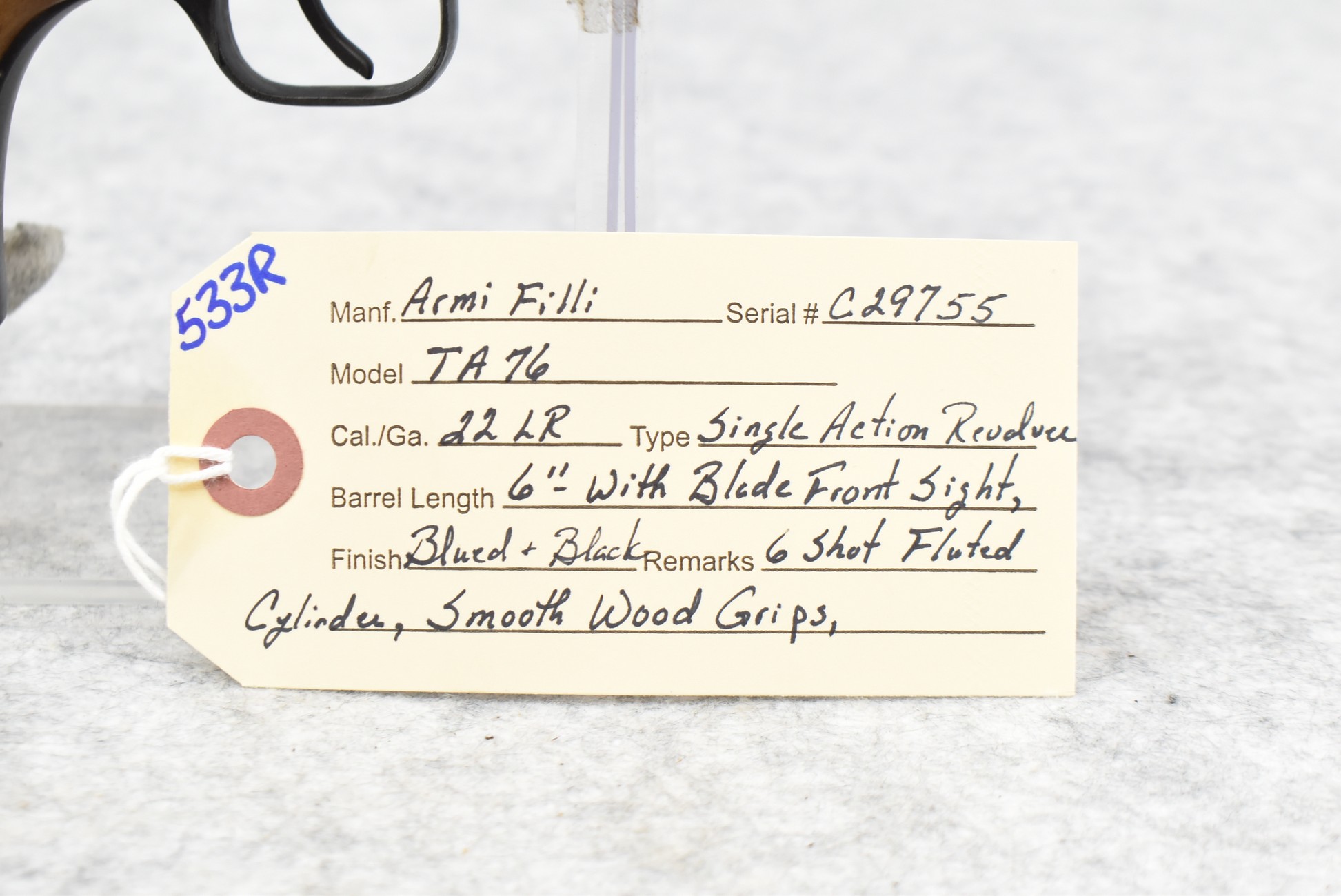 533R. Armi Filli – Mod. TA 76 – 22LR Cal. Single Action Revolver – w/6” Barrel w/Blade Front Sight – Blued Finish – w/6-Shot Fluted Cylinder – w/Smooth Wood Grips
