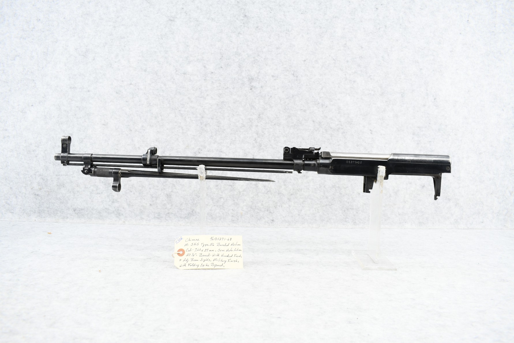 535R. Chinese – Mod. SKS Type 56 Barreled Action – 7.62x39mm Cal. Semi-Auto Action – w/20 ½” Barrel w/Hooded Front & Adj. Rear Sights – Military Finish – w/Folding Spike Bayonet (CANNOT GO TO MARYLAND!)