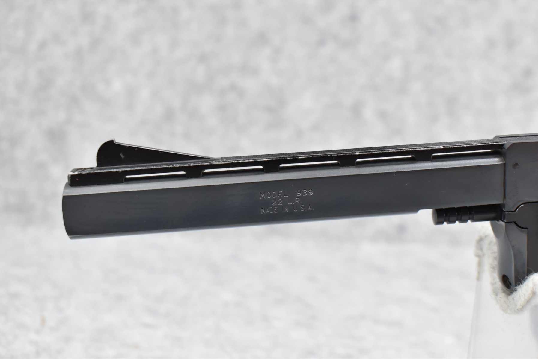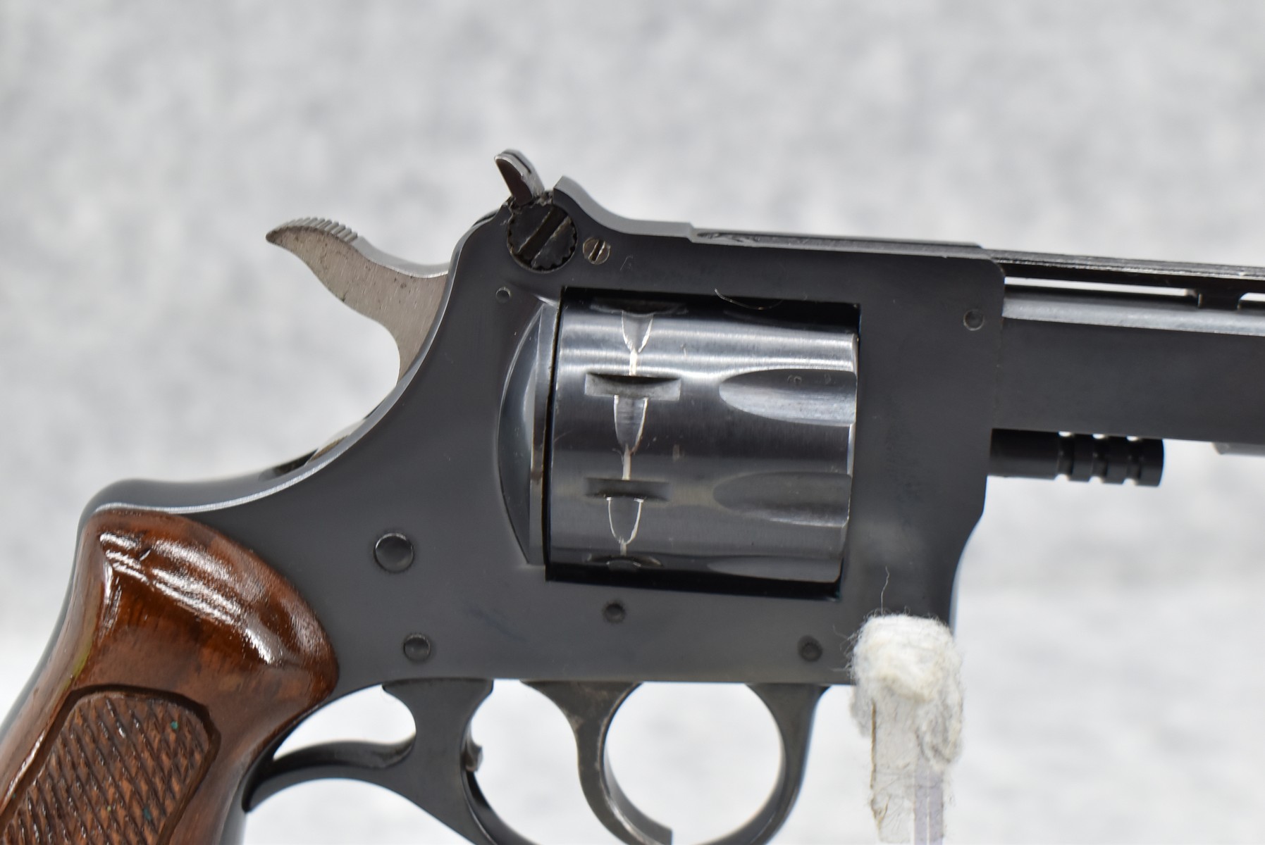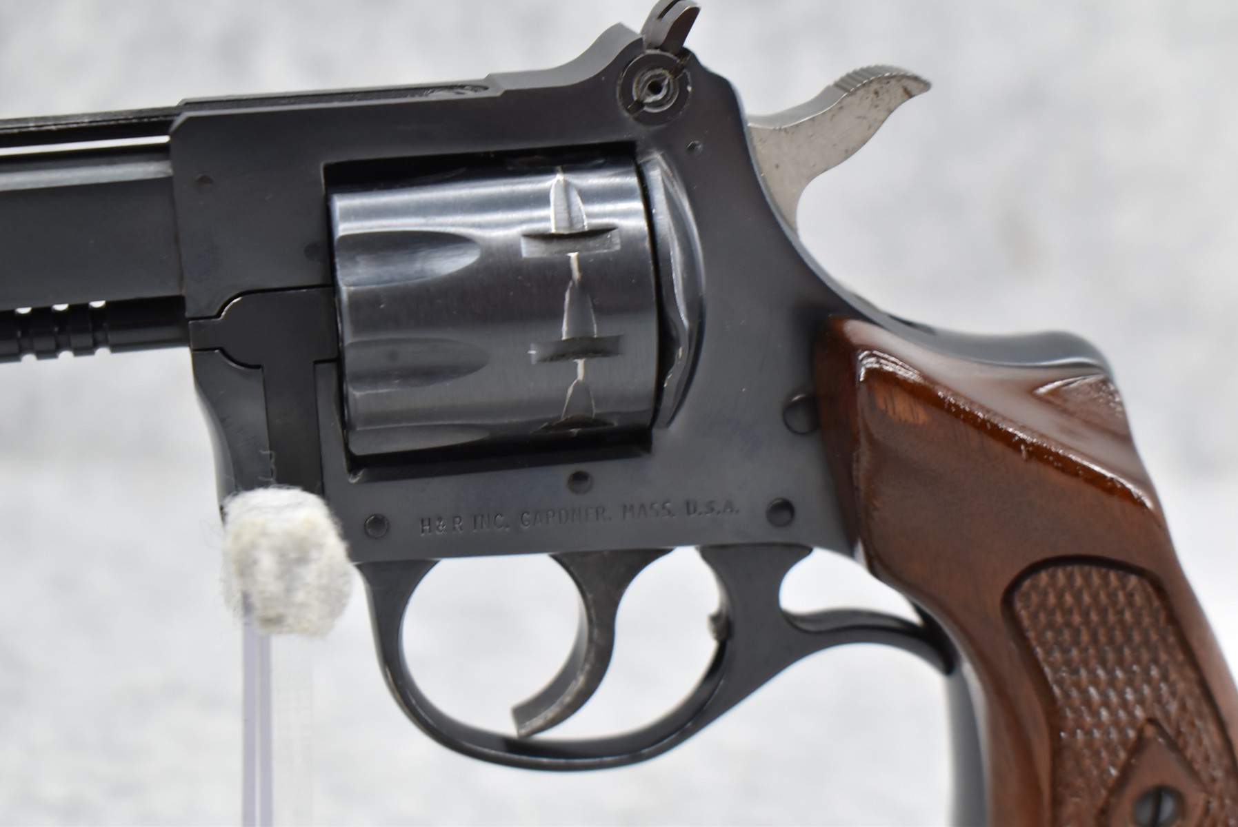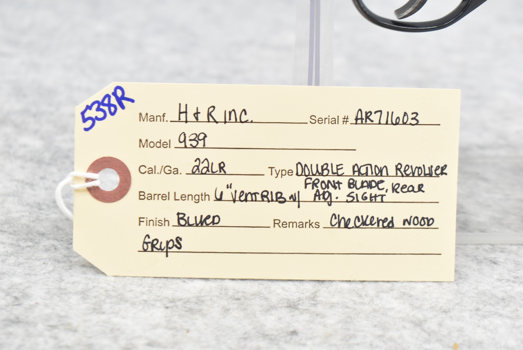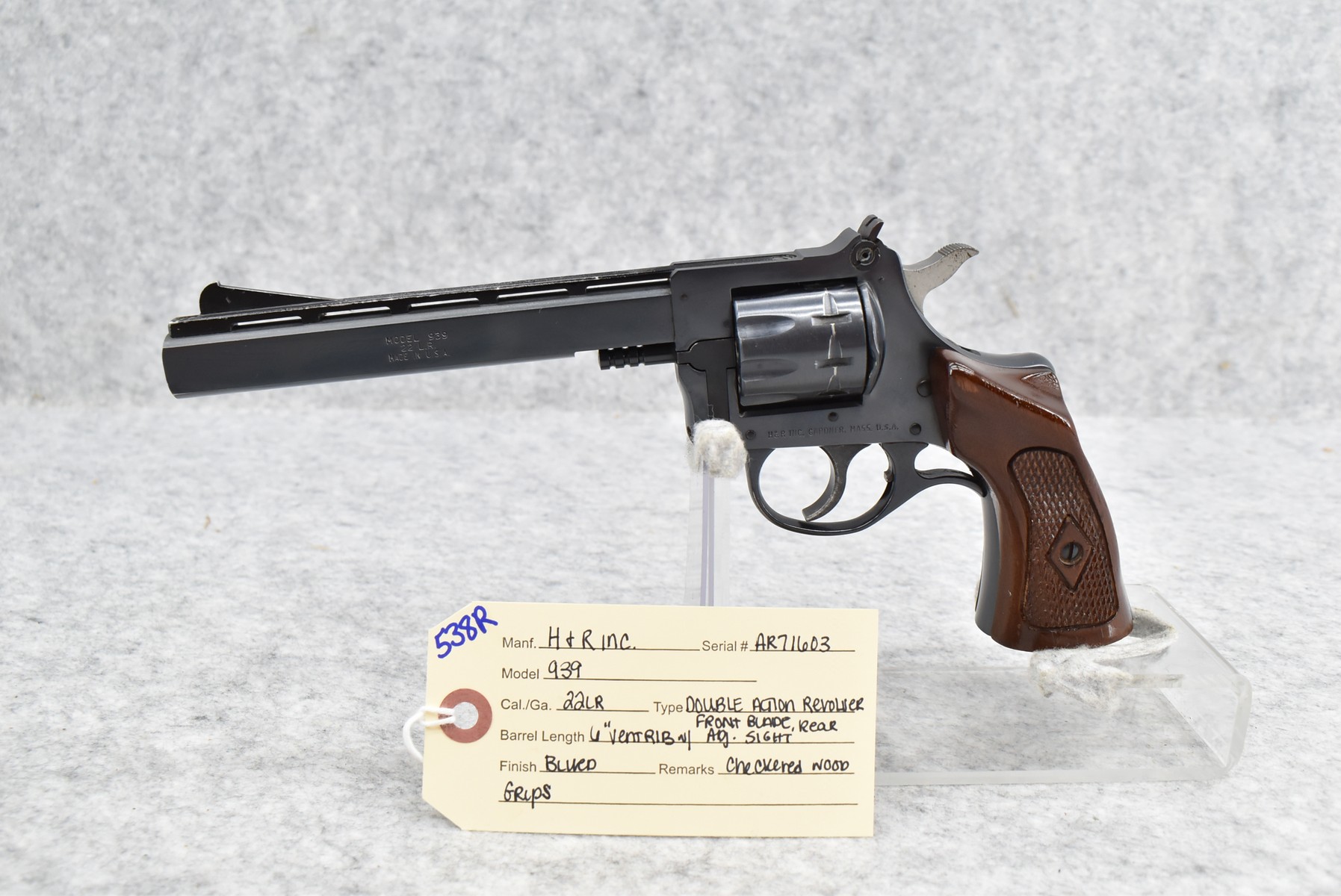 538R. H. & R. Inc. – Mod. 939 – 22LR Cal. Double Action Revolver – w/6” Slab Sided Vent-Rib Barrel w/Front Blade & Rear Adj. Sights – Blued Finish – w/Factory Checkered Wood Grips