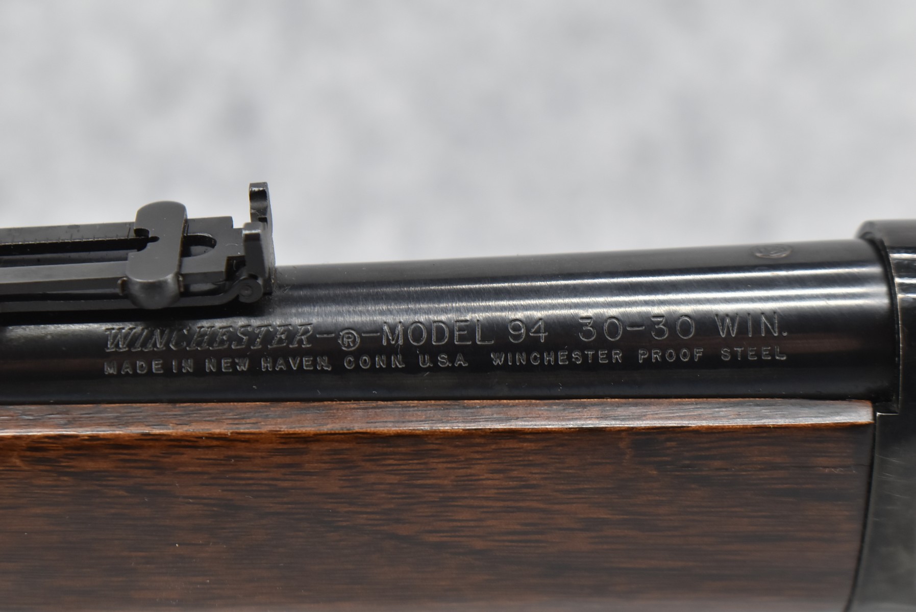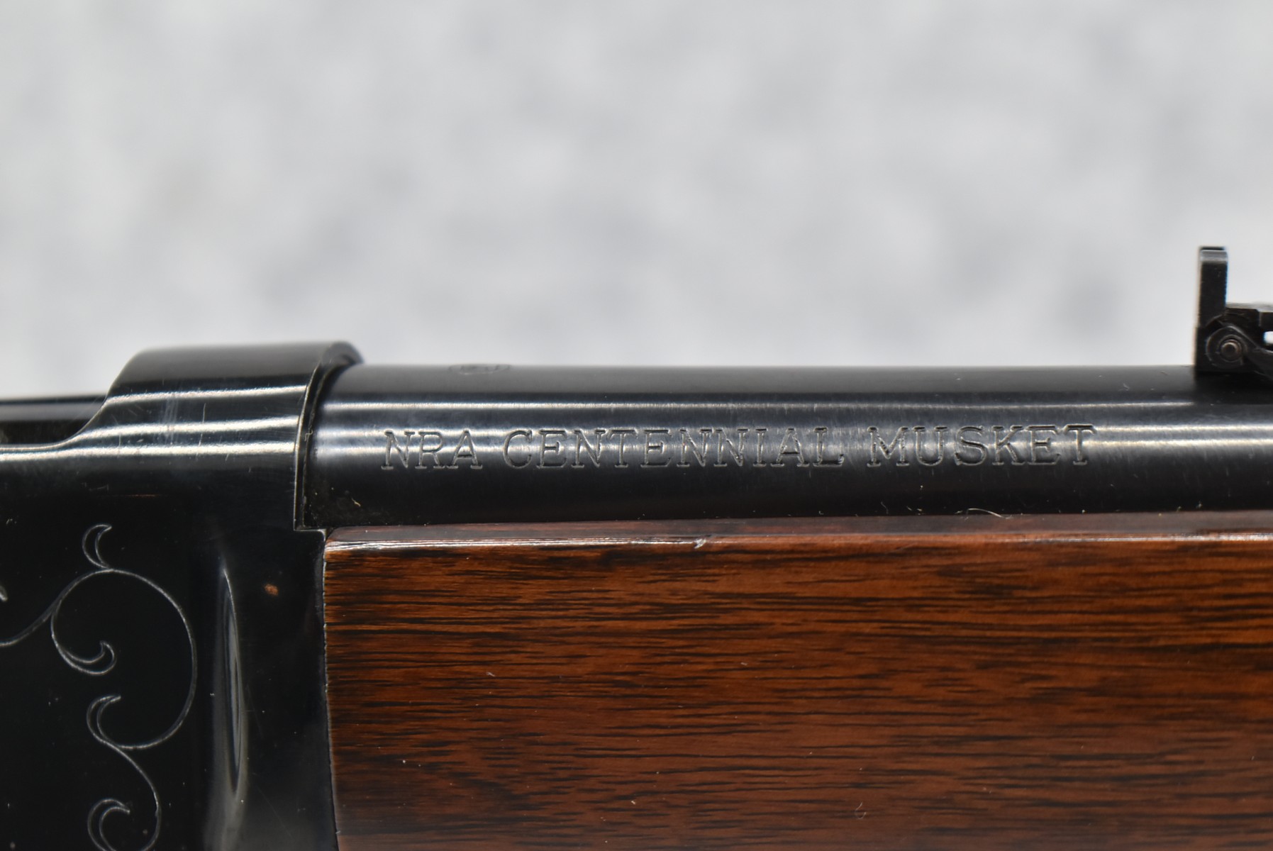 53R. Winchester – Mod. 94 – NRA Centennial Musket – 30-30 Win. Cal. Lever Action Rifle – w/26” Barrel w/Blade Front & Flip Up Adj. Rear Ladder Sights – Blued Finish – w/Straight Grip Full Length Wood Stocks w/Carbine Style Metal Butt Plate – w/Sling Loops