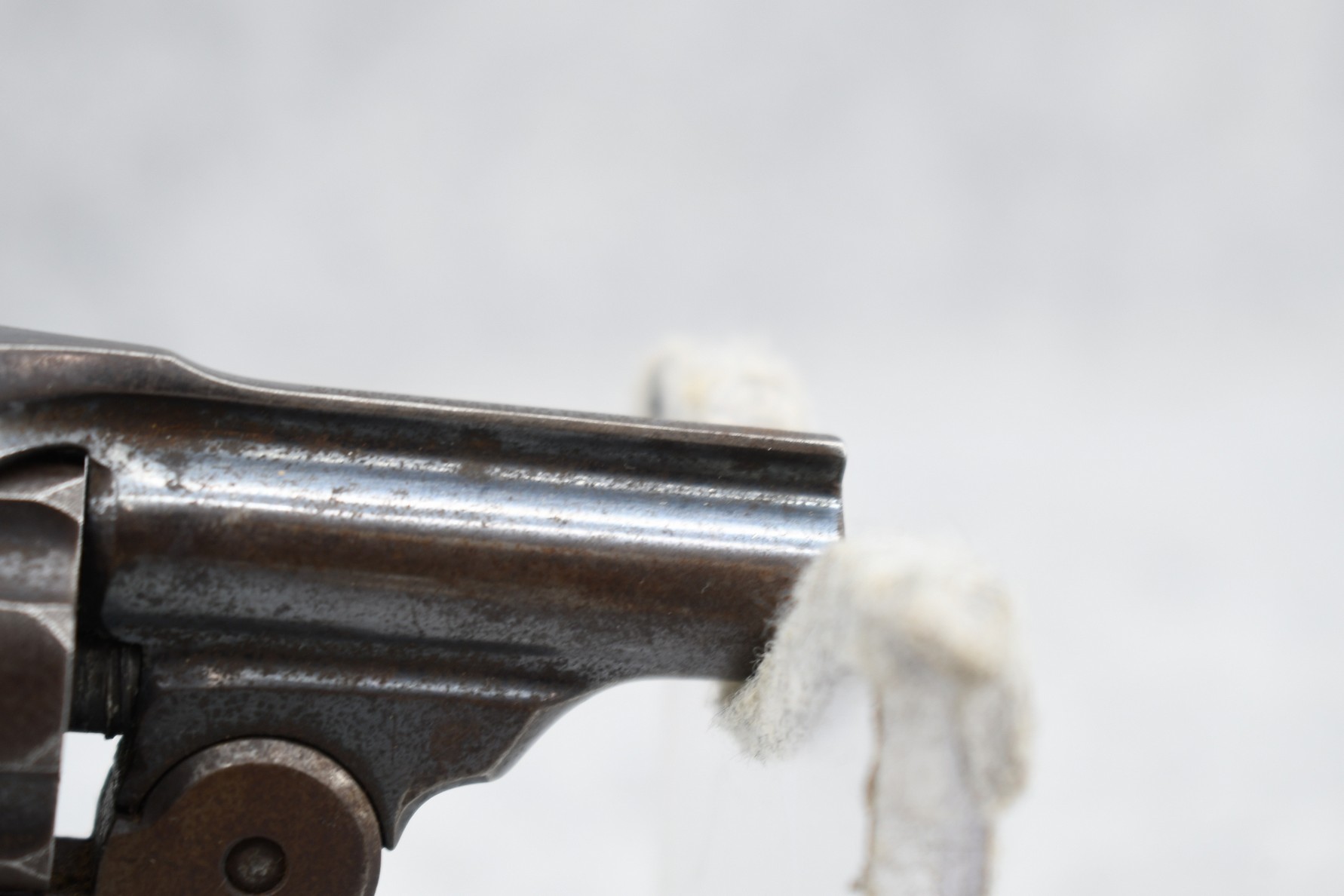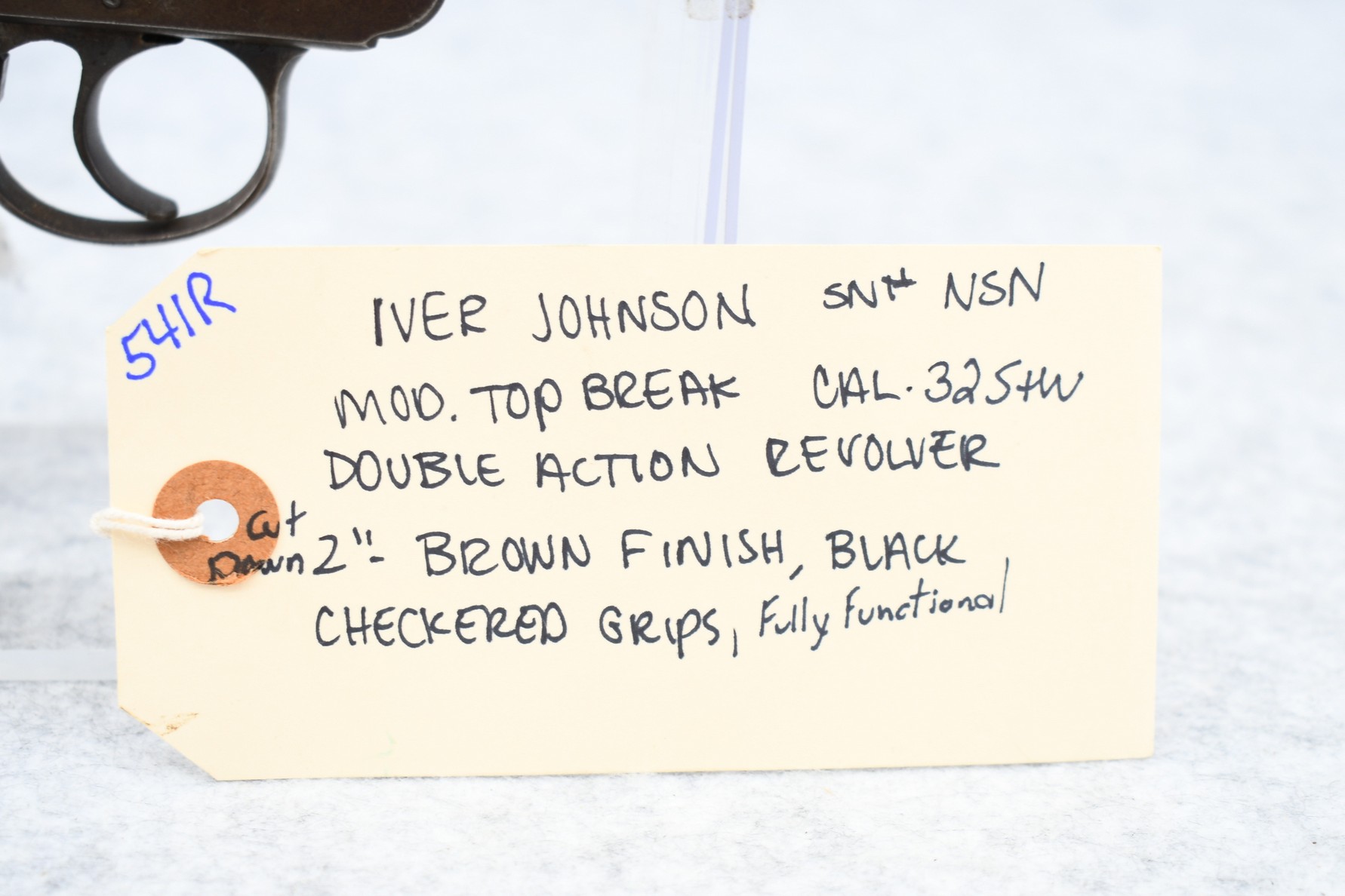 541R. Iver Johnson – Mod. Top Break – 32 S&W Cal. Double Action Revolver – w/Barrel Cut Down to 2” – Brown Finish – w/Black Checkered Grips – Fully Functional