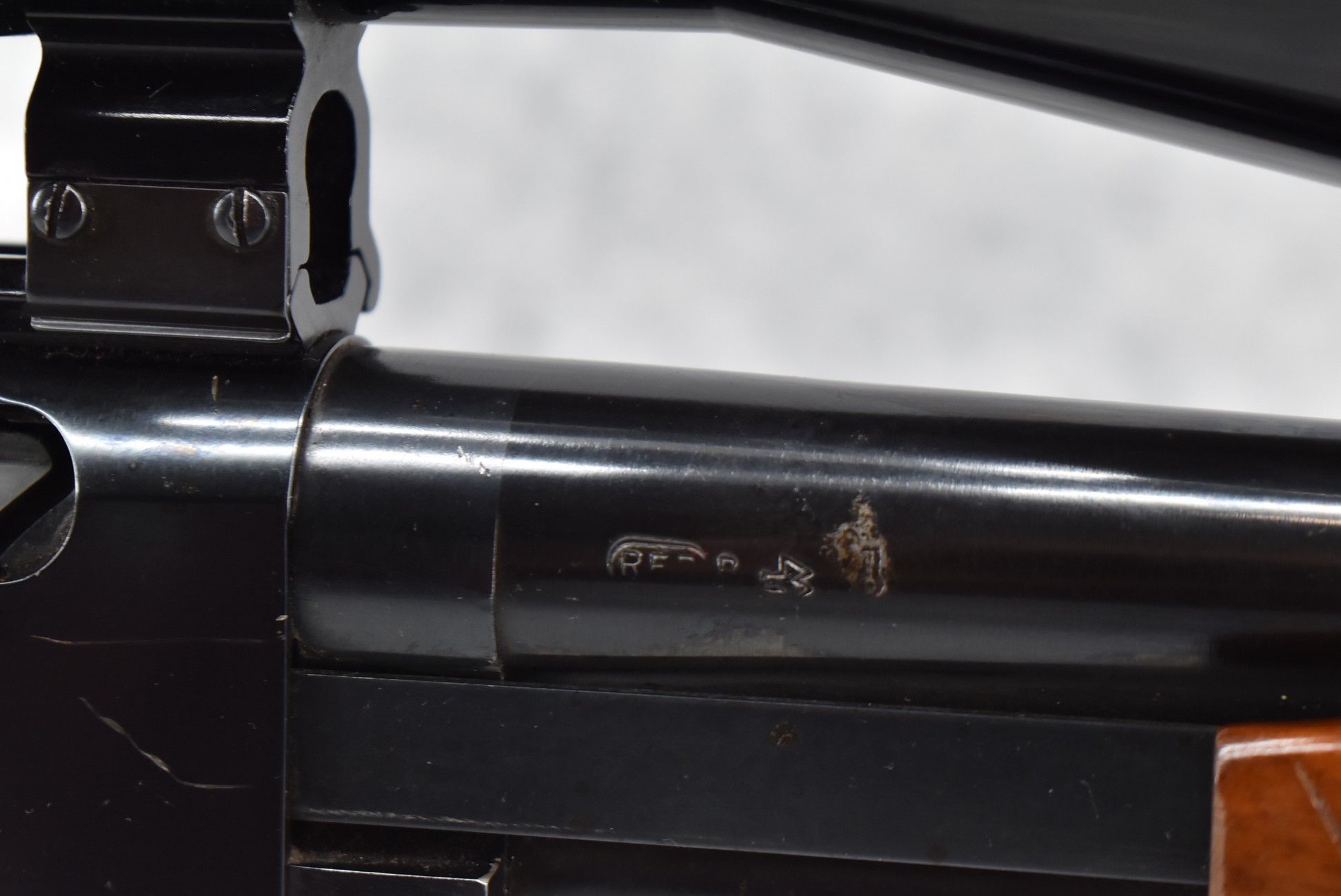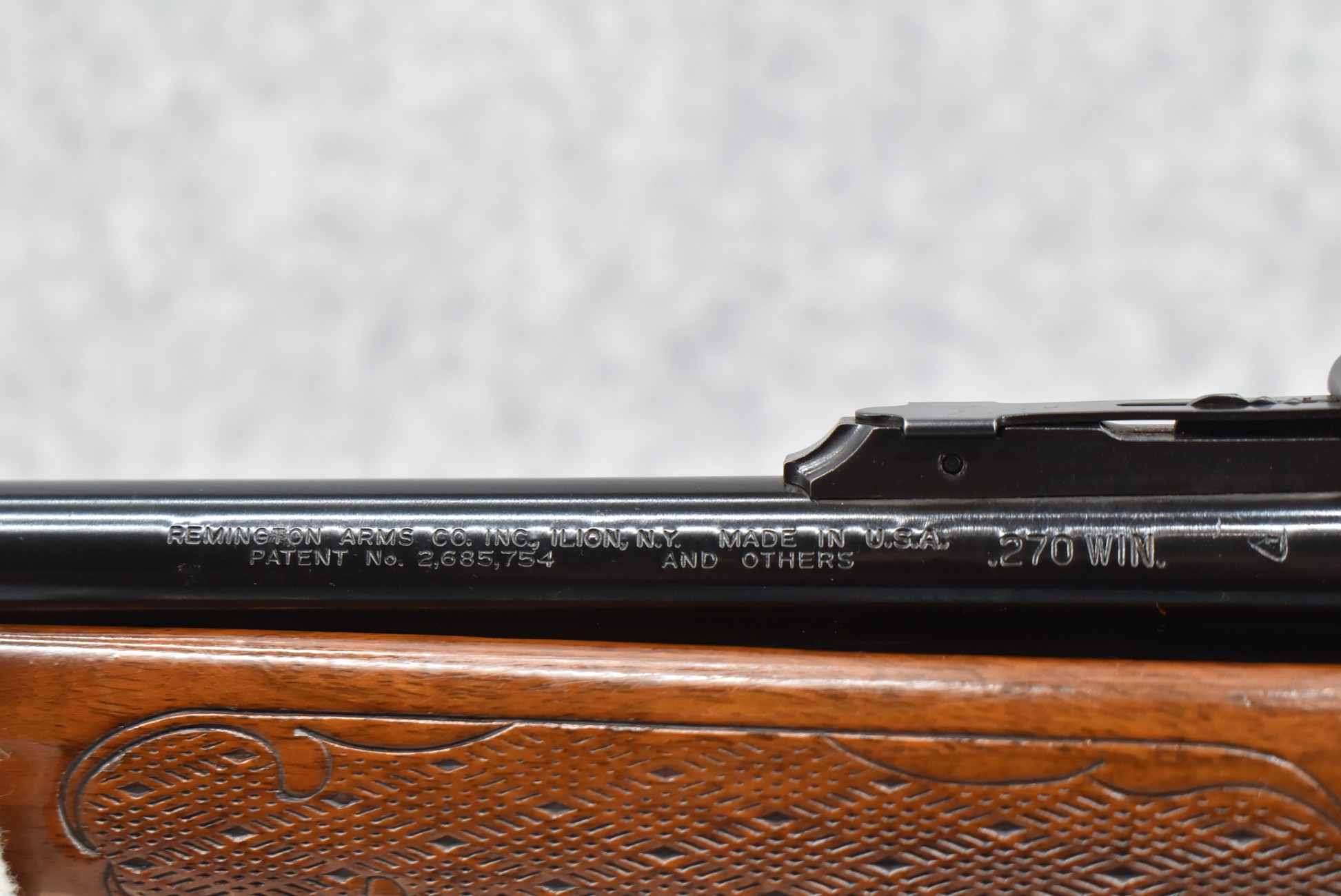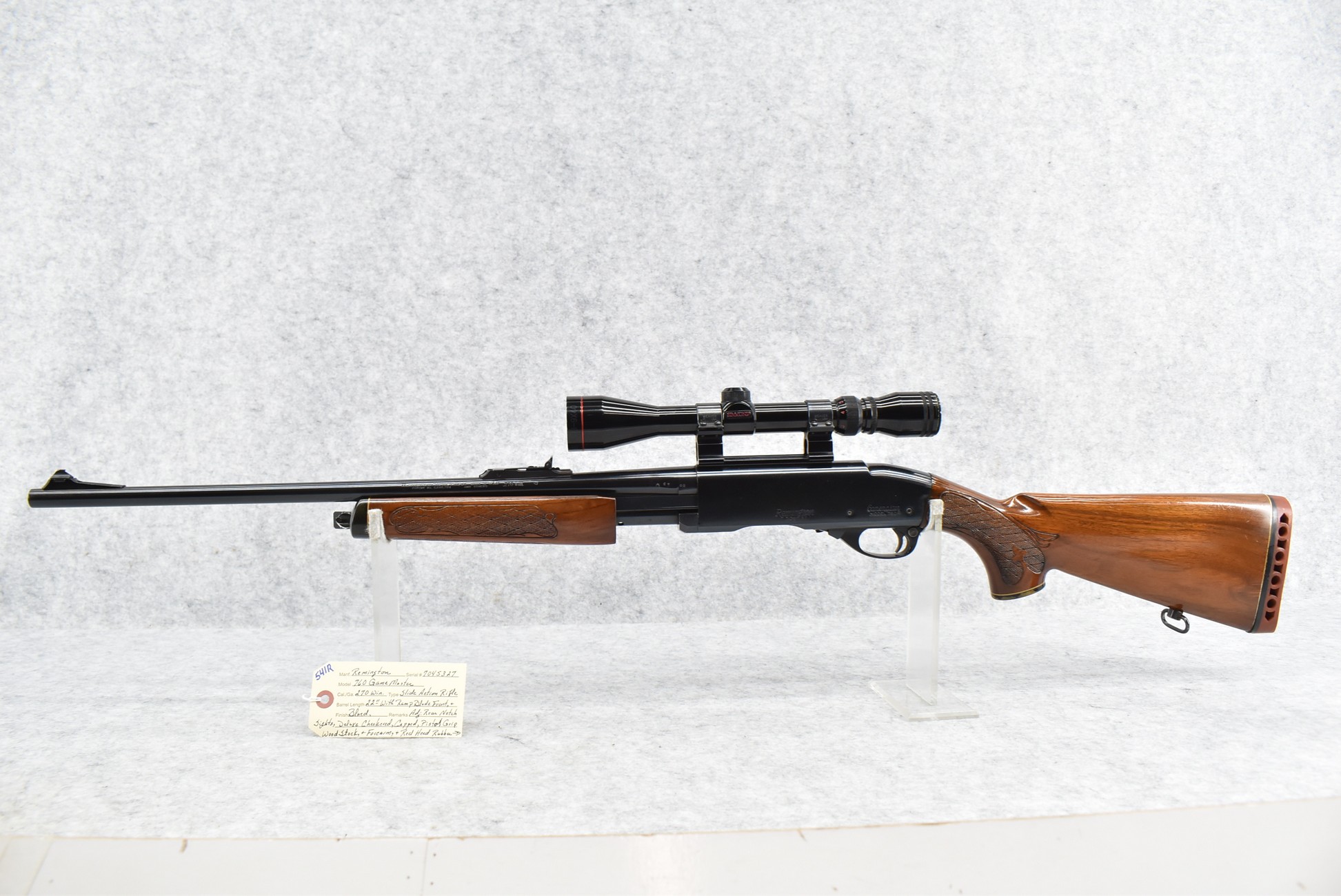 541R. Remington – Mod. 760 Gamemaster – 270 Win. Cal. Pump Action Rifle – w/22” Barrel w/Ramp Blade Front & Adj. Rear Notch Sights – Blued Finish – w/Deluxe Checkered Capped Pistol Grip Wood Stocks w/Red Head Butt Pad – No Mag – w/Simmons 3-9x40mm Scope & See Through Mounts